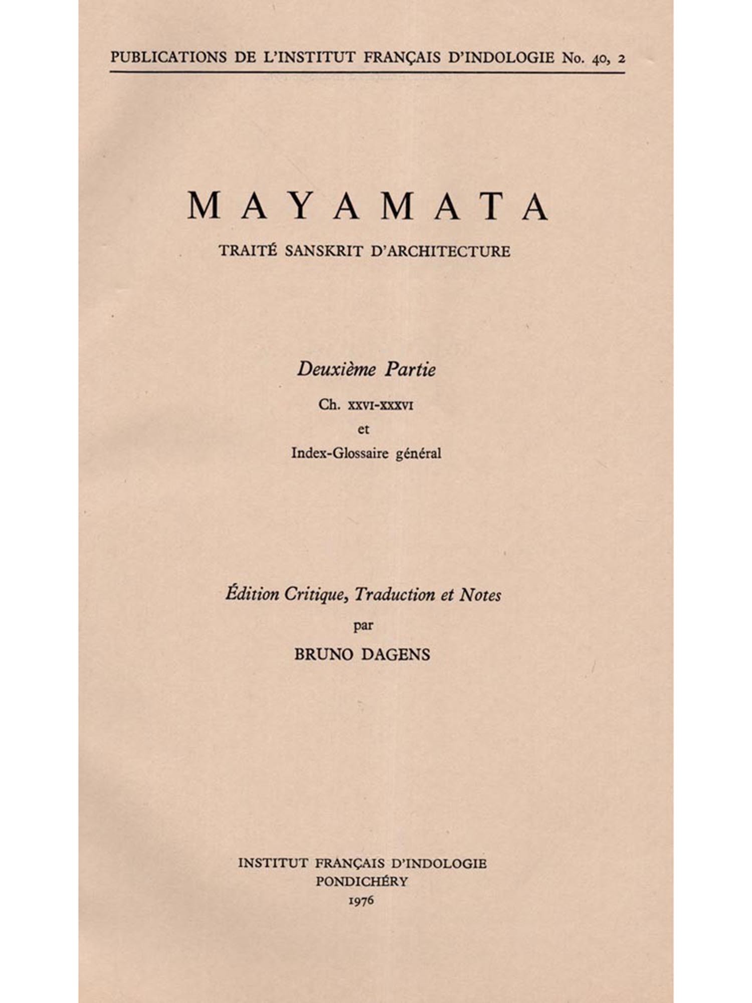 Mayamata- Traite Sanskrit D'Architecture (Deuxieme Partie Ch. XXVI-XXXVI et Index-Glossaire General) An Old and Rare Book