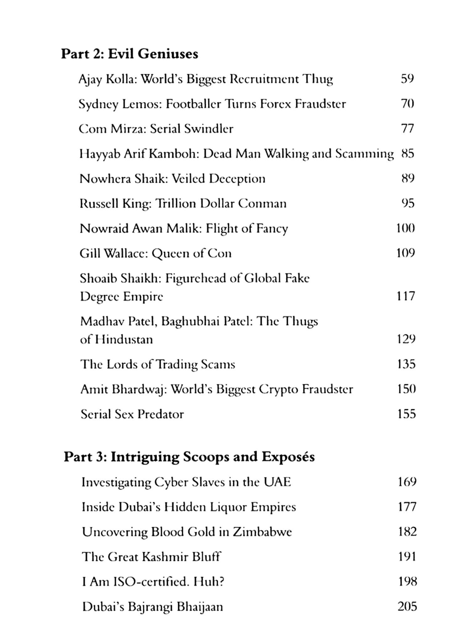In this thrilling memoir, he takes us for a wild ride extending from the Burj Khalifa to the badlands of Zimbabwe: befriending the likes of M.F. Husain, making enemies of the likes of Raja Bhaiya (and Michael Jackson), chasing conmen and being chased by cannibals, reuniting families and exposing scamsters. In a breezy, conversationalist style, he invites readers to share his adventures and feel some of the same thrill and satisfaction that he felt uncovering the stories over three decades, resulting in legal action against more than 250 criminals.