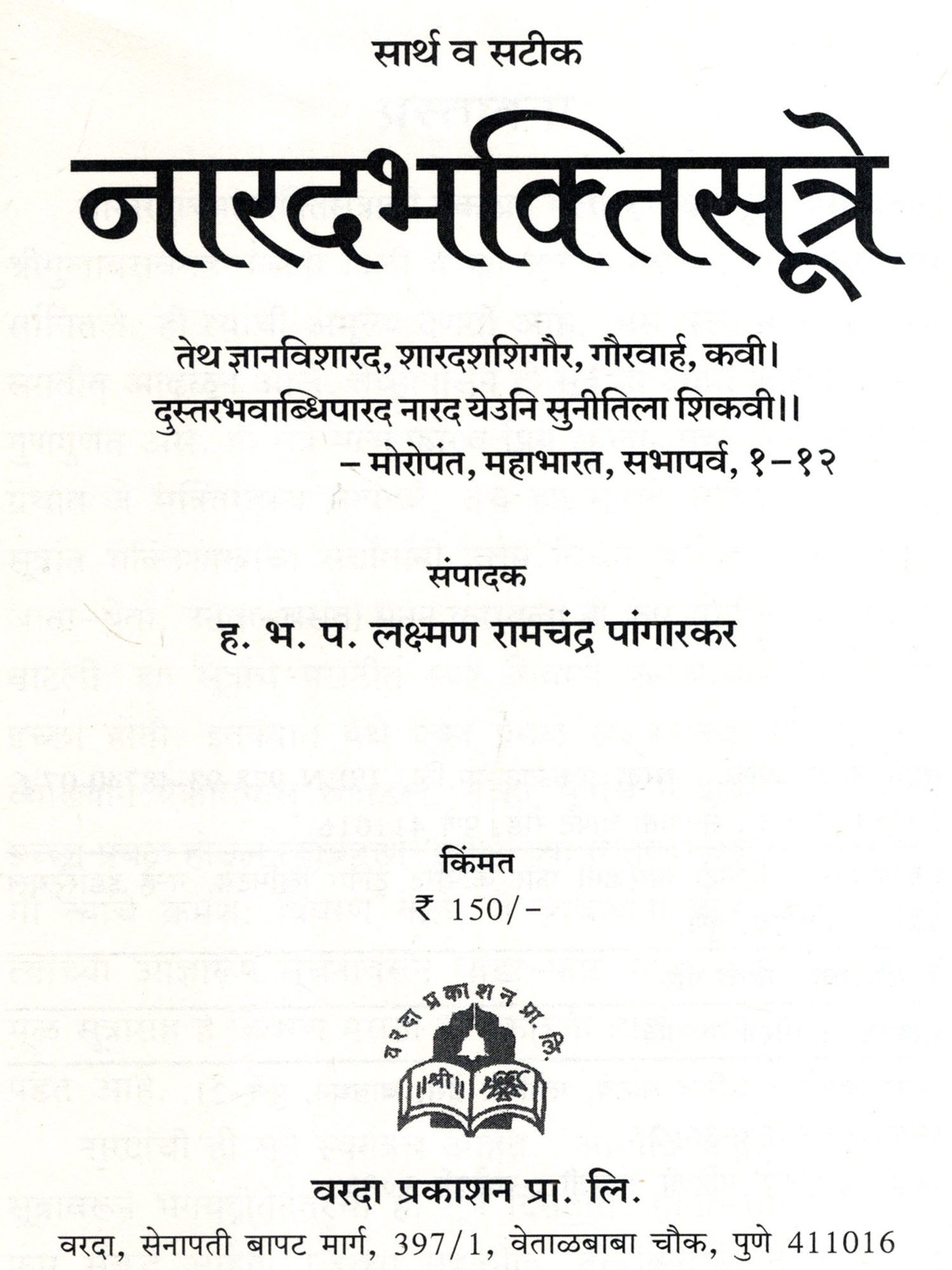 सार्थ नारद भक्तिसूत्रे- Sarth Narad Bhakti Sutra: Marathi (An Old and Rare Book)