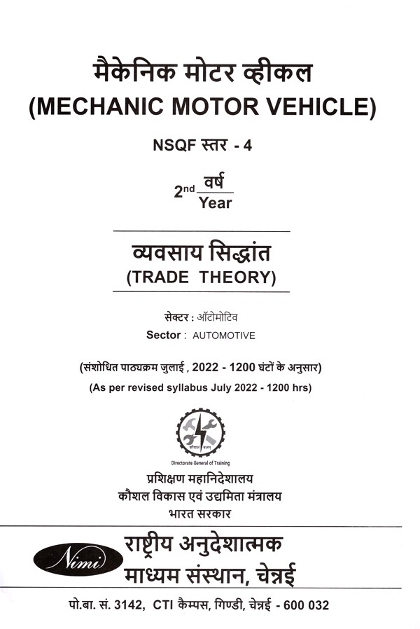 मैकेनिक मोटर व्हीकल: Mechanic Motor Vehicle (Trade Practical, 1st Year, NSQF Level- 4, As Per Revised Syllabus July 2022-1200 hrs)