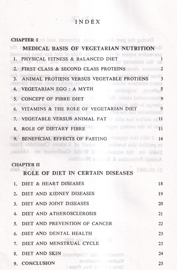 I take this opportunity to thank Shri Nirmal Kishore Jain to publish this booklet on behalf of Kishore Charitable Trust Delhi on the occassion of World Conference on Ahimsa, Animal Protection & Human Nutrition.