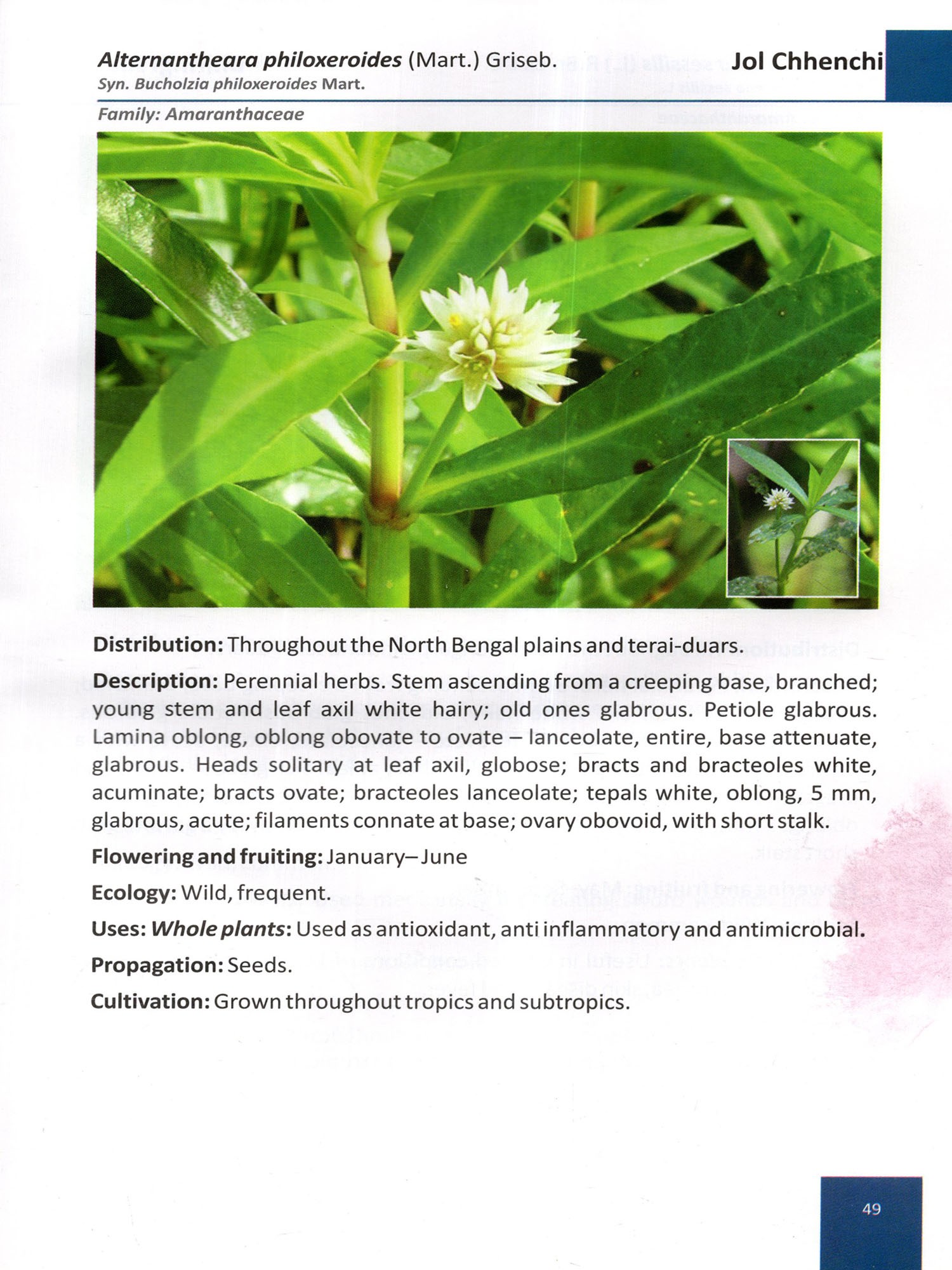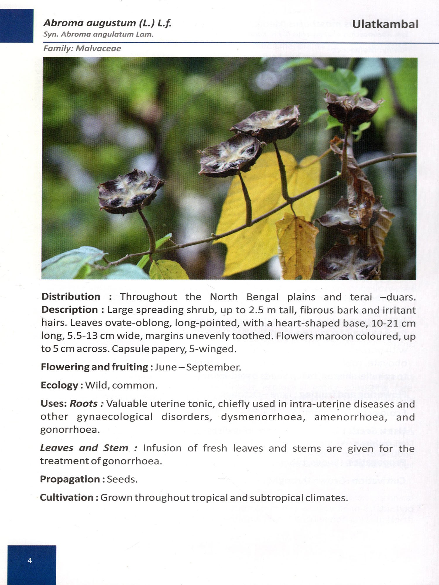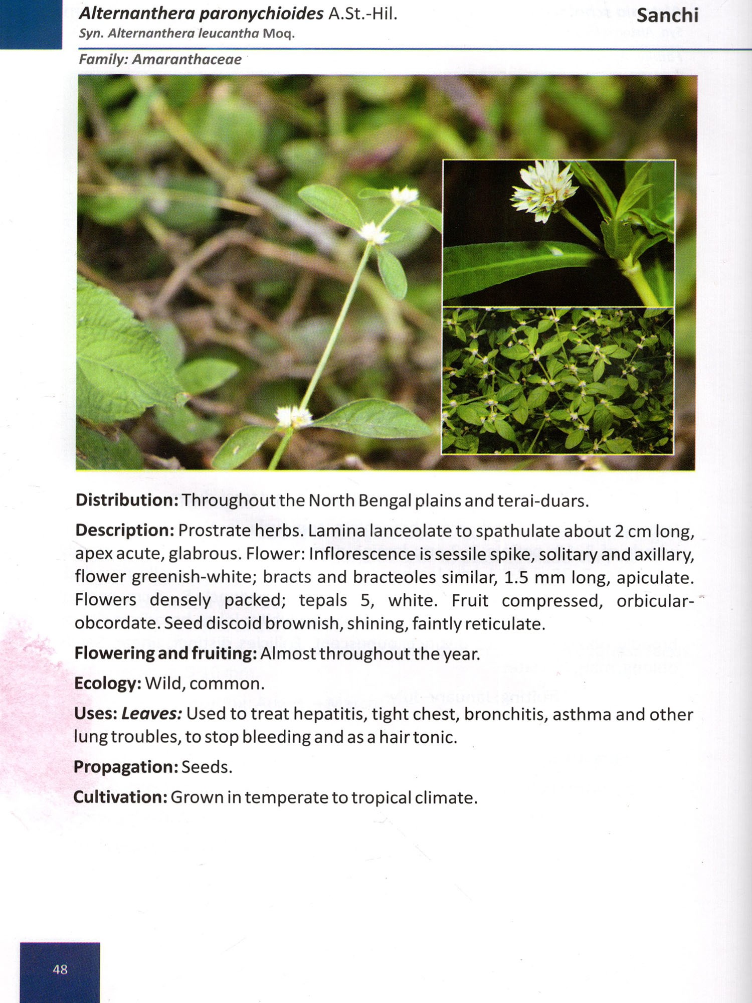However, the present publication is not a final document of medicinal plants resources of North Bengal Plains, scope is there to include more important resources in next volume, as the resource potential is huge in this area and lot of study is yet to be done to explore & document medicinal plant resources of Terai & Duars of North Bengal plains.