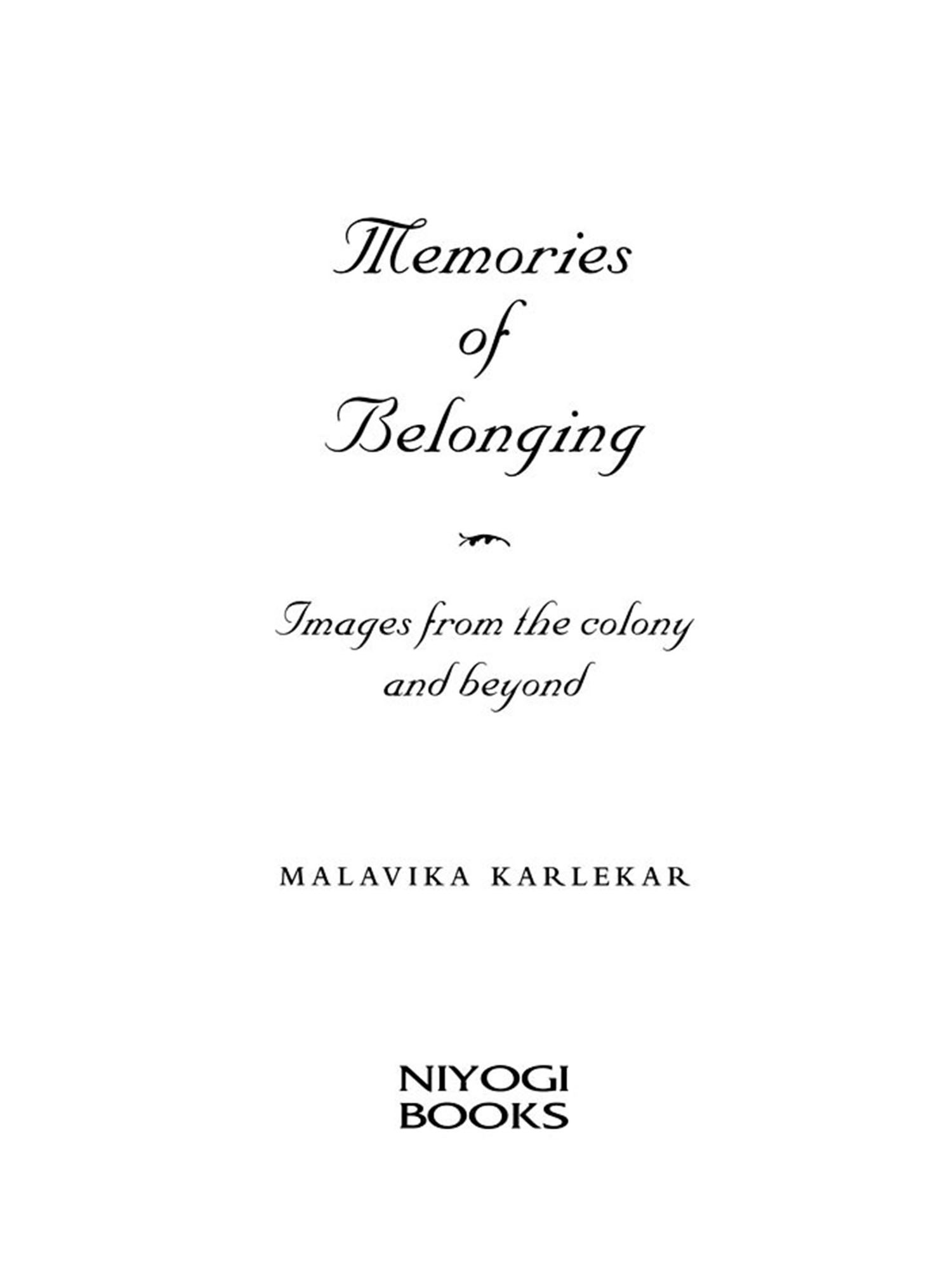 Memories of Belonging can be read as a collection of slightly offbeat musings on certain aspects of over a century and a half of India's history. Whether the photograph, lithograph, painting or cartoon is the focus or illustrates a point or an argument, the visual is integral to each piece.