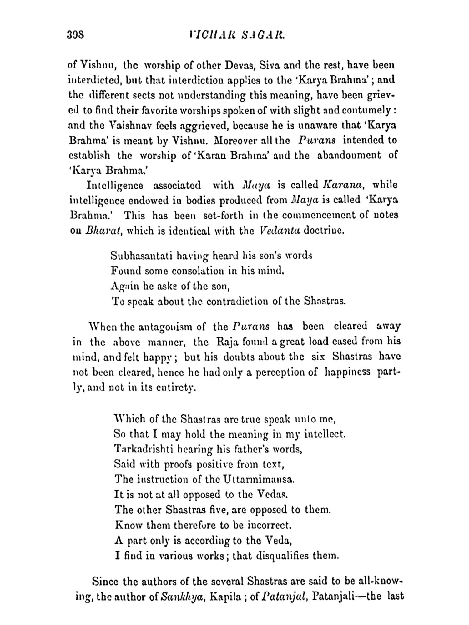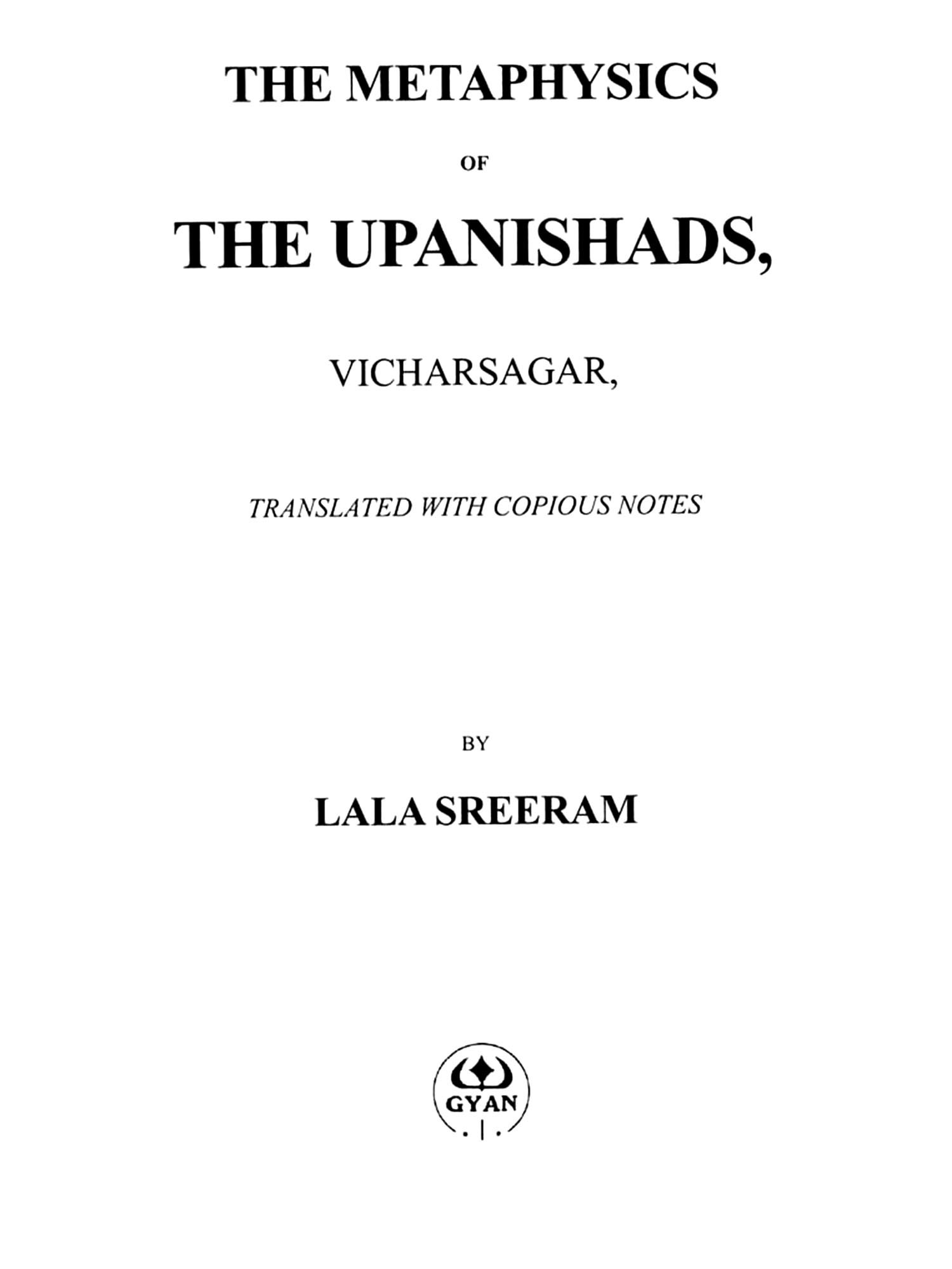 The Metaphysics of the Upanishads, Vicharsagar, Translated with Copious Notes