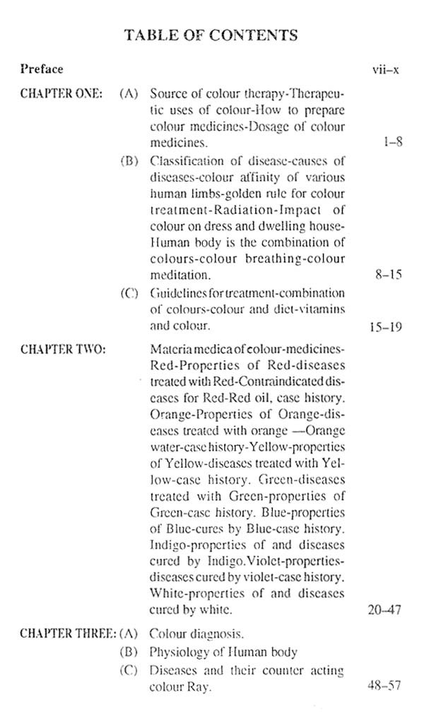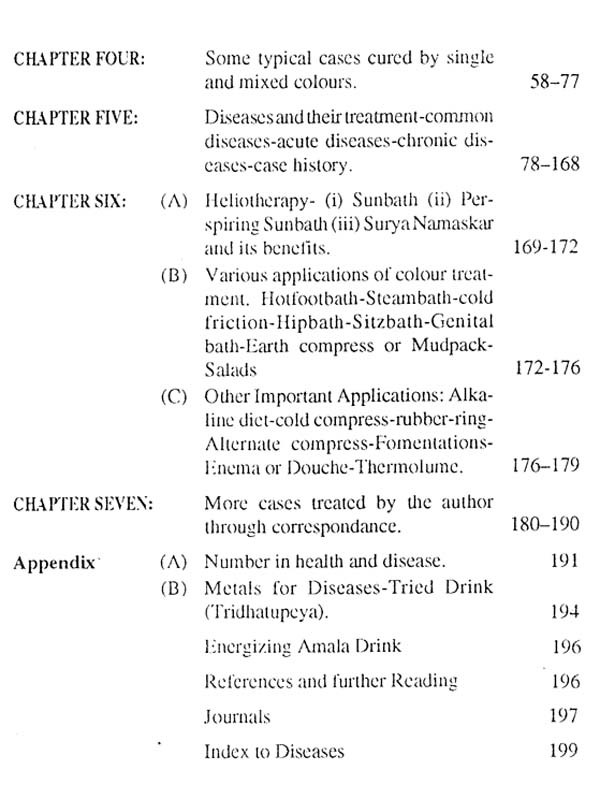 The book has been designed so as to suit an expert and an apprentice as well. It has dealt in the basic but technical ideas by means numerous examples i.c., case- histories. The materiamedica of colours is so simple and lucid that every individual, who has interest in the science, can master it with a little effort and can see its wonderful and spectacular results as he proceeds on and on.