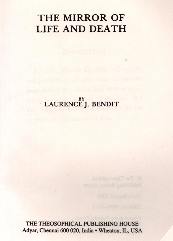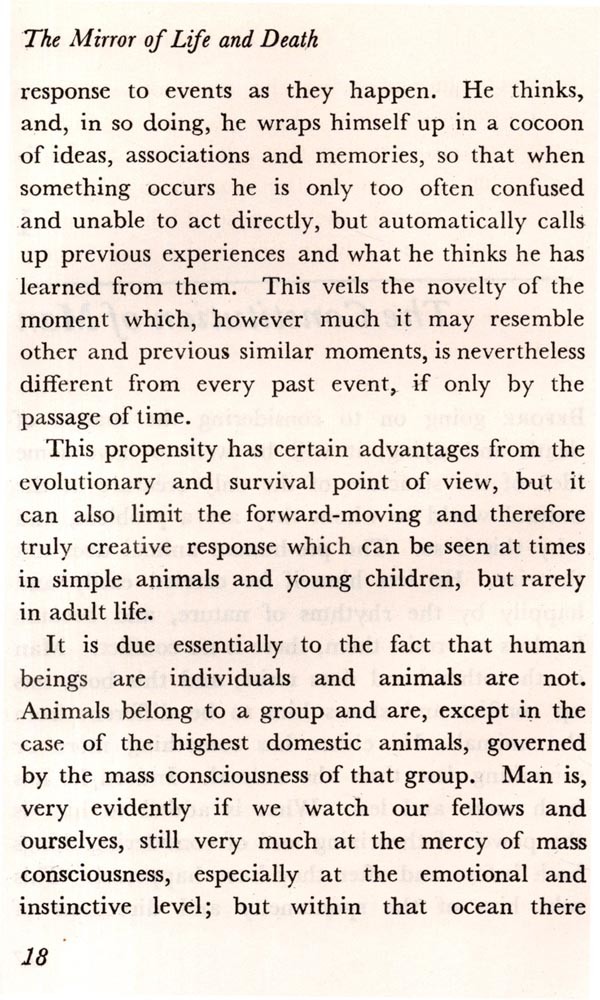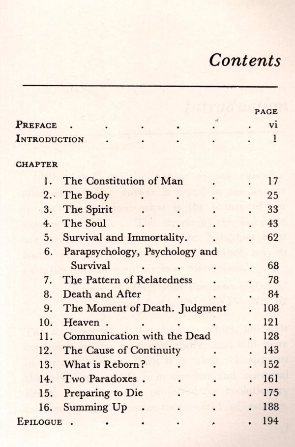 This Book suggests, according to the author, 'that the basis of life is in timeless and universal Being, which becomes projected for evolutionary purposes into the space-time world of existence. Existence can only be significant when seen against its root in pure Being. Birth, growth, decay. death and, if tradition be true, rebirth, are part of a single process. They are, moreover, not separate parts, but each one co-exists all the time with the others, even when one aspect predominates.