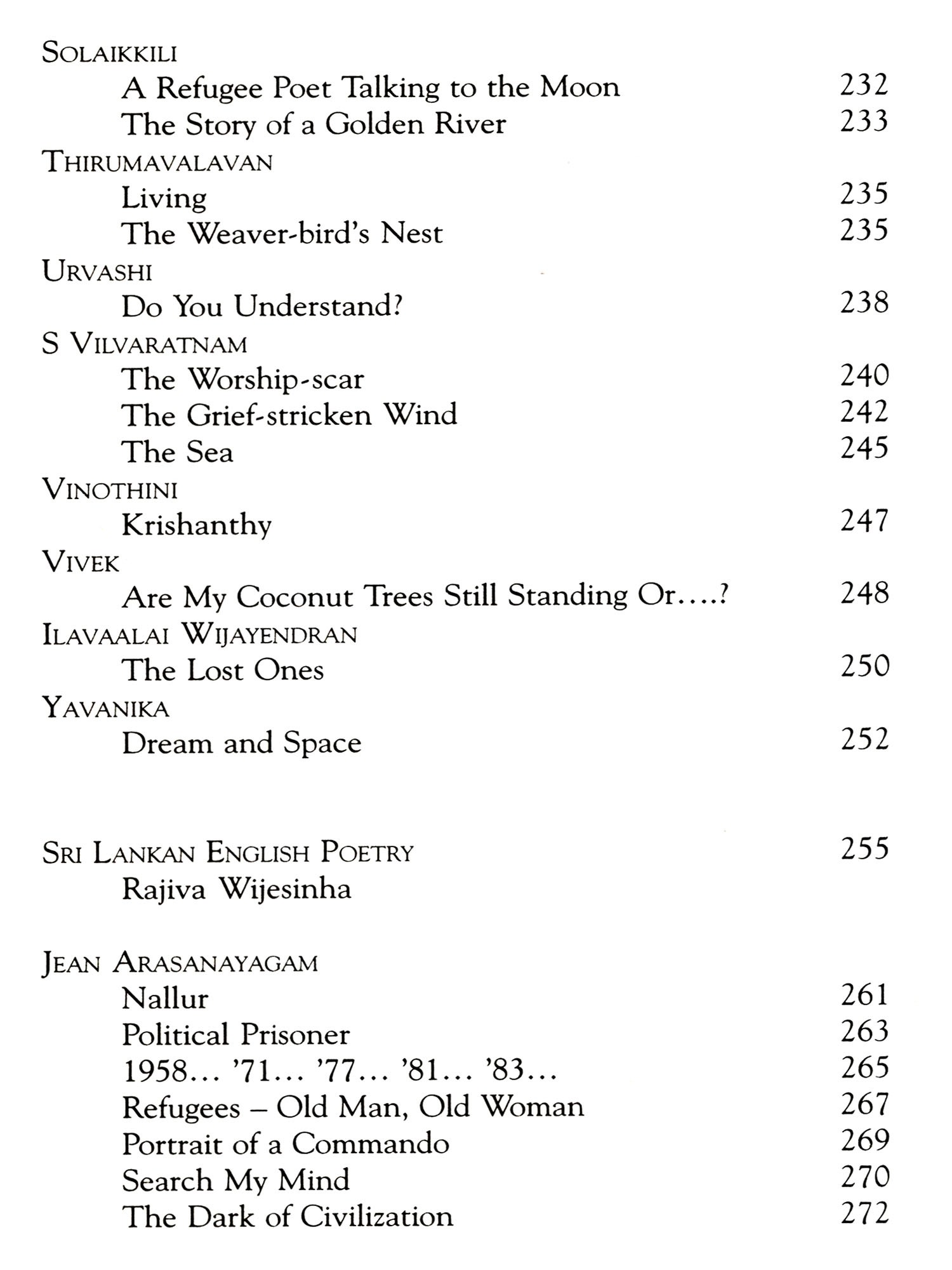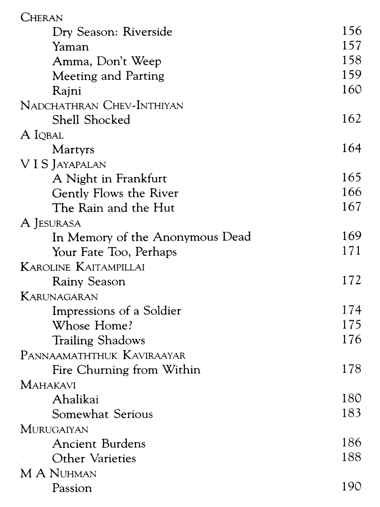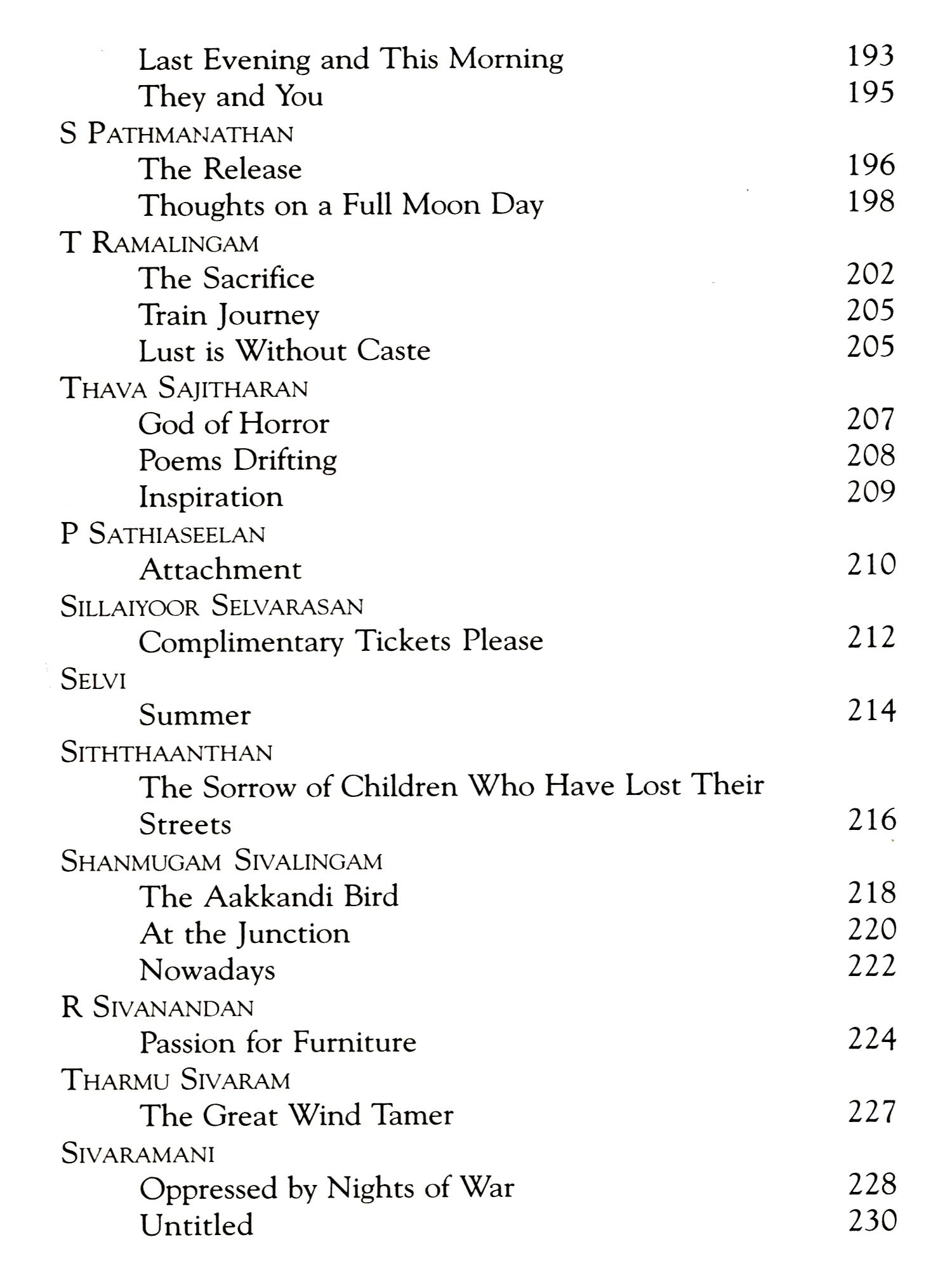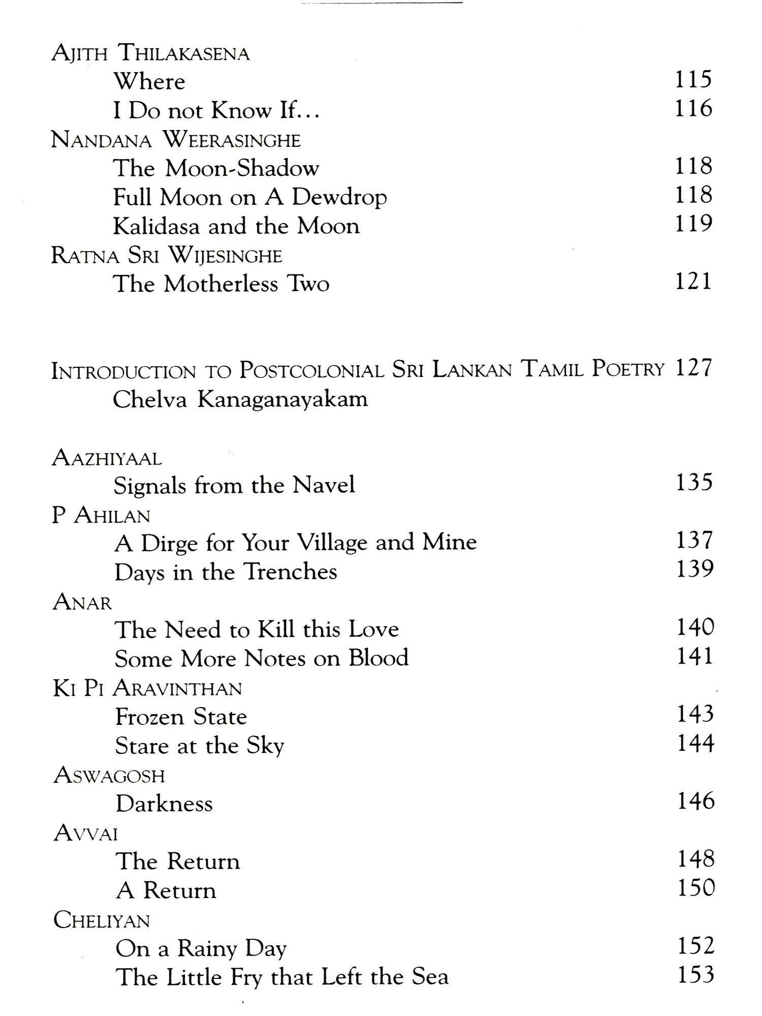 I must also thank his friend, S Rajasingam, who provided me with his copy of the Penguin collection of Tamil poetry in translation, which was an invaluable guide, and waited patiently until I returned it after almost a year. I must also thank the poets and translators who so readily granted permission for their work to be used.