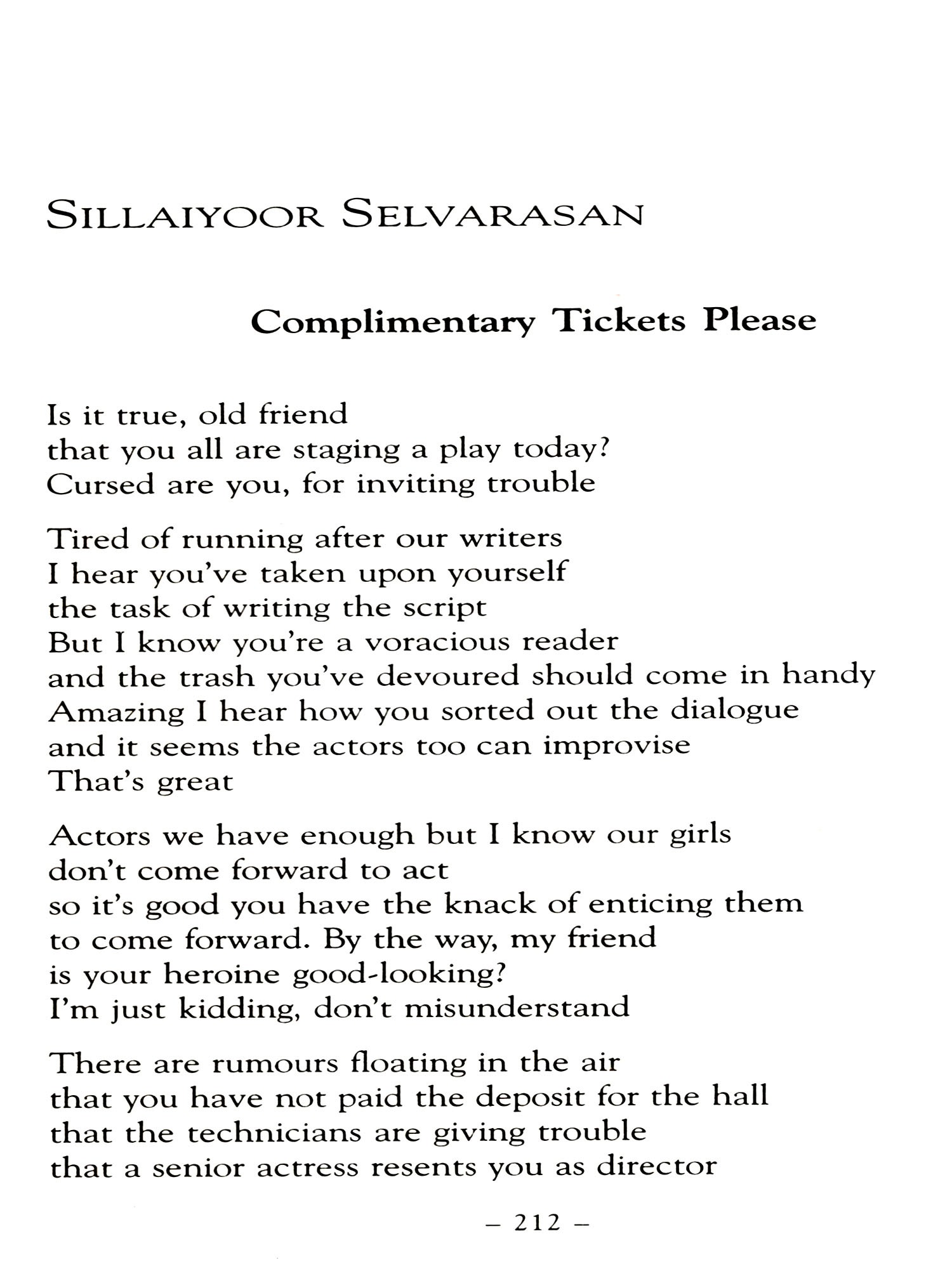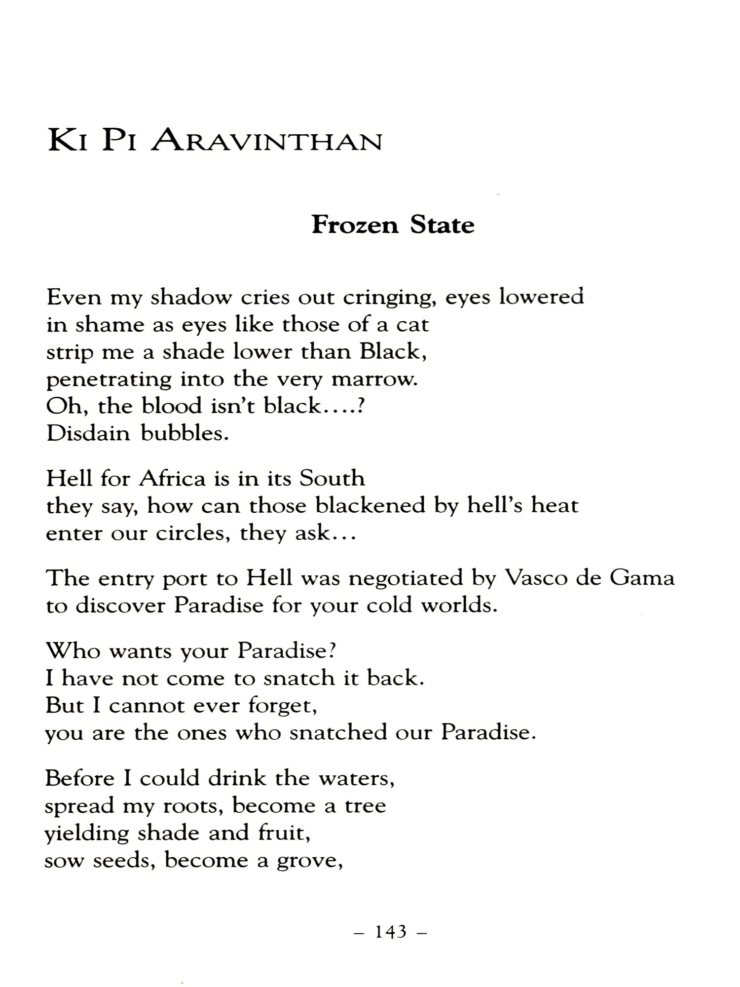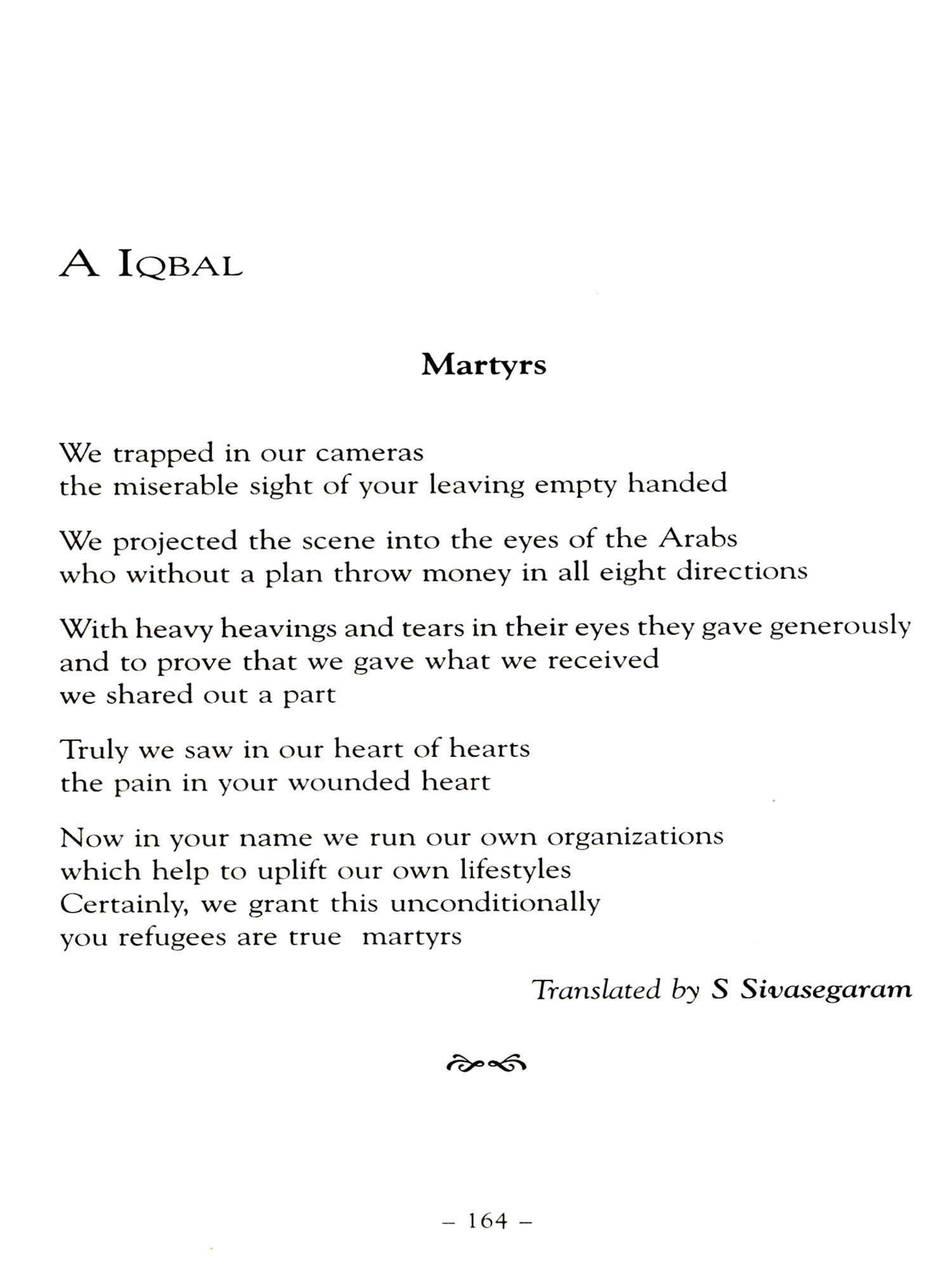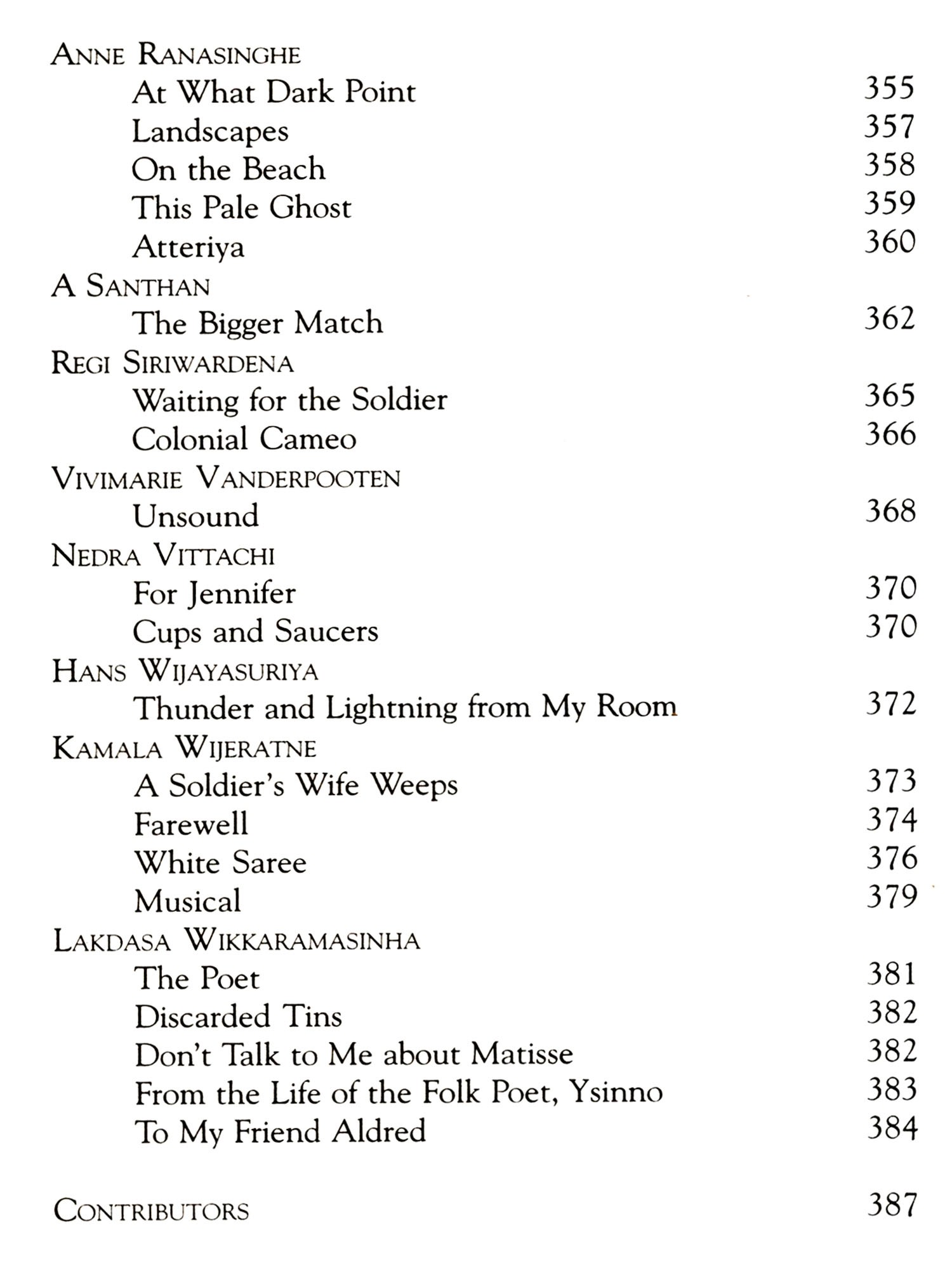I must also thank his friend, S Rajasingam, who provided me with his copy of the Penguin collection of Tamil poetry in translation, which was an invaluable guide, and waited patiently until I returned it after almost a year. I must also thank the poets and translators who so readily granted permission for their work to be used.