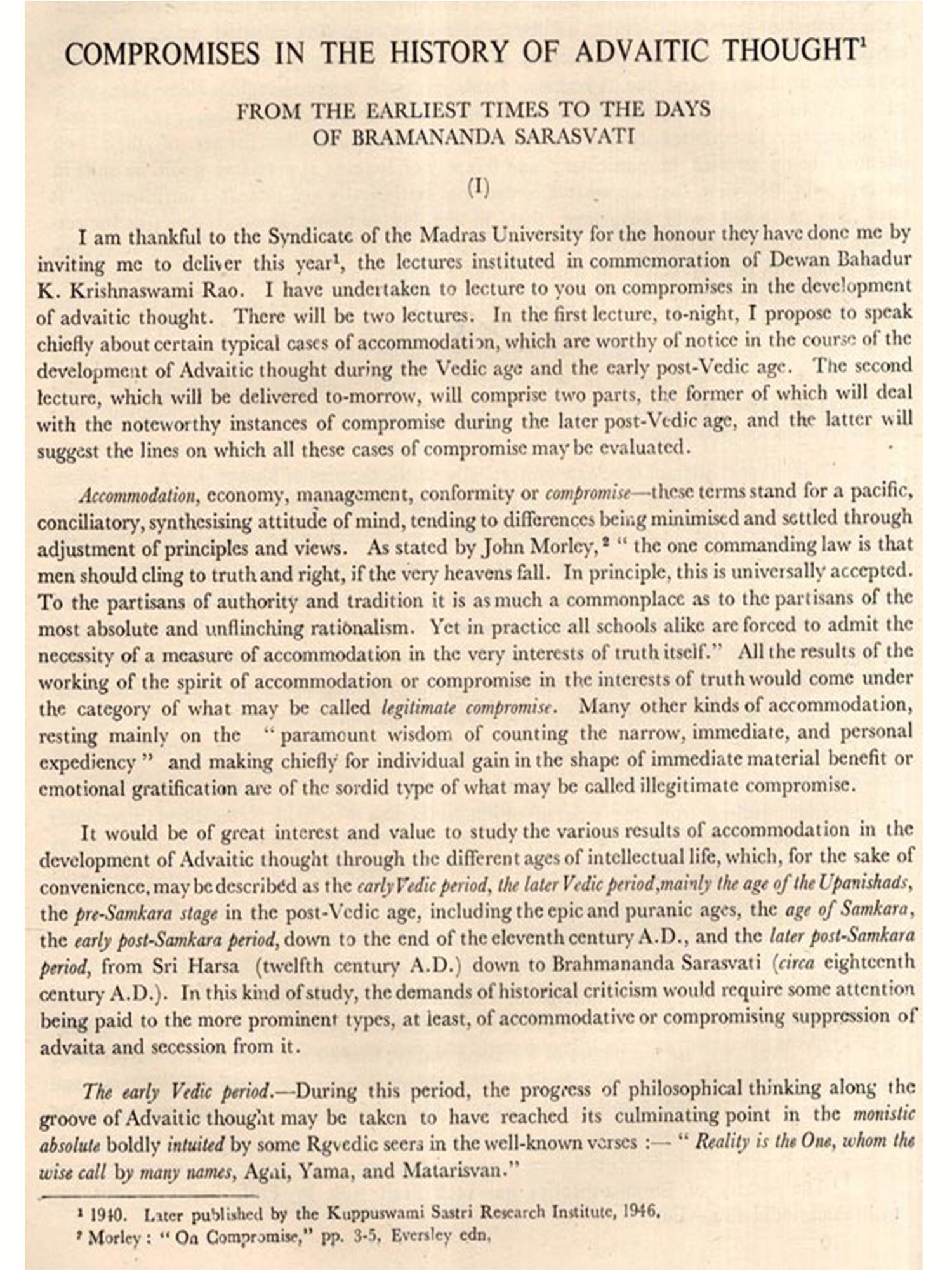It is my pleasant duty and a privilege to bring out, on behalf of the Kuppuswami Sastri Research Institute, this valuable collection of the writings of Prof. Kuppuswami Sastri, along with a Kavya on him, on the occasion of his Birth-Centenary Celebrations.