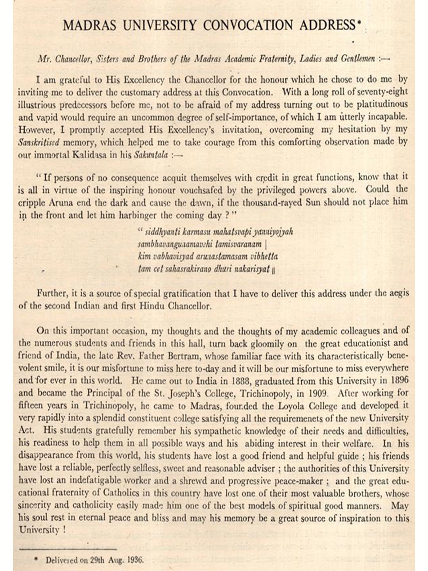 Prof. Kuppuswami Sastri was a Kulapathi in the literal sense. He has brought into existence directly and indirectly a large number of scholars who bear his mark [and have been and are working all over India. May they increase and flourish and carry the torch of learning lit by their Master!