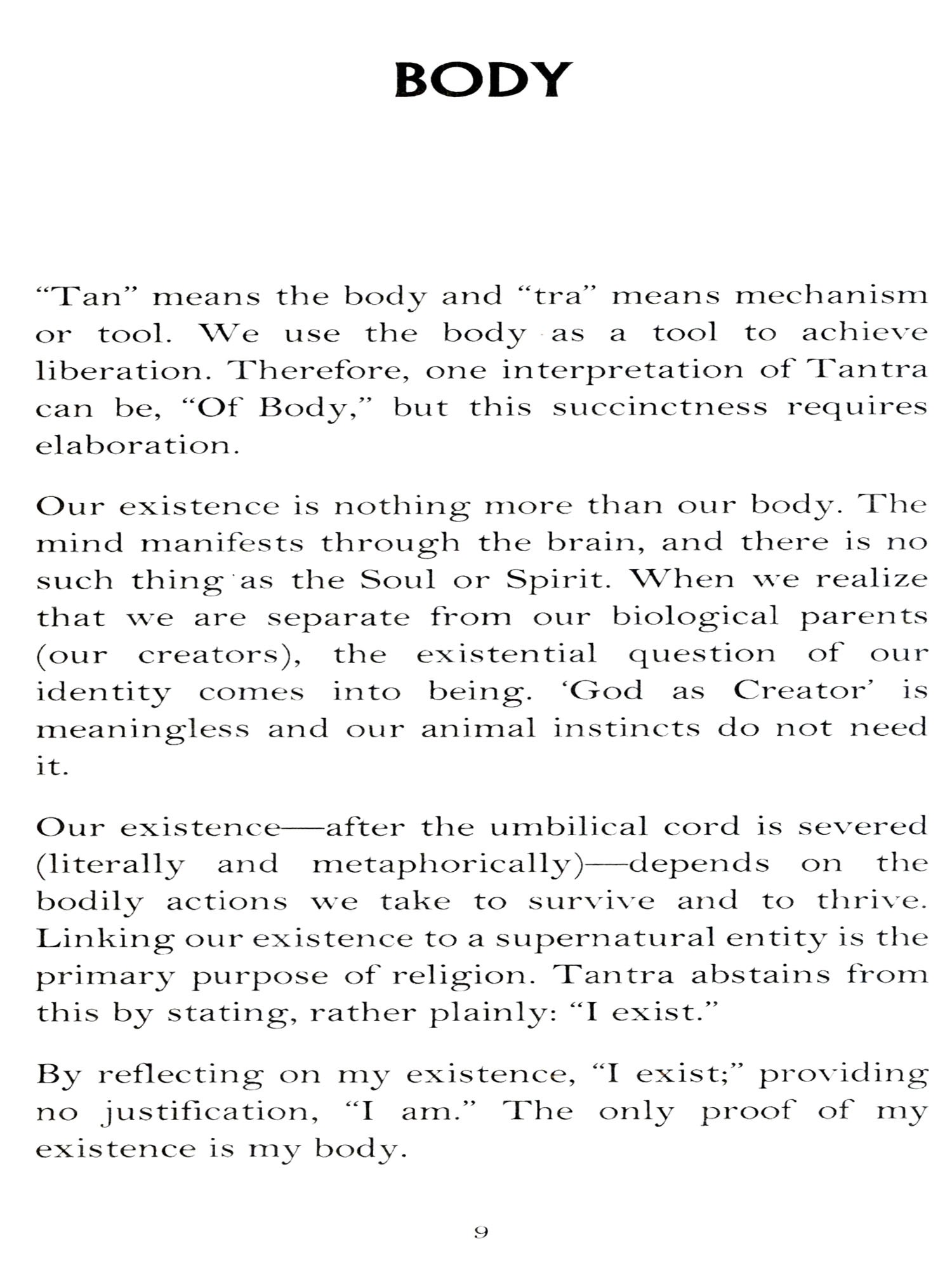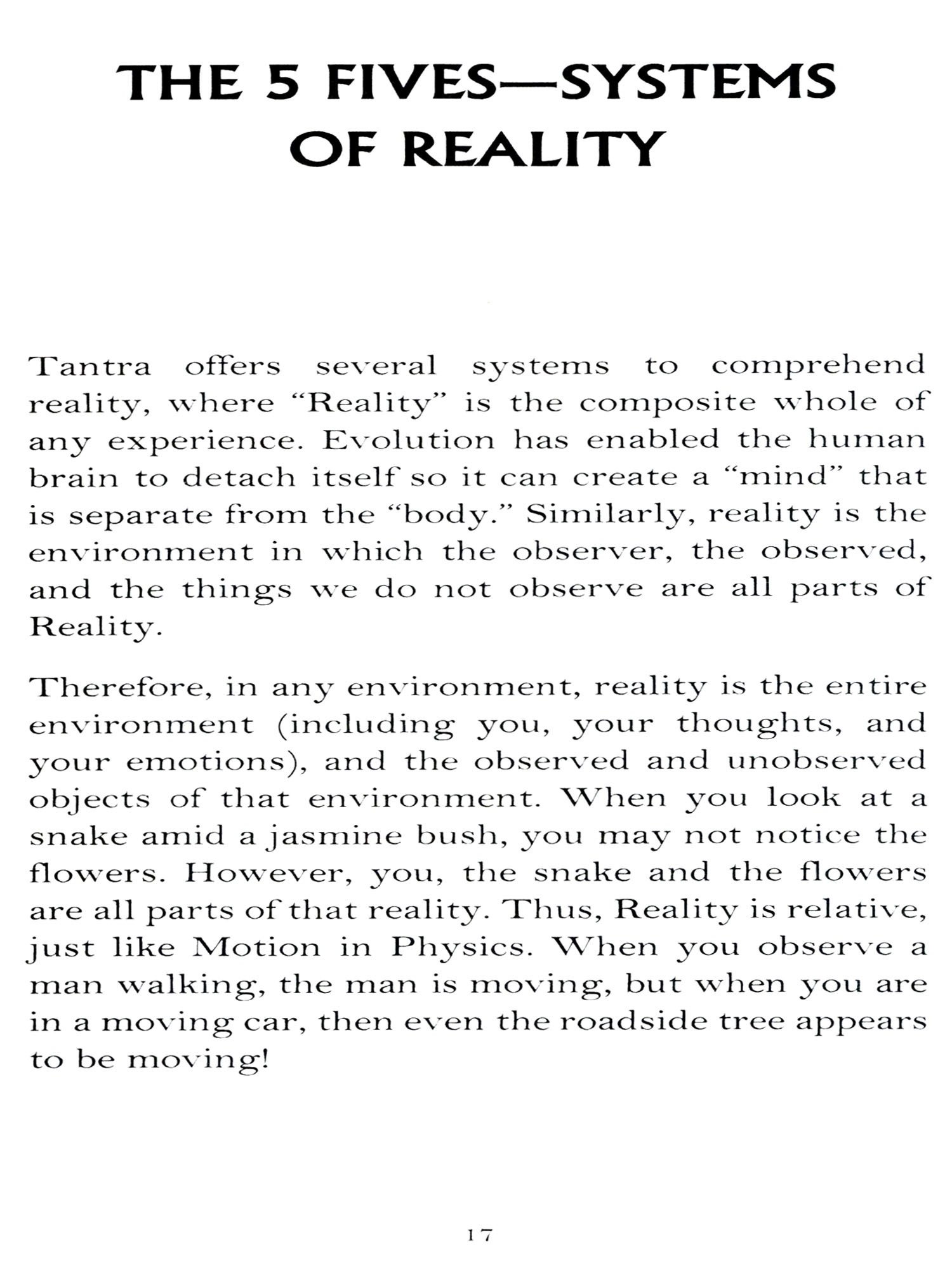 It may even manifest completely outside of our bodies! Therefore, consciousness creates the mind and not the other way around! Tantra deals with these manifestations of consciousness-it is not at all concerned with defining them! It is a collection of techniques, tools, and ritualistic processes.