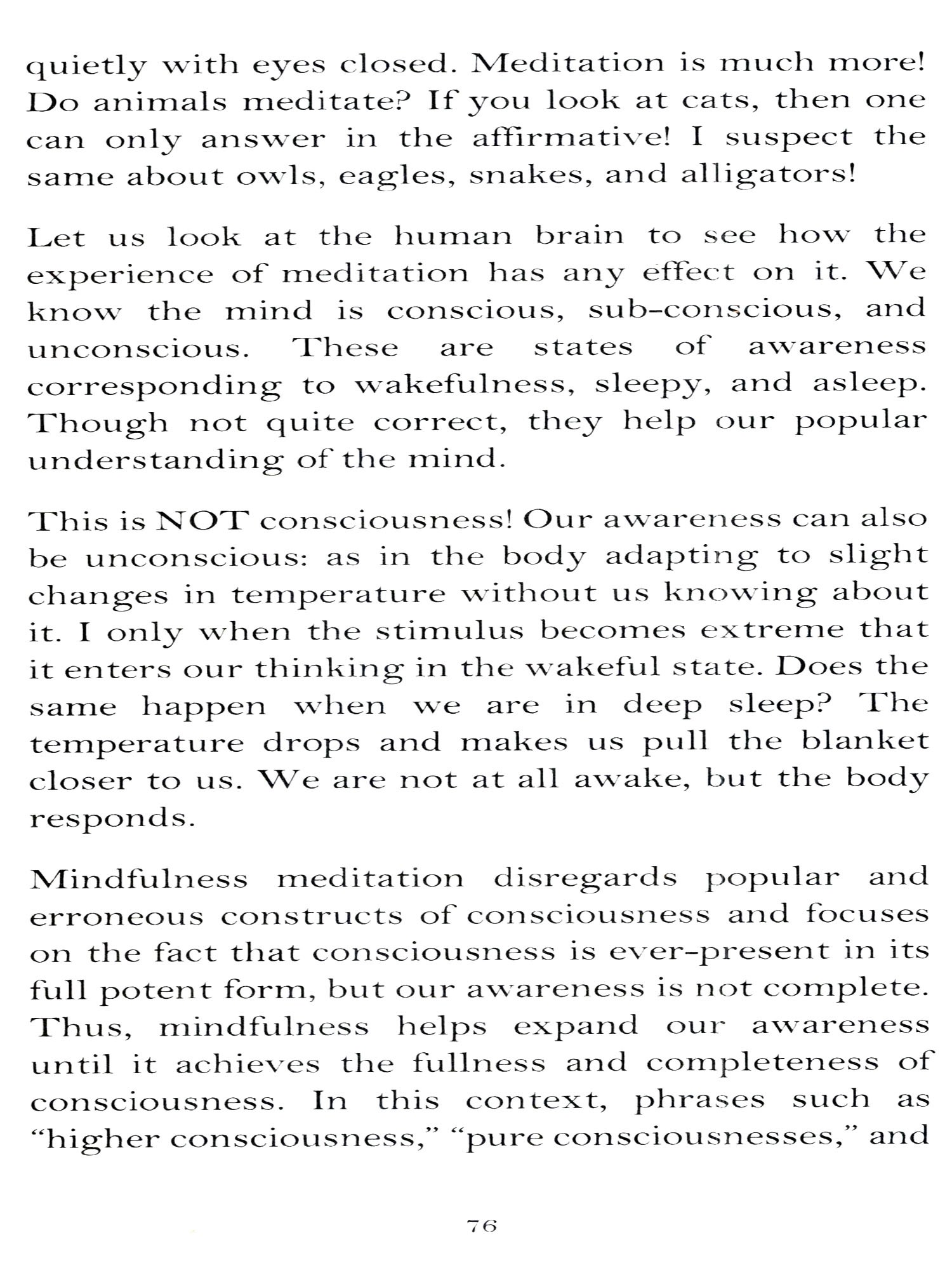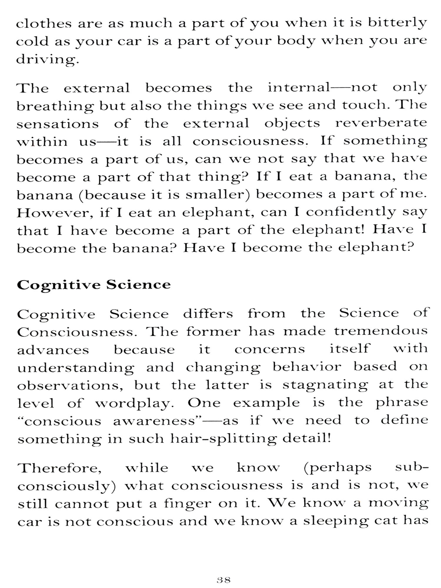 Twenty-five years of tantric practice has taught me that comprehending something means arriving at a state of consciousness. I can "know" a chair in a few nanoseconds, but philosophical subjects take several months or years. However, within the sphere of consciousness, there is no consensus on what consciousness really is! No definition is accurate enough, no description is complete, and no explanation is satisfactory.