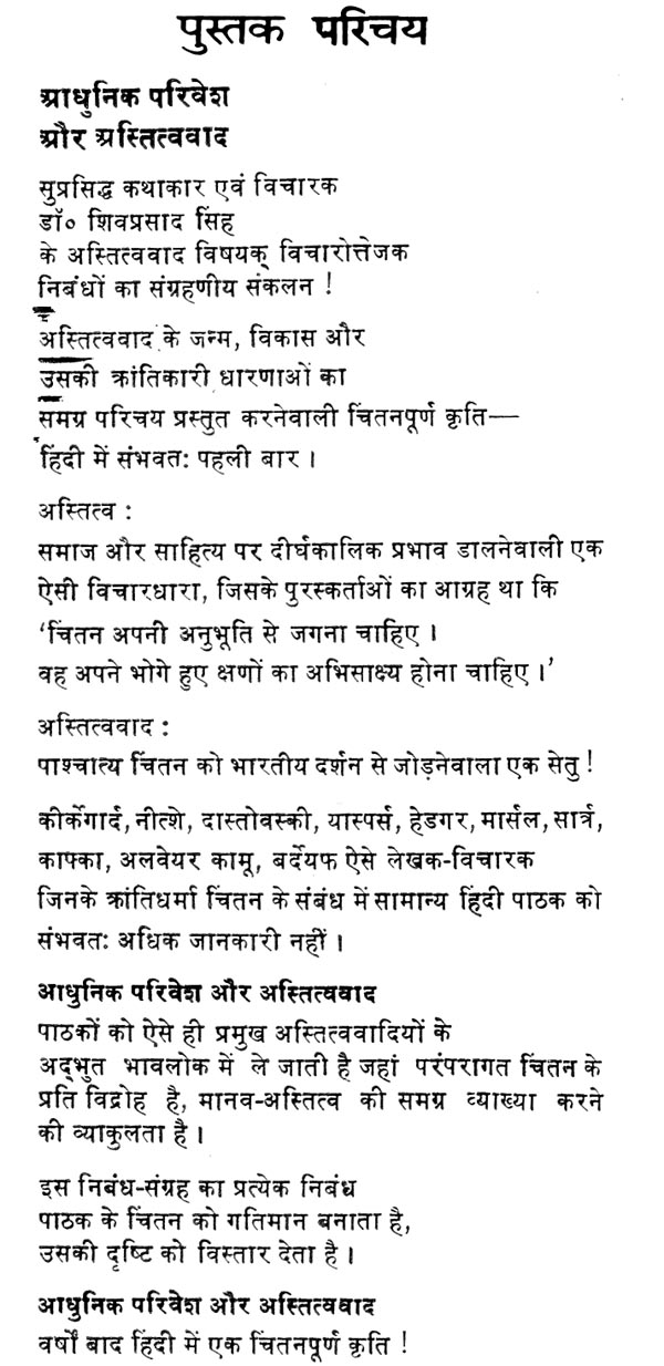 आधुनिक परिवेश और अस्तित्ववाद : Modernism and Existentialism (An Old Book)