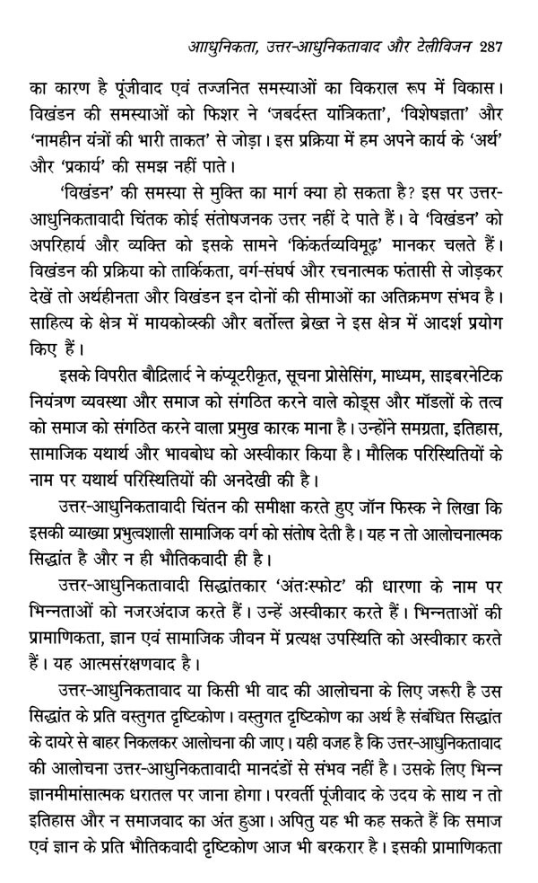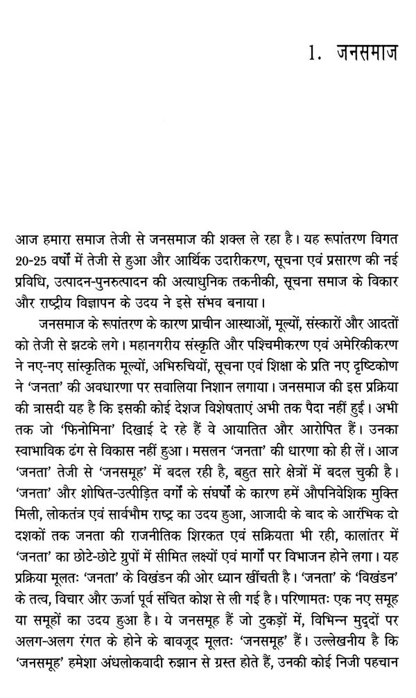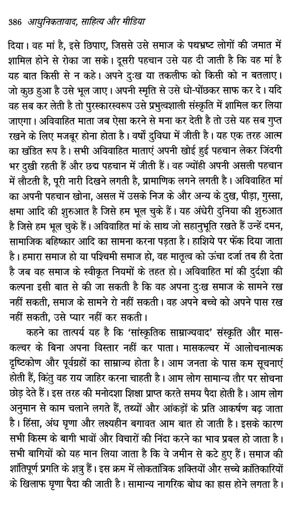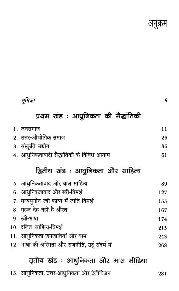 प्रस्तुत पुस्तक आधुनिकता और आधुनिकतावाद के विविध आयामों के परिप्रेक्ष्य की तलाश का एक छोटा सा प्रयास है। पुस्तक में तीन खंड हैं पहले खंड में आधुनिकता की सैद्धांतिकी से जुड़ी विचारधारात्मक बहस के सवालों और आधुनिकता की संरचनाओं का विश्लेषण है। दूसरे खंड में आधुनिकता के परिप्रेक्ष्य में रचे गए साहित्य और उसके विभिन्न क्षेत्रों जैसे जाति, स्त्री, आदिवासी, बाल साहित्य, भाषा के प्रसंग में उर्दू के सवाल आदि के सवालों पर विचार किया है। तीसरे खंड में आधुनिकता और मीडिया के बीच चल रही अंतर्क्रियाओं और विभिन्न प्रवृत्तियों का मूल्यांकन किया गया है। इस किताब के विभिन्न अध्याय विगत 25 साल के दौरान अलग-अलग प्रसंग के दौरान लिखे गए हैं। आशा है आधुनिकता और आधुनिकतावाद के अध्येताओं को यह पुस्तक पसंद आएगी।
