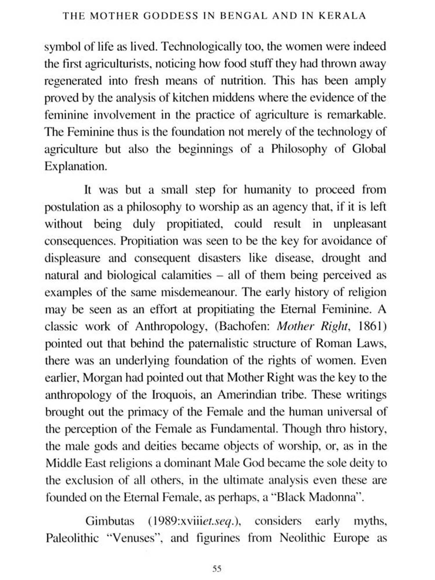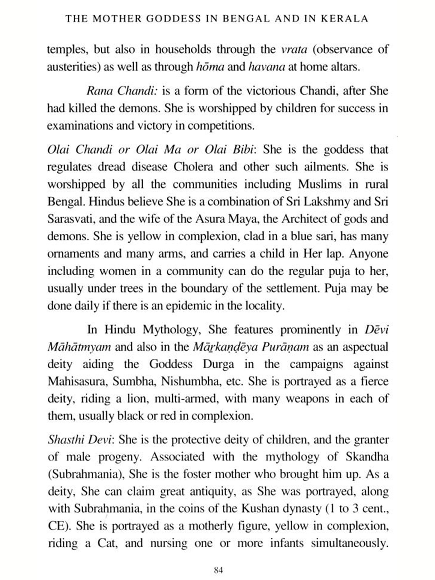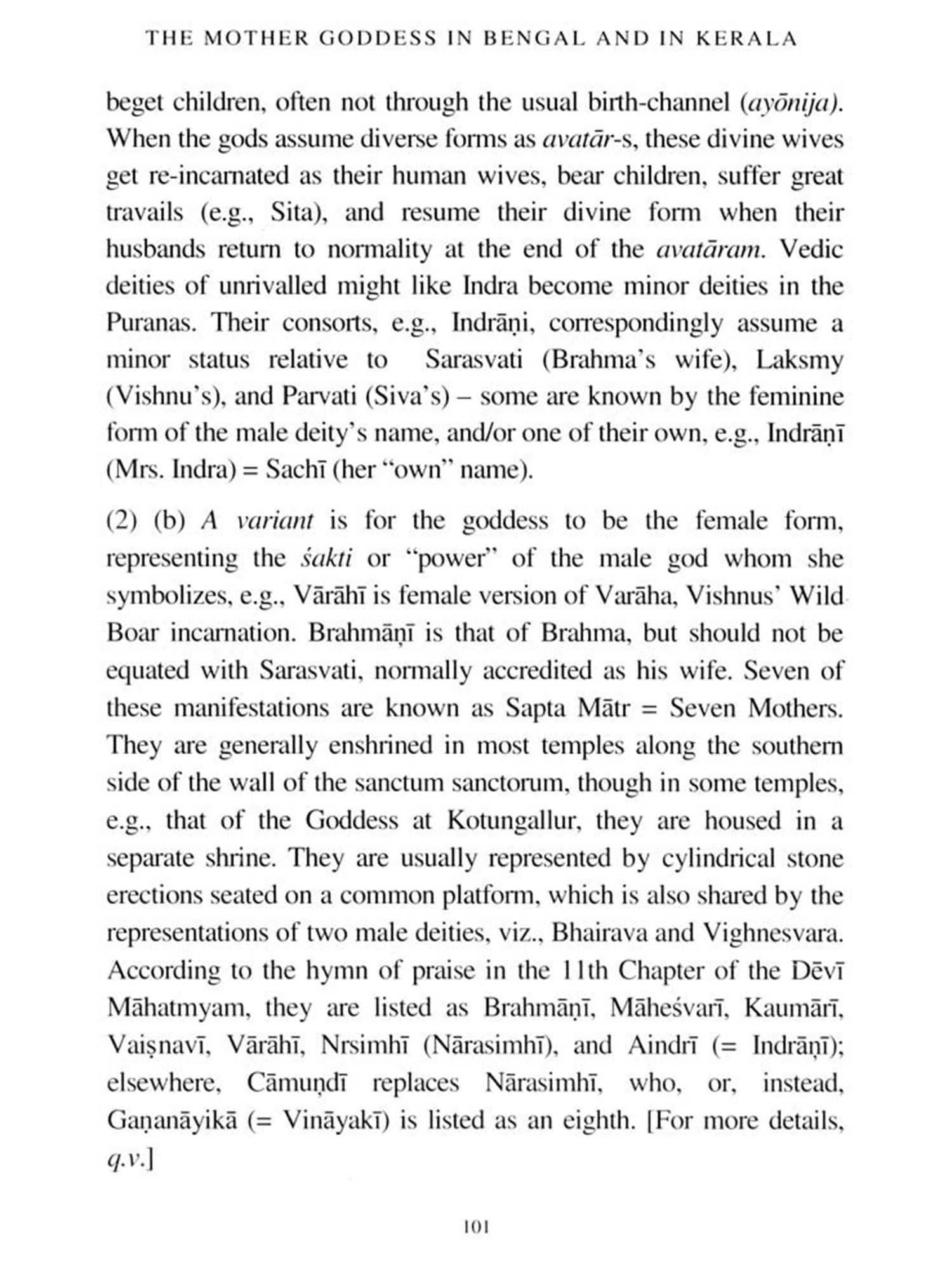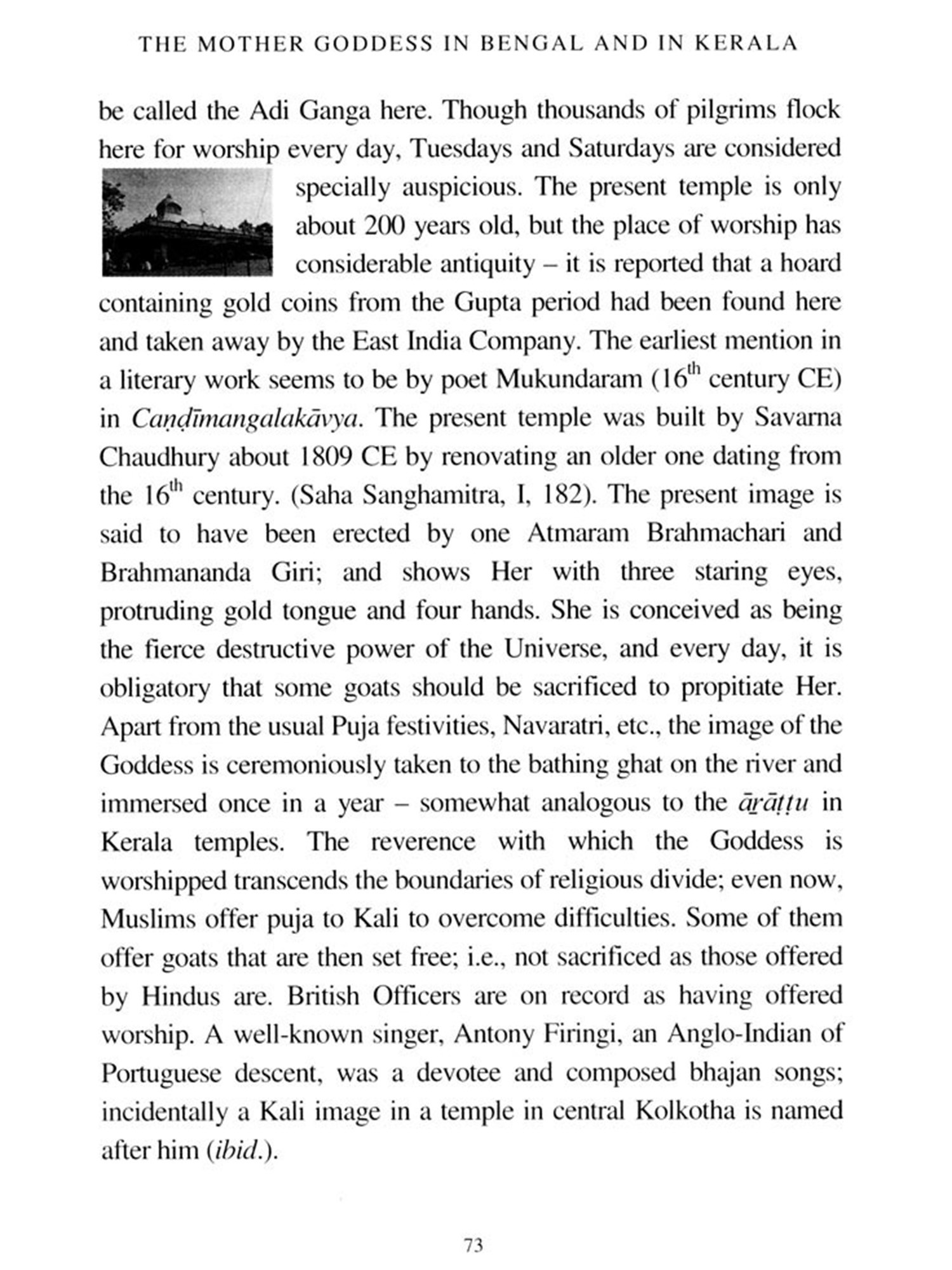 By utilising a generous grant from the Government of West Bengal, the Council of Direction of International School of Dravidian Linguistics entrusted T. Madhava Menon IAS to write a book on The Mother Goddess in Bengal and in Kerala. Within the stipulated time he finished the work and submitted the report. It is published here with slight modifications regarding diacritic marks noted by Dr. Ravi Sankar S. Nair.