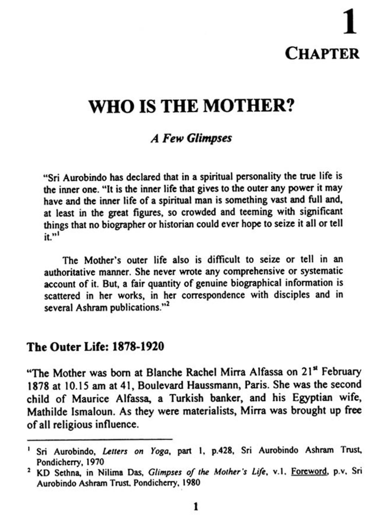 It will be worthwhile to mention that NCTE lays considerable stress on highlighting the contributions of Indian educationists and thinkers. In consonance with this, it has initiated a vigorous move to deepen the insights and perceptual understandings of the teacher educators by confronting them with carefully composed and articulated presentations of our great minds. The present work constitutes an important addition to our effort in this regard. I welcome it as it has a great didactic appeal and naturalness in assimilating and conveying the message underlying Mother's educational practice.