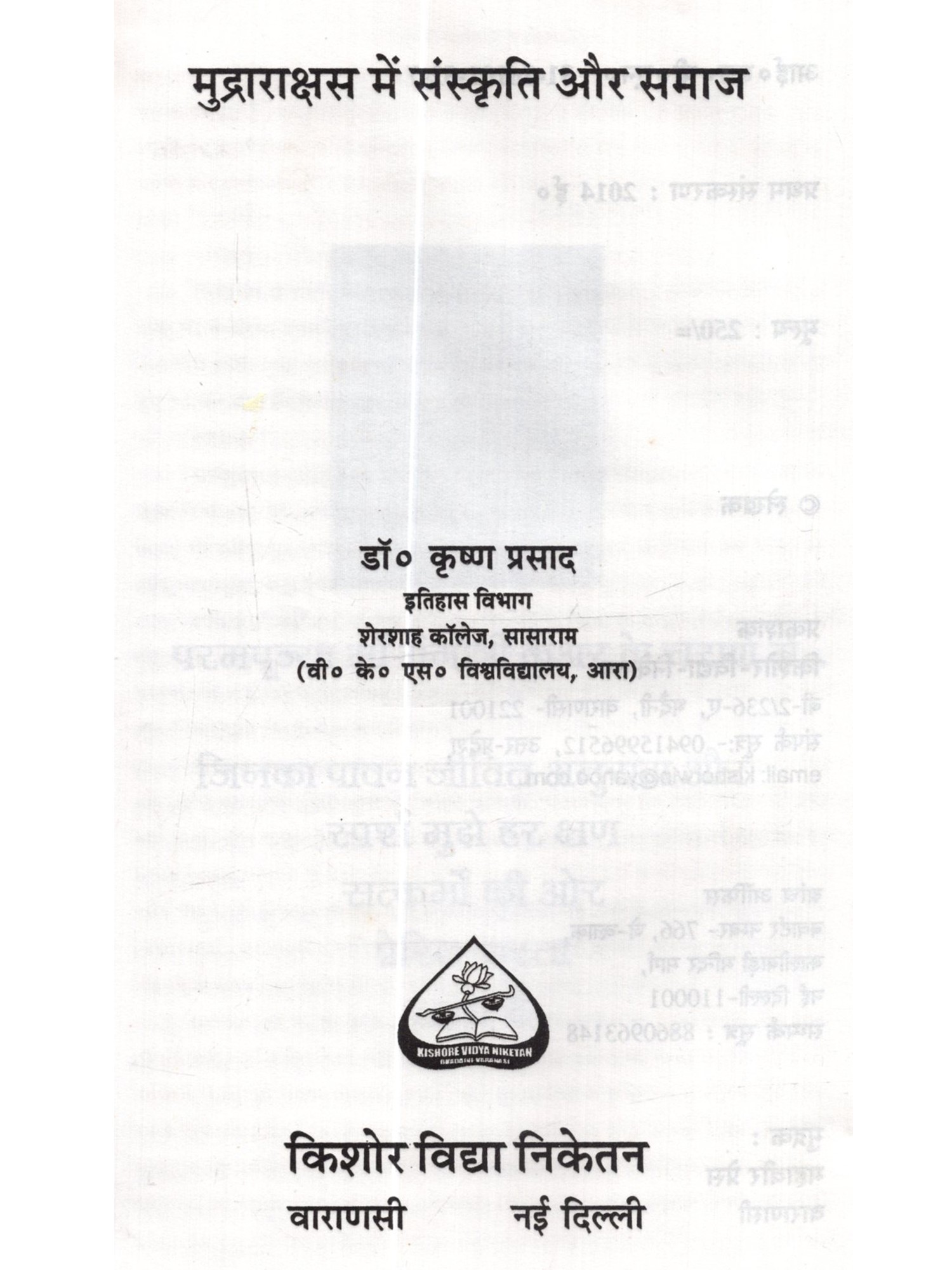 लेखकका नाम: डॉ० कृष्ण प्रसाद पिता : स्व० राजेश्वरी प्रसाद जन्म-तिथि : २९-०१-१९६२ करनसराय, सासाराम, वर्तमान पता रोहतास (बिहार) इतिहास विभाग, शेरशाह कॉलेज, सासाराम (वीर कुँवर सिंह विश्व-विद्यालय) लगभग २७ वर्षों से इतिहास विभाग में अध्यापन, अनेक शोध पत्र, विशिष्ट शोध पत्रिकाओं में प्रकाशित, कई राष्ट्रीय स्तर की गोष्ठियों में शोधपत्रों को बाचना। महाविद्यालय में वर्सर' पद पर तीन वर्षों तक सफलतापूर्वक कार्य सम्पादन तथा हिन्दी साहित्य सम्मेलन रोहतास के प्रचार सचिव ।