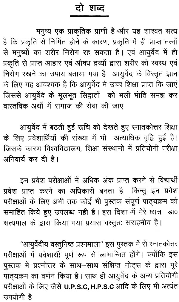 आयुर्वेदीय वस्तुनिष्ठ प्रश्नमाला: Multiple Choice Questions on Ayurveda (An Old Book)