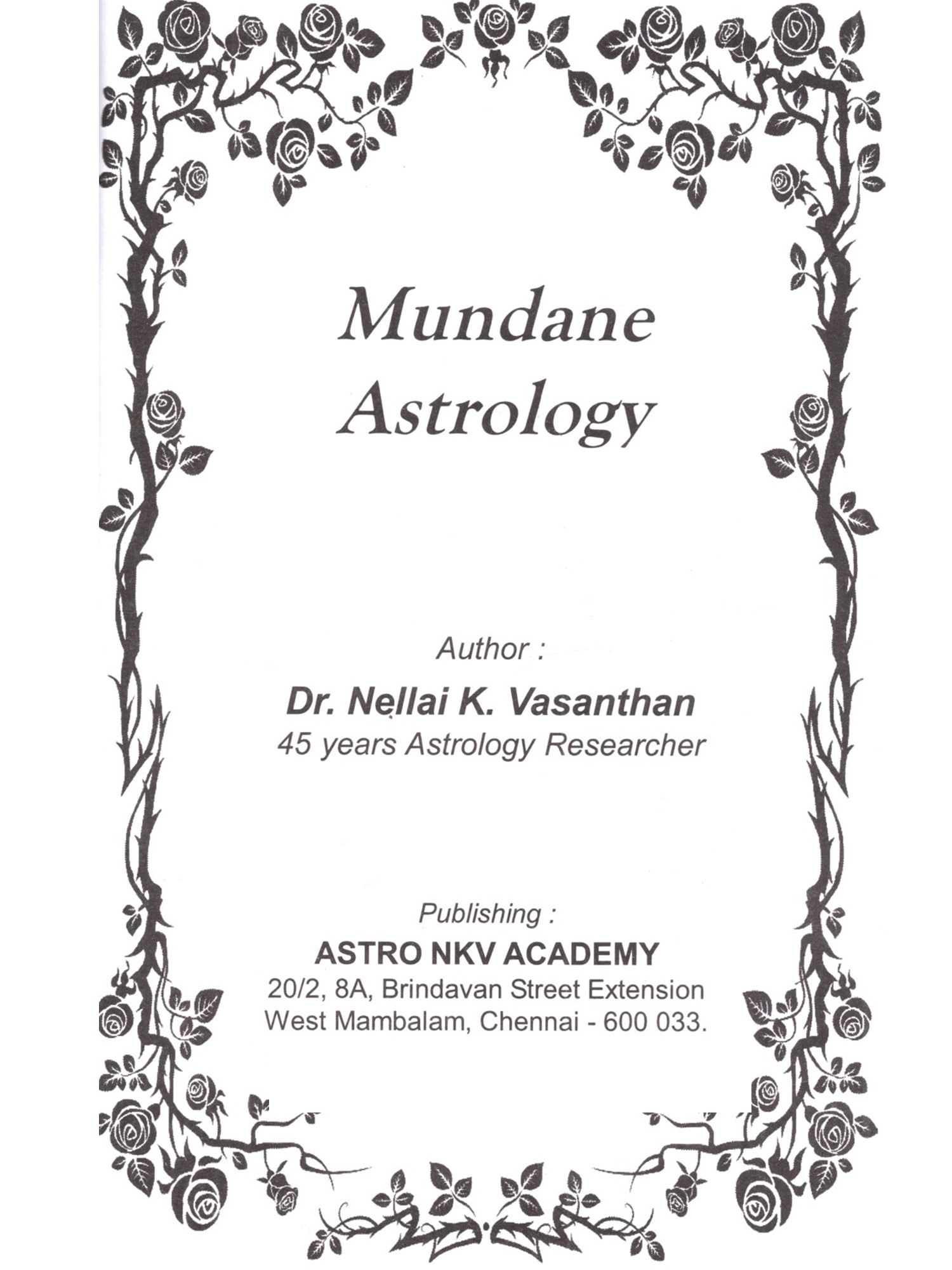 Collection of Records During Saturn Mars Conjunction. In this book Mundane Astrology has been very well explained with the abundance knowledge of Dr. Nellai K. Vasanthan This book will take astrology in to next level with greater heights. Every astrologer will be sifted having this book knowledge in Mundane Astrology. This book is nothing but hardasort and passionate love and experience in the field of astrology by. Dr. Nellai K. Vasanthan