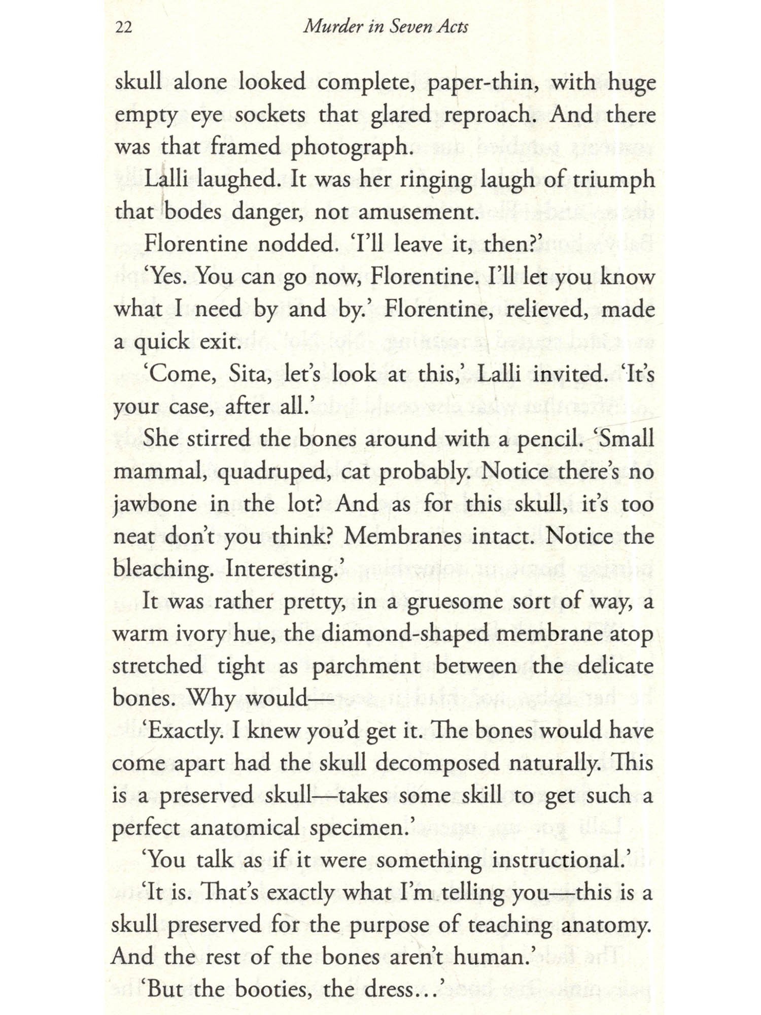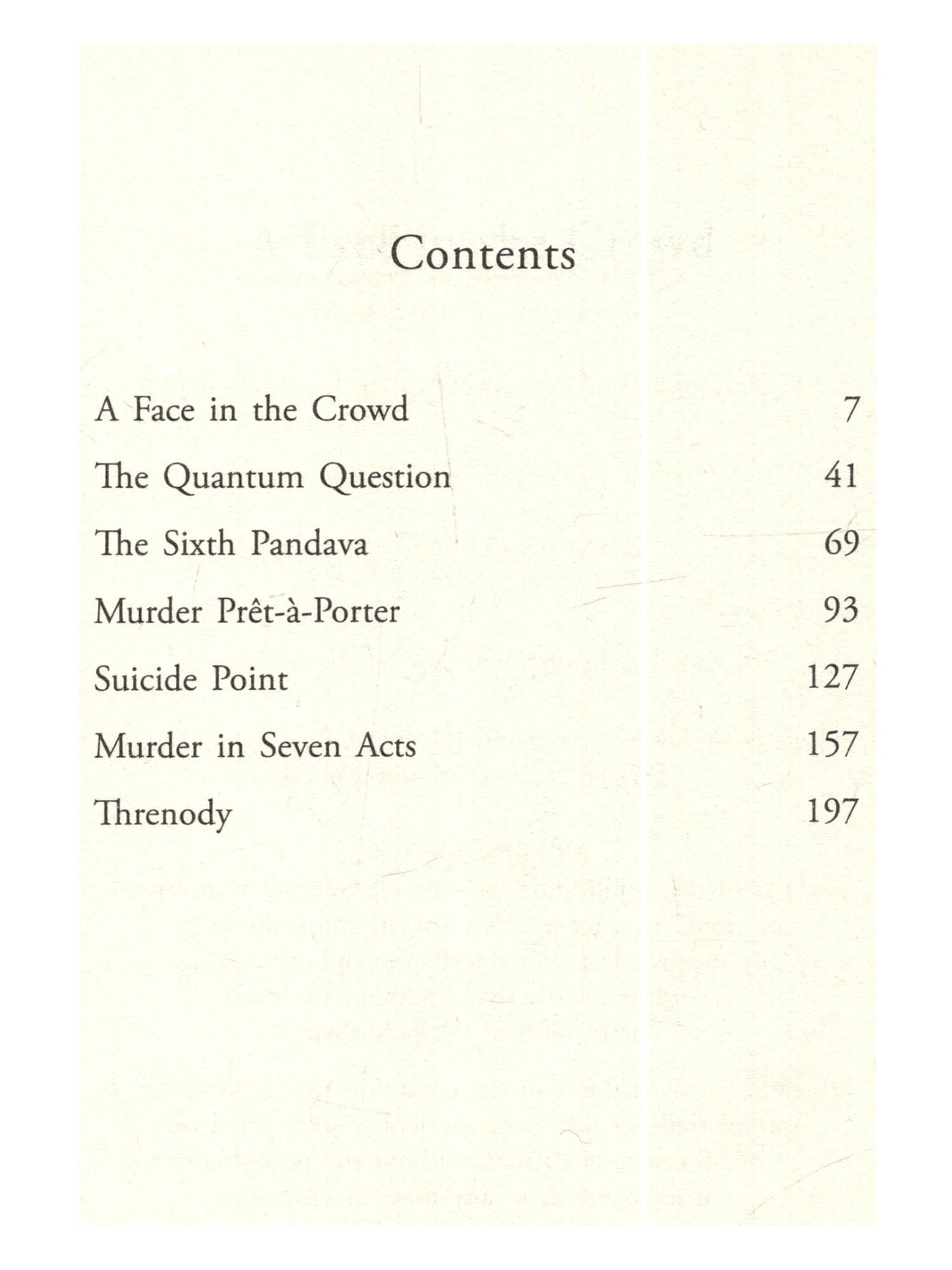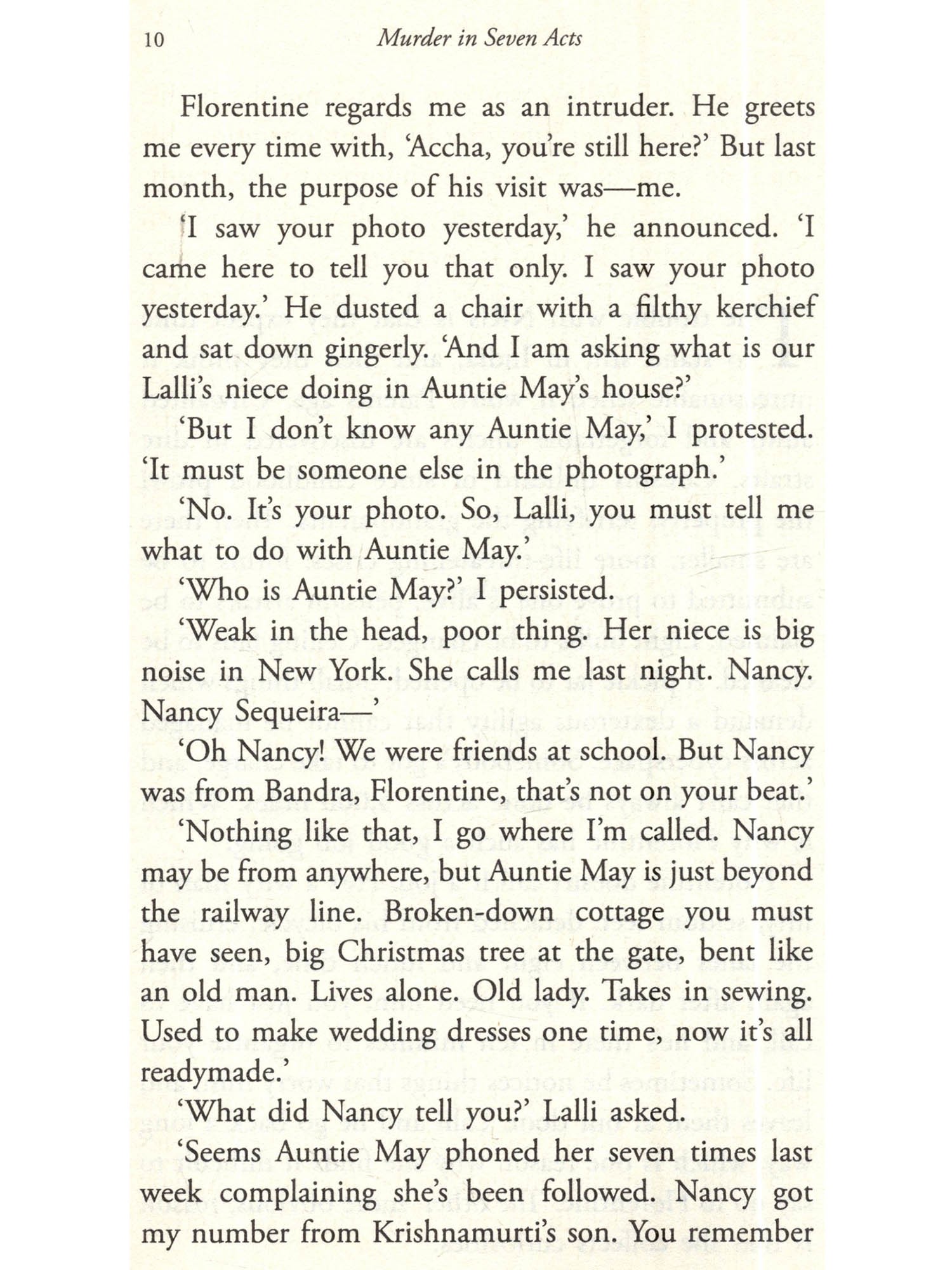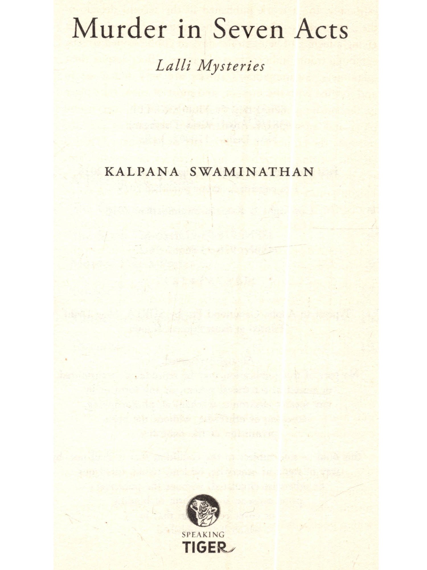 Lalli, retired police detective, is one of the most endearing characters in Indian crime writing. Adept as much at making the best marmalade in the world as at fixing the nastiest conspirator, she is India's answer to Miss Marple, a woman with the sharpest pair of ears and eyes for miles-Livemint In this gripping collection of seven stories, Lalli-sixty, silver-haired and tough as nails-solves some of the strangest cases of her career. A face keeps reappearing in unlikely places, until a crime of jealousy committed long ago is revealed. Letters from a dead woman hint at a murder that may or may not have happened. A hate-fuelled book-burning claims a life in horrific fashion; and a serial killer turns up in the studio of a famous fashion designer. A suicide in a Mumbai suburb turns out to be something far more sinister; and an innocuous desk ornament becomes a clue to a crime most artistically executed. Finally, for connoisseurs of crime fiction, the curtains come down with a story about lost love and a subtle, surprising revenge. Sometimes, even the committed crime fiction reader, like a cop who has seen too many corpses begins to tire of the genre. That's probably a good time to read Kalpana Swaminathan...I found great joy in Murder in Seven Acts.. [A] great cast of Bombay people flit through these pages. There is no super criminal here, but humans soured by greed jealousy and lust. Despite the vast city, whose inner mythm Lalli always attuned to, Swaminathan teaches you to listen to the intimate and the human