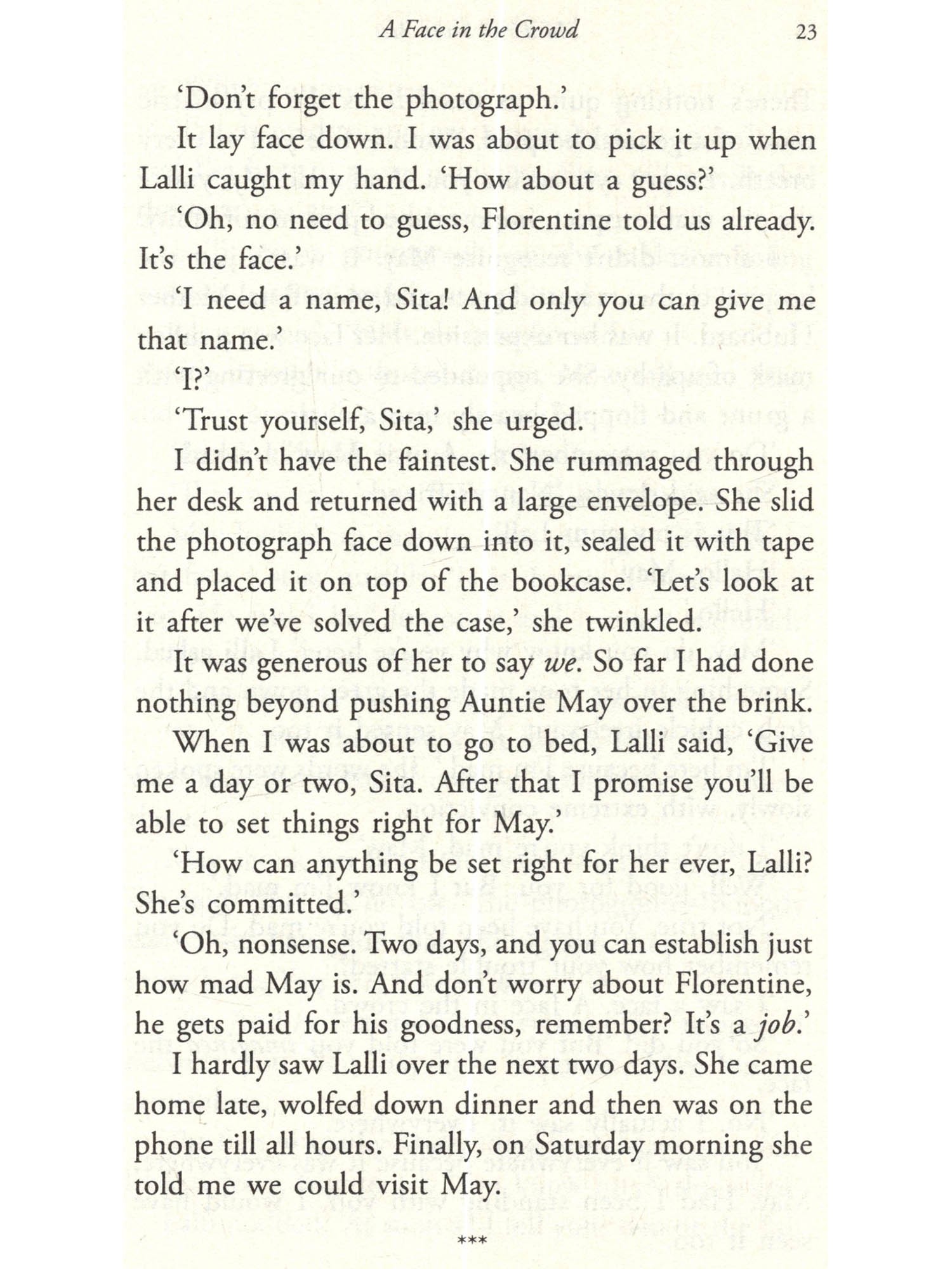 Kalpana Swaminathan lives in Mumbai, a few streets away from her detective Lalli. Since Cryptic Death (1997), Lalli has appeared in six novels. Swaminathan's other books include the novels Ambrosia for Afters and Bougainvillea House and the short-story collection Venus Crossing, which won the Crossword Fiction Award in 2009.