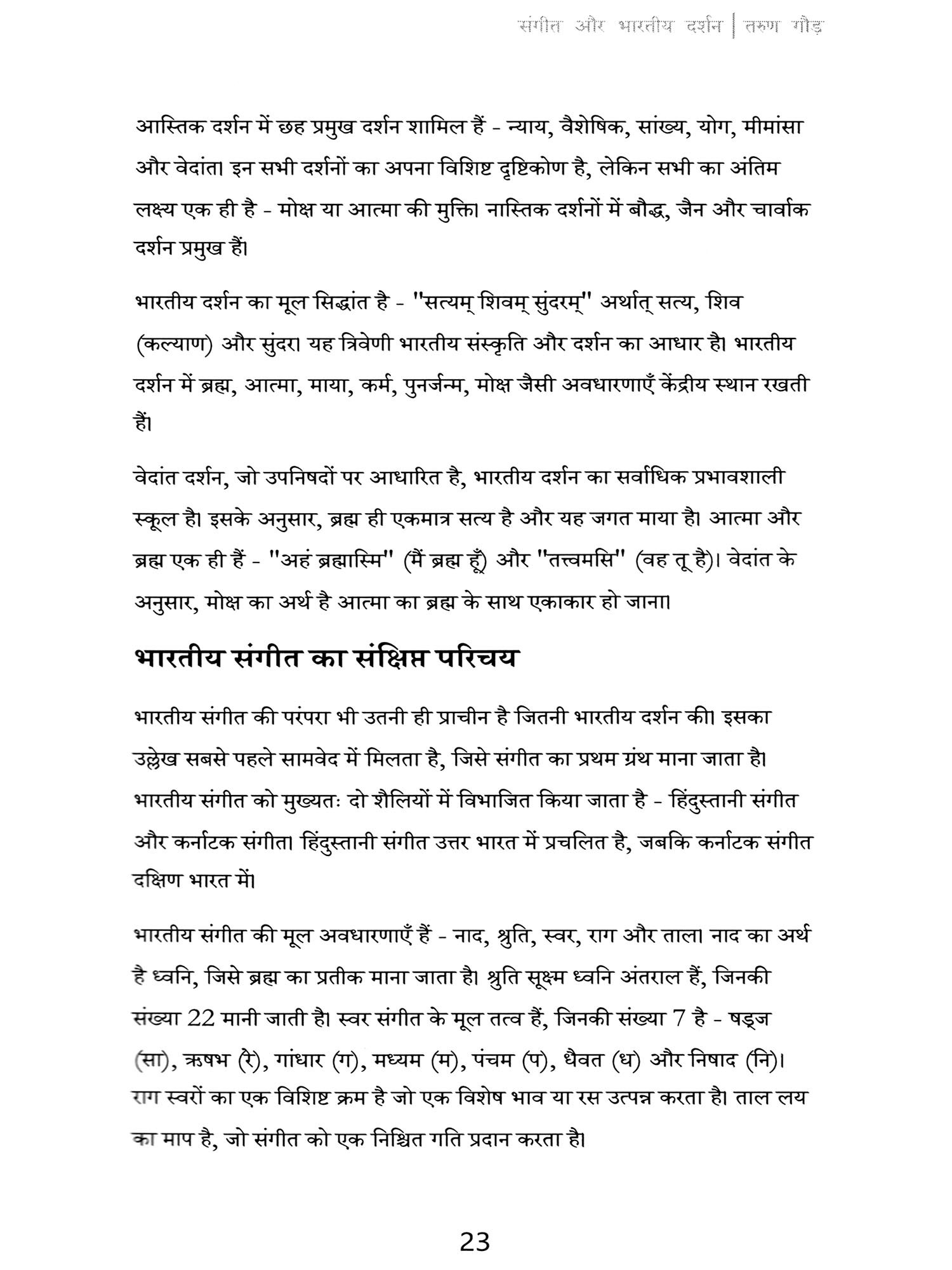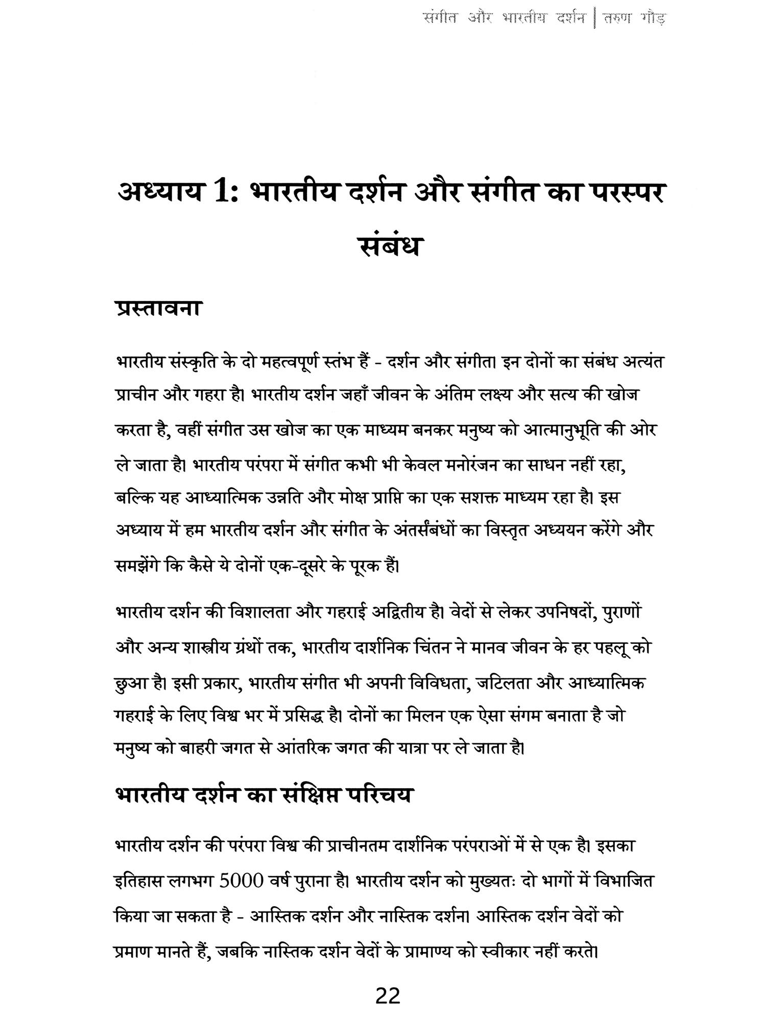 "संगीत और भारतीय दर्शनः उपनिषद, वेद, और पुराणों का योगदान" पुस्तक के माध्यम से आप सभी से संवाद करते हुए मुझे अत्यंत हर्ष का अनुभव हो रहा है। यह पुस्तक मेरे जीवन के दो महत्वपूर्ण पहलुओं भारतीय शास्त्रीय संगीत और भारतीय दर्शन के बीच के गहरे संबंधों की खोज का परिणाम है।