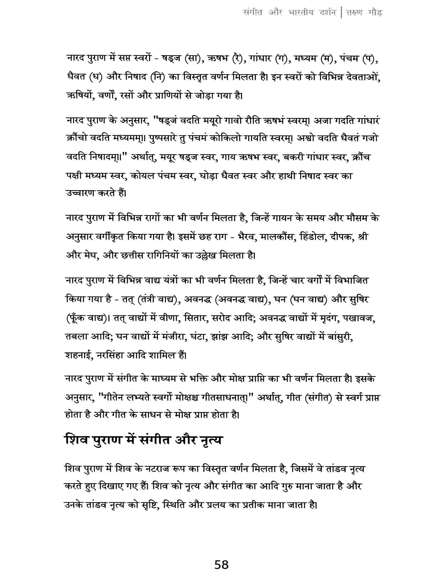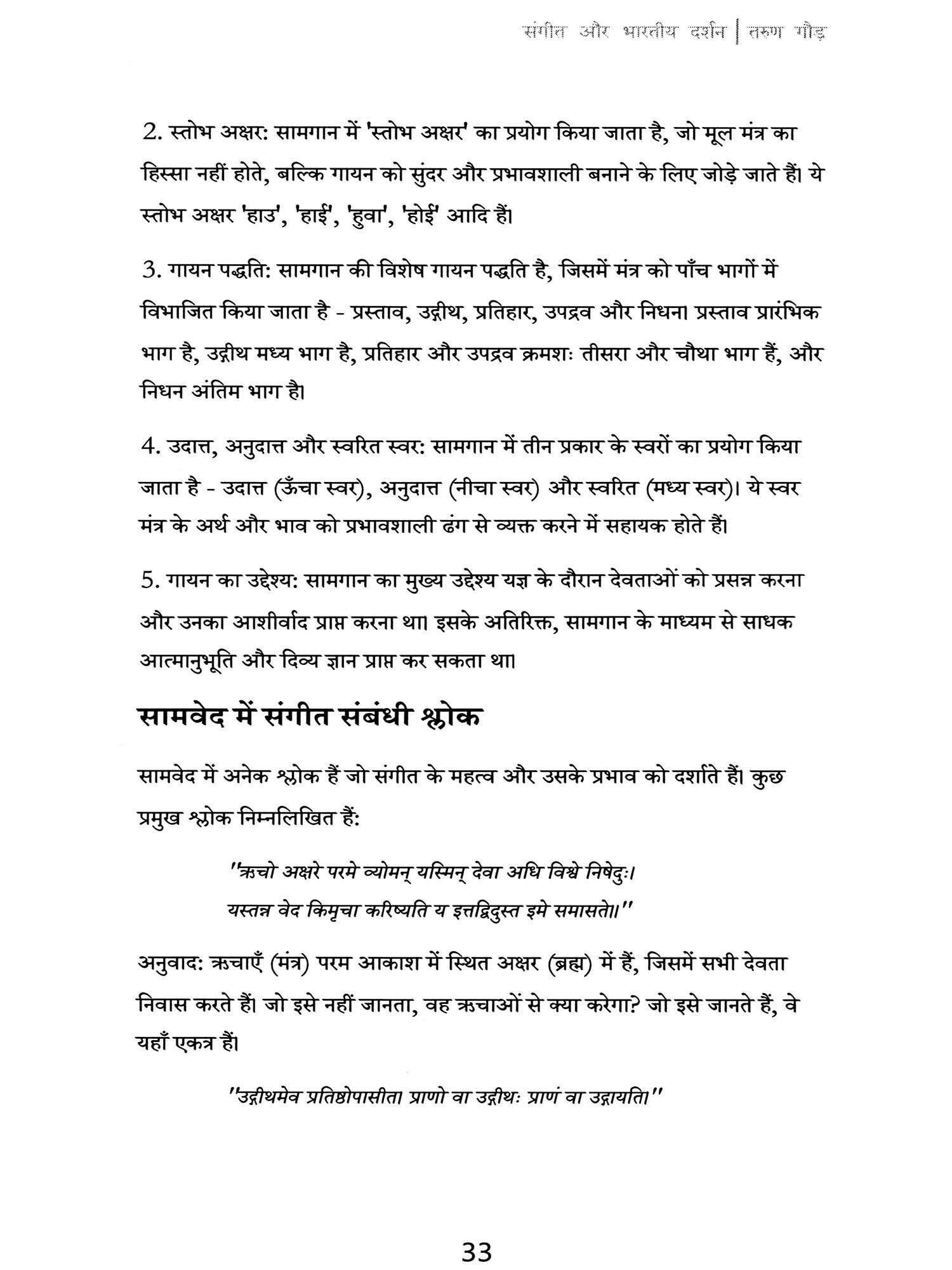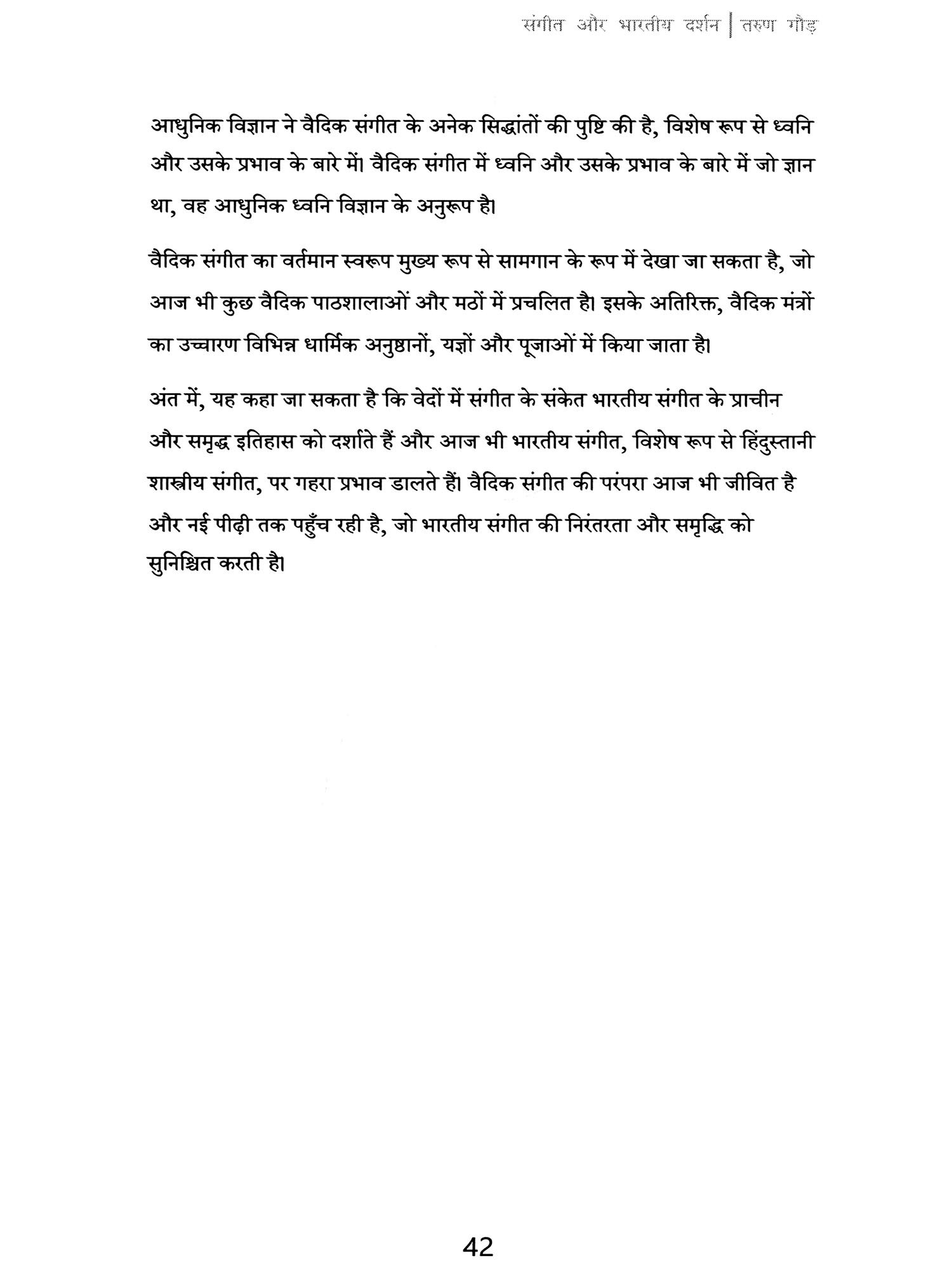 इस पुस्तक में मैंने विशेष रूप से हिंदुस्तानी शास्त्रीय संगीत पर ध्यान केंद्रित किया है, क्योंकि यह परंपरा वैदिक काल से लेकर आज तक अनवरत रूप से विकसित होती रही है। पुस्तक में मूल संस्कृत श्लोकों के साथ-साथ उनके हिंदी अनुवाद भी दिए गए हैं, ताकि पाठक प्राचीन ज्ञान के मूल स्रोत से भी परिचित हो सकें।