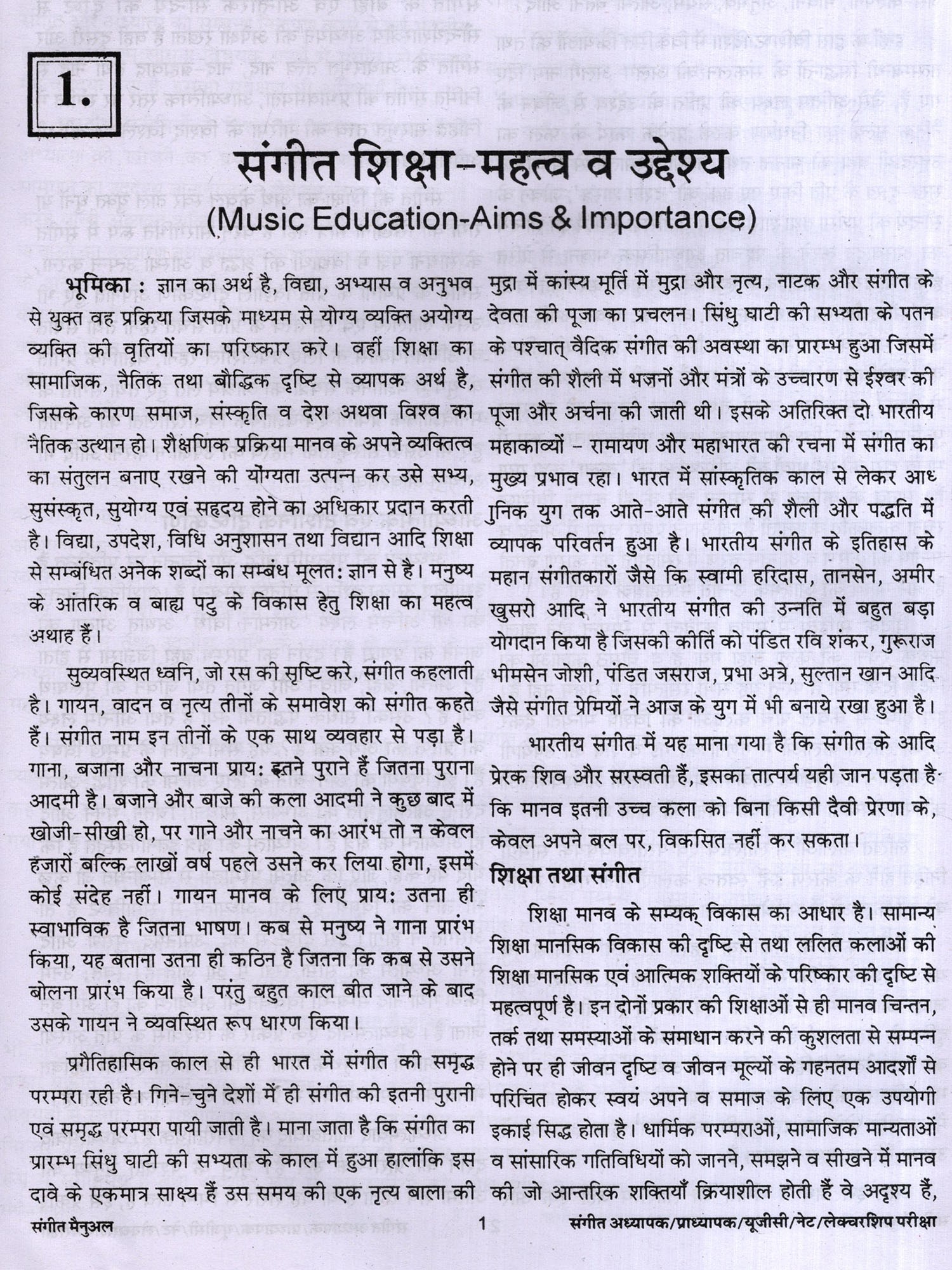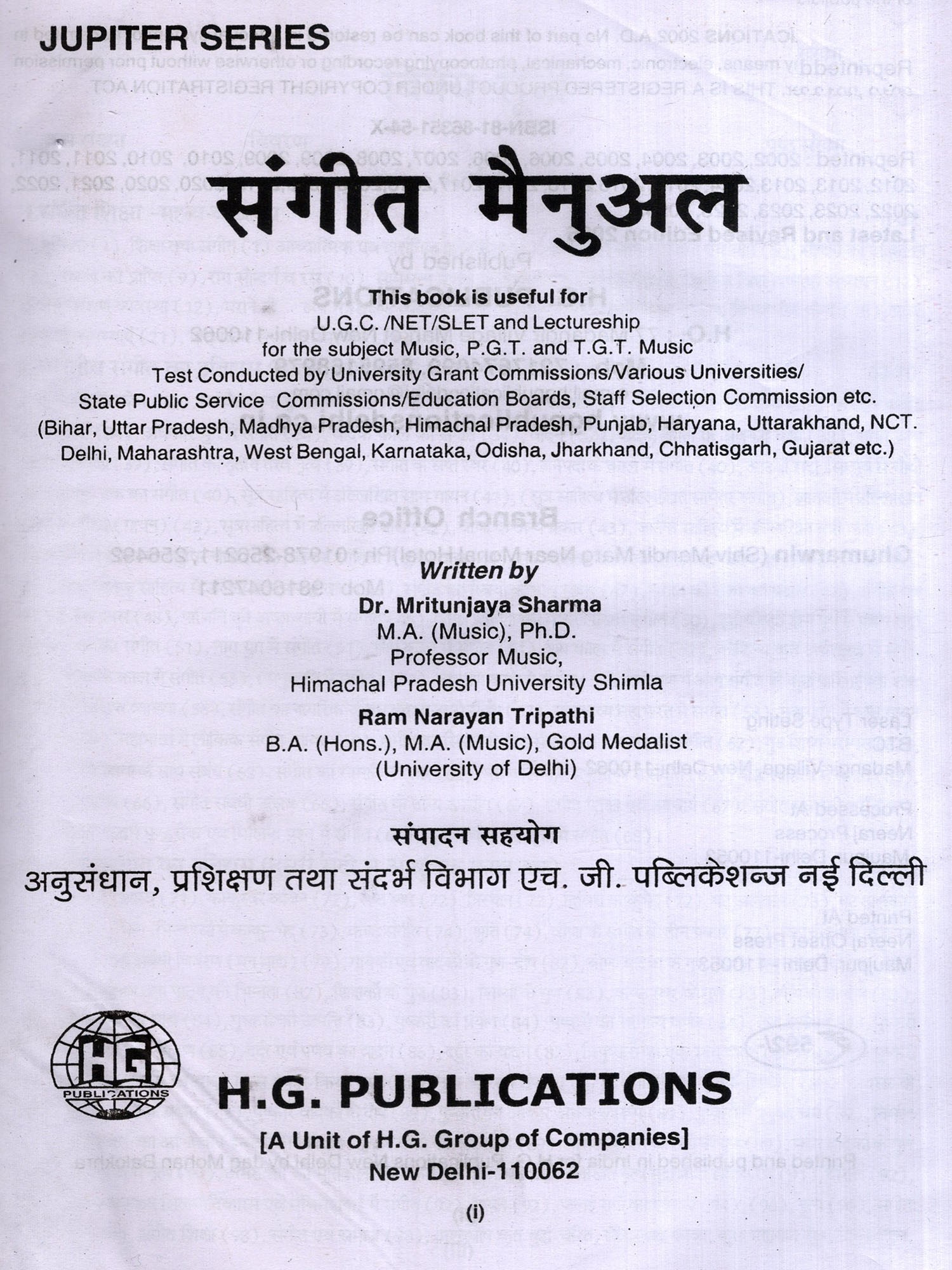 पिछले कई वर्षों से एक ऐसी पुस्तक की आवश्यकता महसूस की जा रही थी जो विश्वविद्यालय अनुदान आयोग नेट (NET) तथा विभिन्न राज्य लोक सेवा आयोग द्वारा संचालित सलेट (SLET) की संगीत विषय की परीक्षाओं में बैठने वाले उम्मीदवारों को उचित माग्र दर्शन का सके। मुझ पर कुछ समय से अनेक मित्रों तथा छात्रों का आग्रह पड़ रहा था कि मैं अपने अनुभव के आधार पर एक छोटी, परन्तु उपयोगी पुस्तक लिखूं। प्रस्तुत पुस्तक इसी सप्रेम आग्रह का परिणाम है।