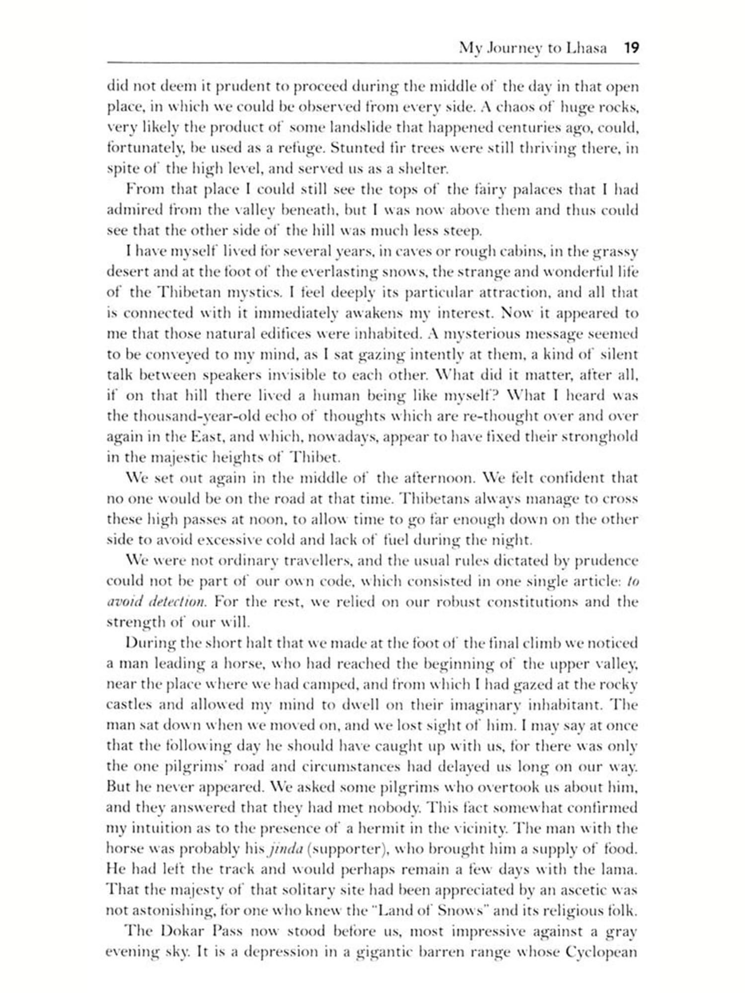 My Journey to Lhasa by Alexandra David-Neel is a captivating memoir of the author's daring and extraordinary journey to Tibet in the early 20th century. In this work, David-Neel recounts her arduous and often perilous trek through the Himalayan Mountains to reach Lhasa, the sacred heart of Tibetan Buddhism. At the time, Tibet was largely closed off to foreigners, and the journey was both physically challenging and fraught with political and cultural obstacles.
