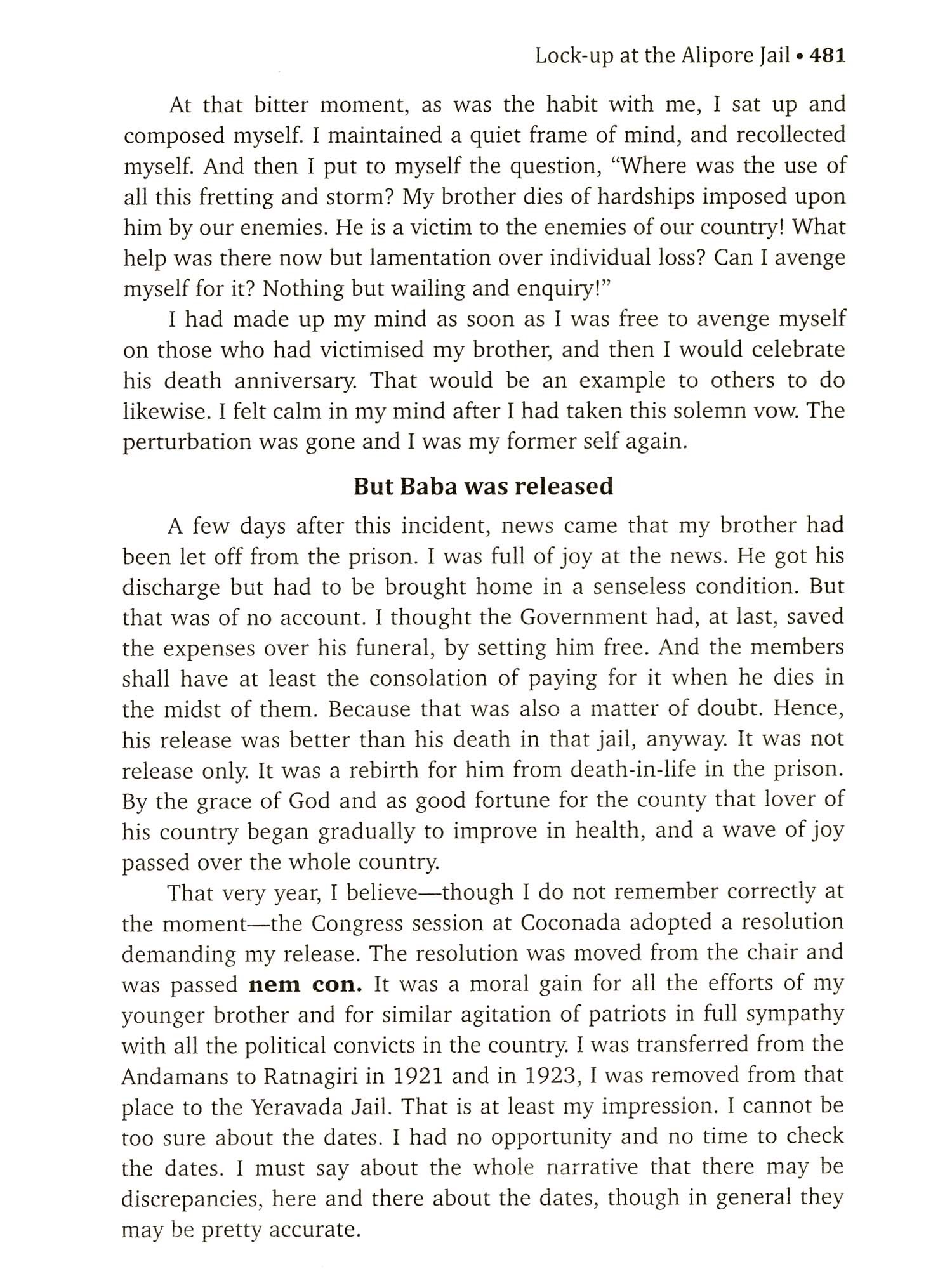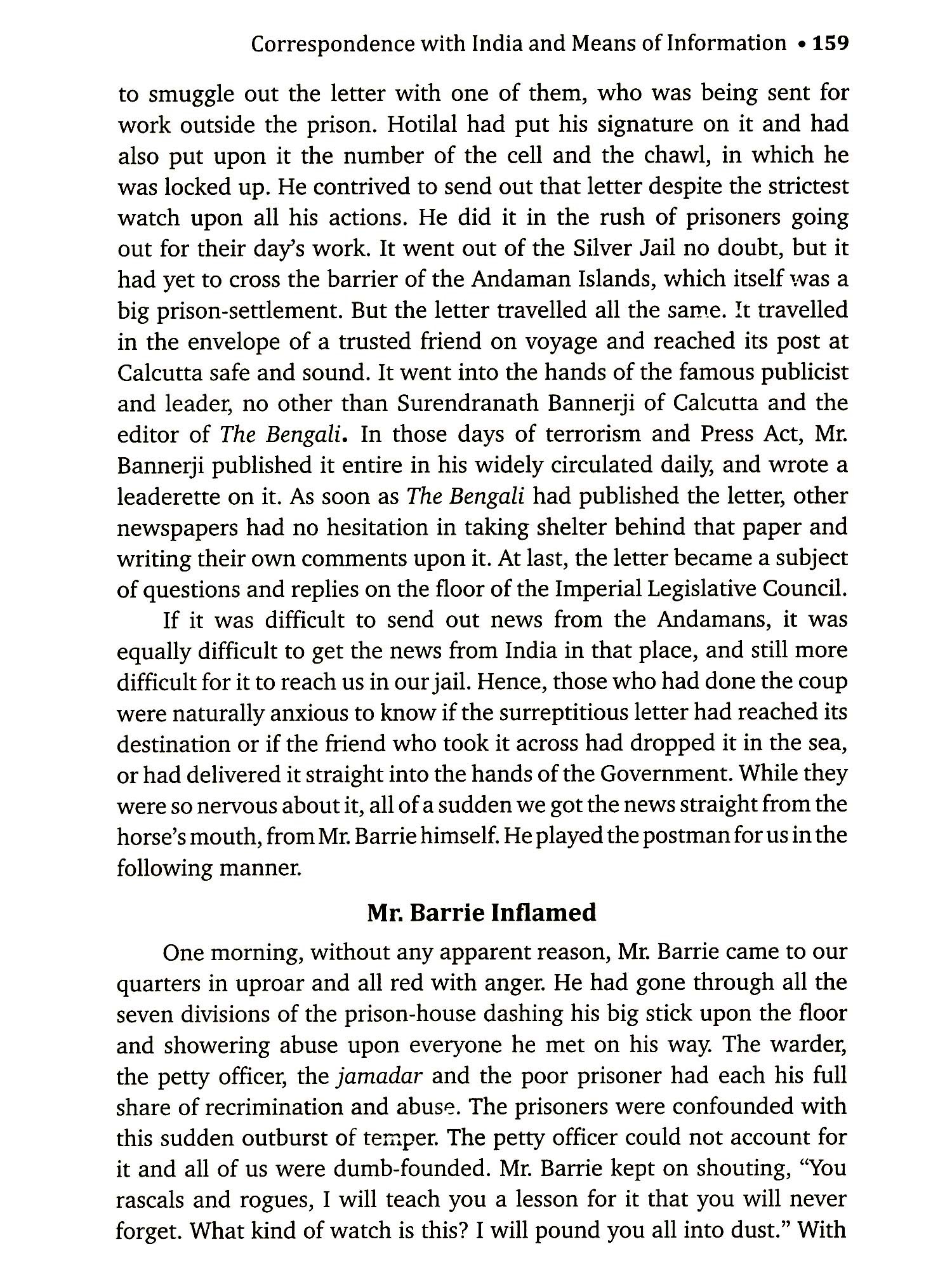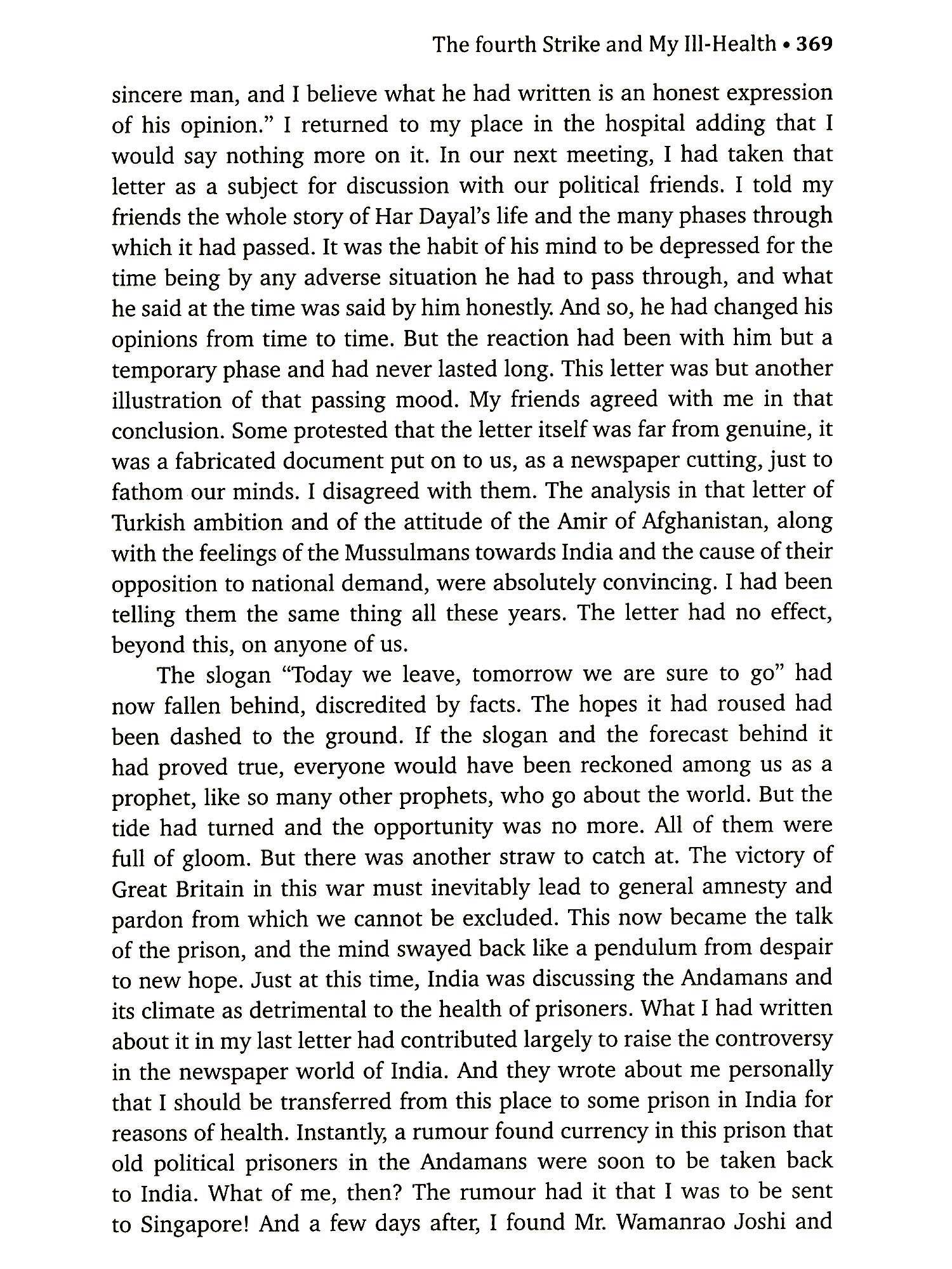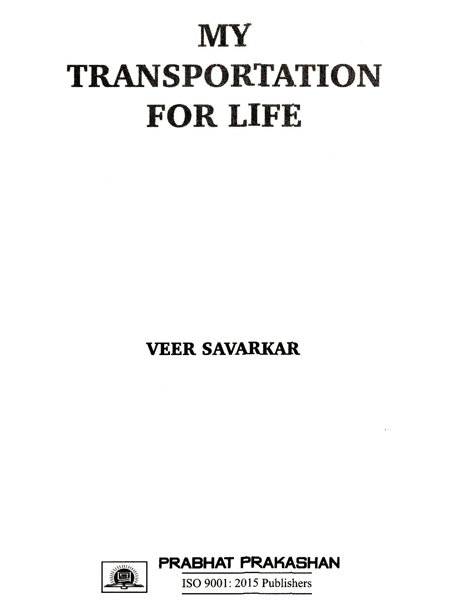 The Story of the publication of the Book 'My Transportation for Life', originally written in Marathi, is as tortuous and yet as significant as the story of the toils and tortures suffered by its illustrious author. Many minor freedom fighters have come out with the colourful versions of their internment in jail making the most of what a little they endured there, but Swatantra Veer VD. Savarkar in spite of his exceptionally heroic struggle against his most inhuman incarceration and the beastly treatment meted out to him and his co-convicts in the Cellular Jail of the Andamans was reticent to breathe out a word about it all. For, he often wondered if it would be proper and decent to do so, whether it would not bounce back upon him with the charge of boastfulness or whether by doing so, his extraordinary sacrifice and infernal sufferings in the Andamans might not appear more theatrical and sham than real and horrid. Moreover, he felt whether he would not do a great wrong to his co-sufferers who bravely laid down their lives on the altar of freedom without having the slightest chance of uttering a single word about anything whatsoever. Granting that a loud and heartrending cry or wail is a natural concomitant or consequence of every agony, whether it be the dying screech of helpless and hapless bird in the jaws of a hawk or, maybe, the national lament of the French people at the sight of the dead body of their beloved Emperor Napoleon brought to Paris from St. Helena - it was still felt unworthy of expression in as much as whatever was worth telling about in the story of the Transportation for Life could not be clearly told because of the stringent government conditions laid down on his release, while whatever little could be written down was bound to be colourless and shallow because of the incoherence that must necessarily creep in the narration.