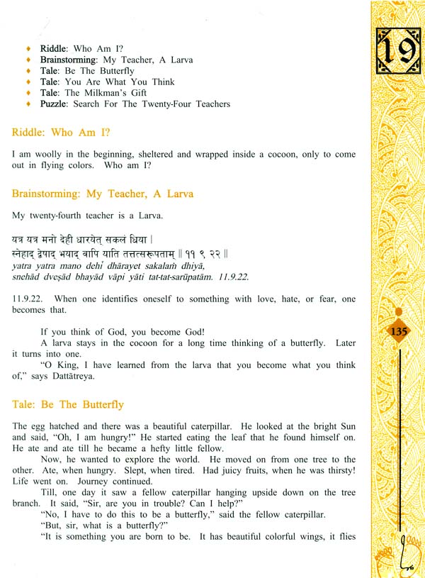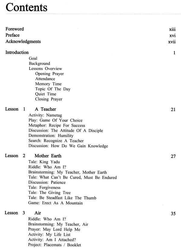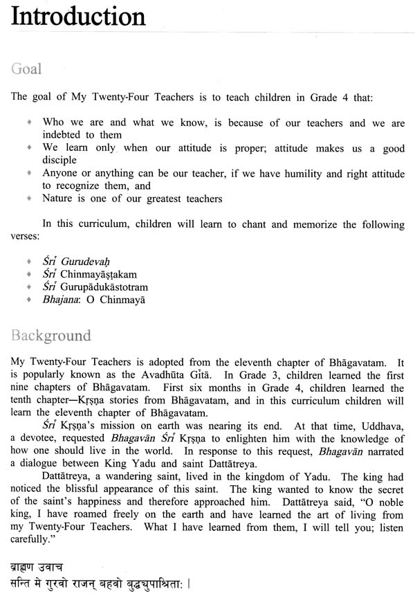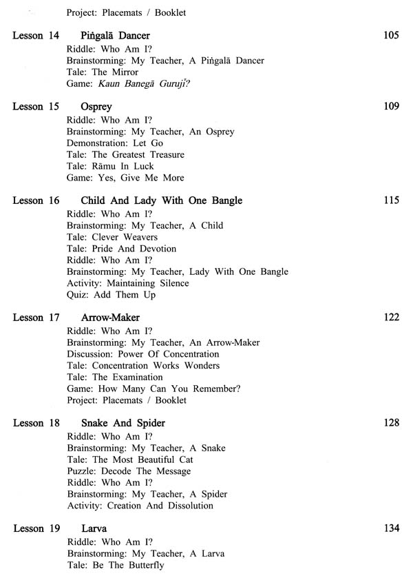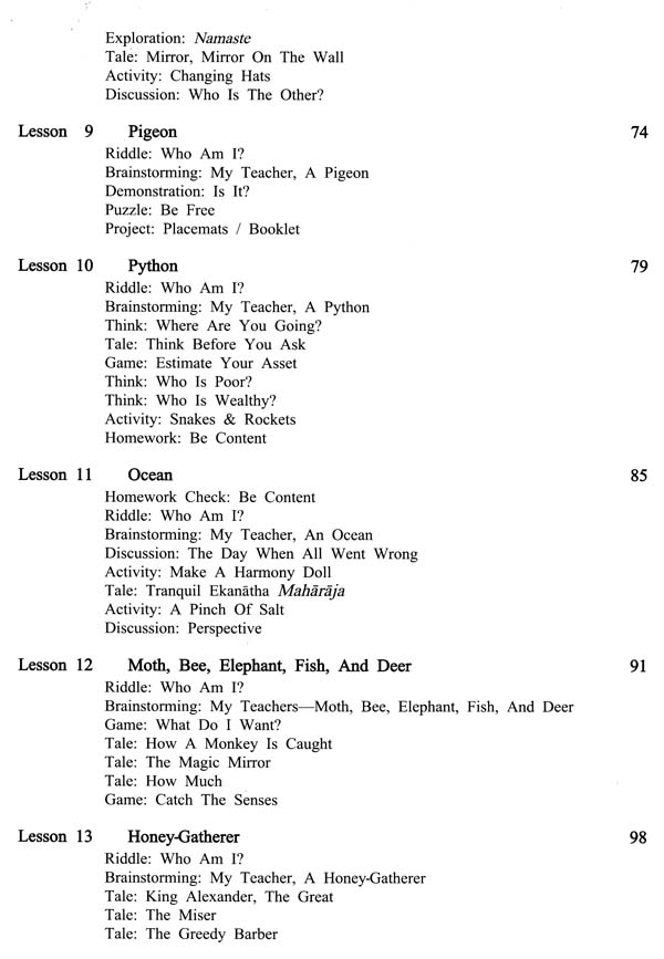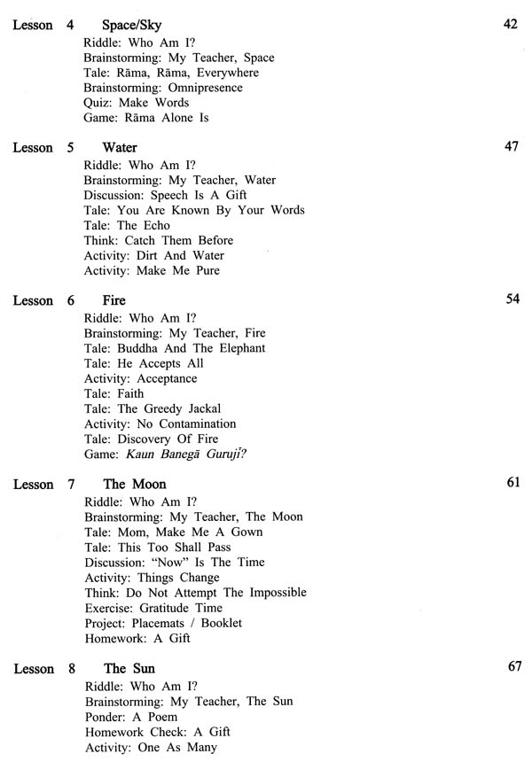 All lessons are prepared with a goal in the mind to imbibe the eternal values from our scriptures in a very loving and joyous atmosphere. All the ideas, lessons, projects, and other activities have been successfully tried out in our classrooms. The contents for this book have been drawn from our scriptures and wisdom of sages.