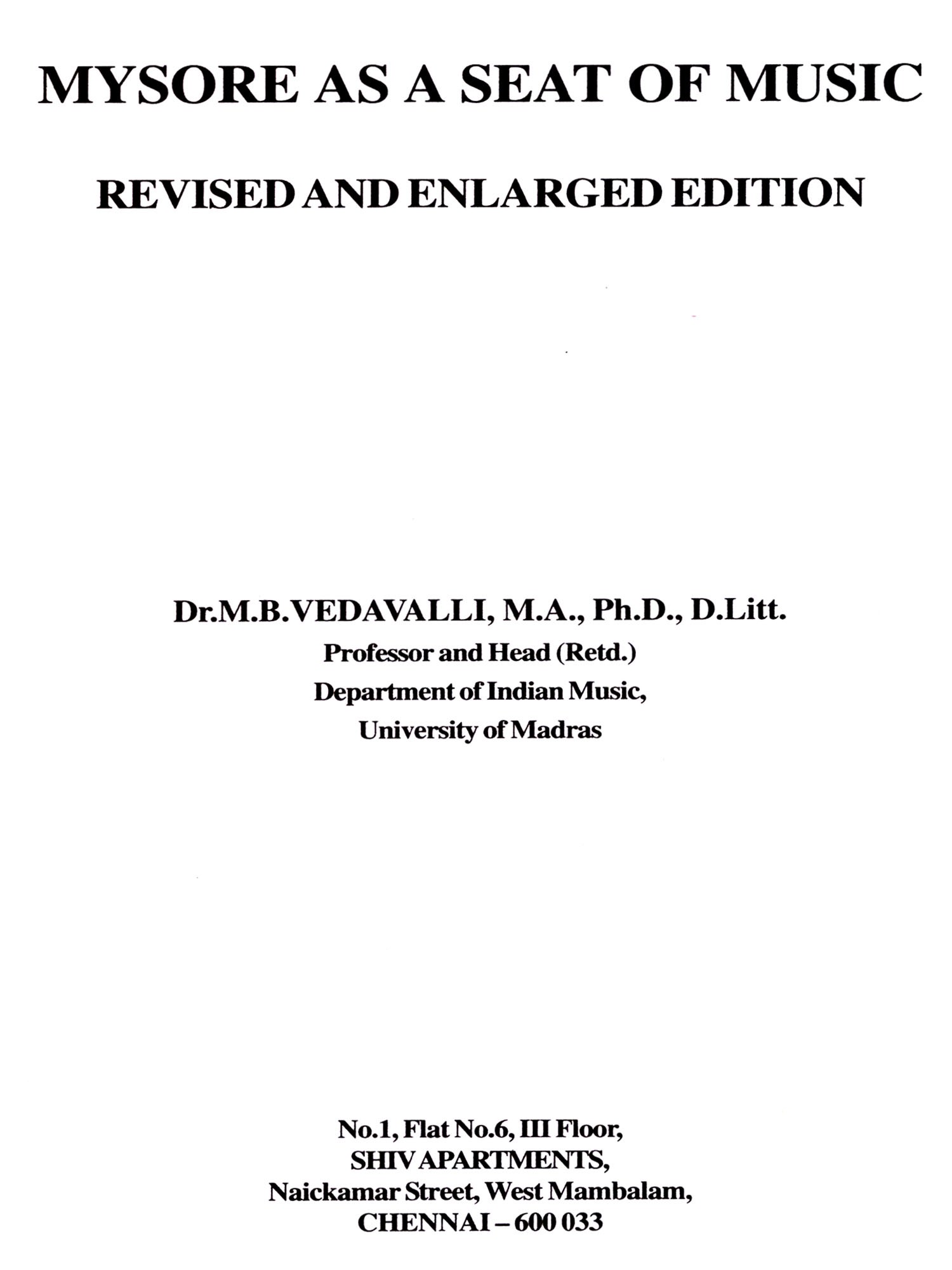This book deals with the contribution of the kings of Mysore to Music and the various measures adopted by them for the preservation and promotion of the art of music which was responsible for making Mysore an important centre of musical learning during the 19th and 20 centuries.