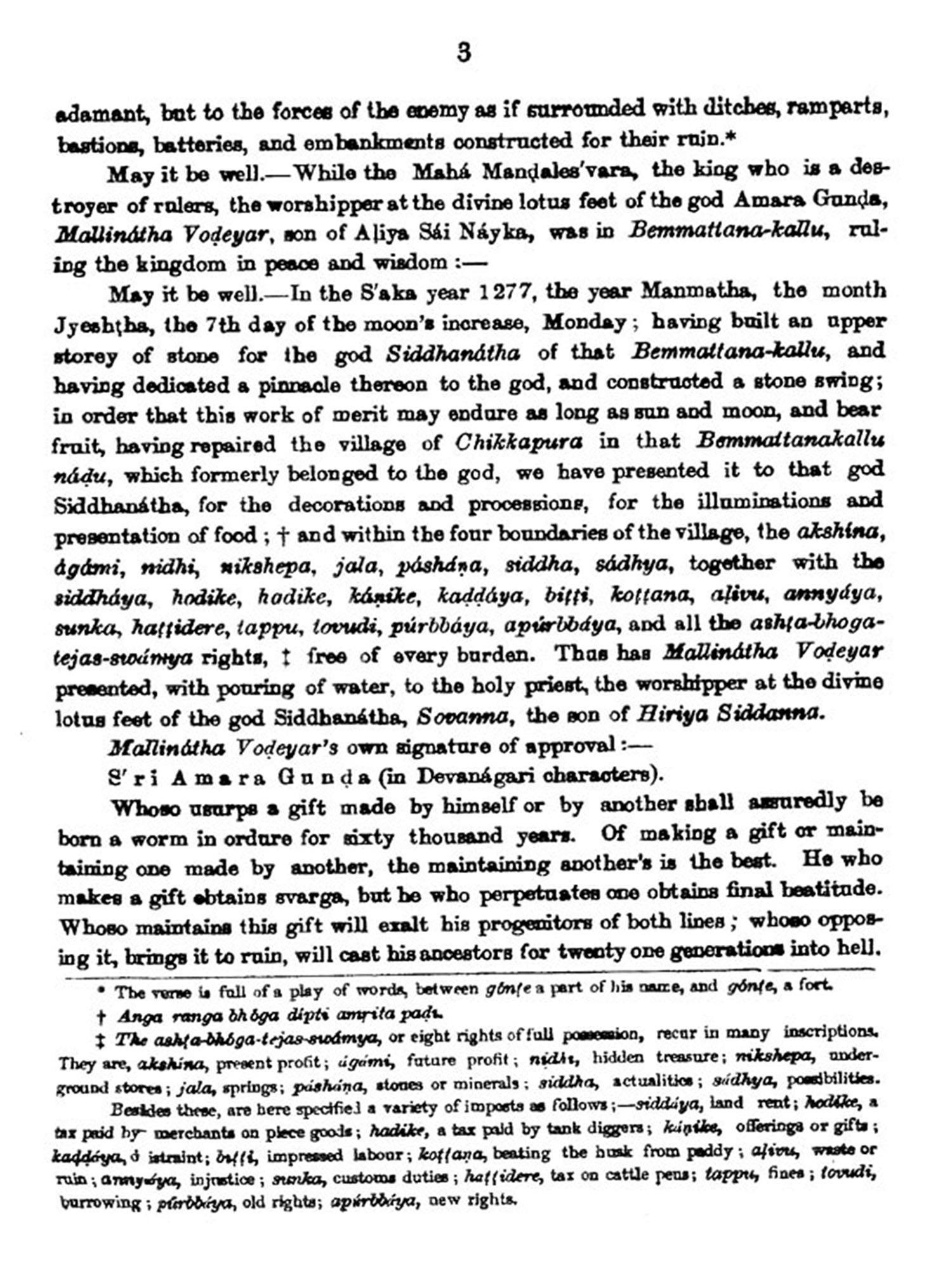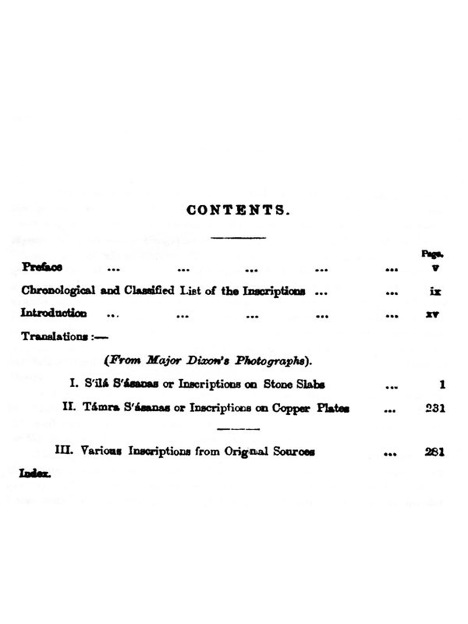 A few words of explanation are needed as to the origin and purport of When Mr. L. B. Bowring, c. 8. 1., (previously Private the present volume. Secretary to the Governor General, Lord Canning), was Chief Commissioner of Mysore, the garrison of Bangalore included the 22nd Regiment, Madras Native Infantry, one of whose officers, Major II. Dixon, had taken a series of photo-graphs of the celebrated temples of Orissa, and dedicated them by permission He was now commissioned, about 1865, to take photo-to Lady Canning. graphs on behalf of the Mysore Government of the principal inscriptions in this Province. How the selection was made I am not aware, but all he took belang to the north of the country. There were 150 altogether-129 from inscriptions on stone and 21 from those on copper-plates-nearly a half of the whole num-ber being from Balagami and Taldagundi, close to it, both in the Shimoga District. Sets of the photographs were sent to the India Office and Asiatic Societien, but without a translation they could be regarded only as curiosities. Some native officials here, with the aid of pandits, attempted the translation of a few for Mr. Bowring, but, as might be expected, with very imperfect results.