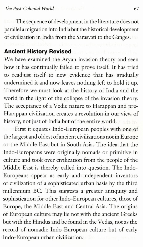 Older views of India based on outside migrations, external cultural influences and foreign borrowings as the primary forces are the products of a failure to understand the real soul and spirit of India. In the twenty first century in which the antiquity of cultures all over the world is being extended back centuries, if not thousands of years, there is no need to keep the history of India frozen around speculative events of 1500 BCE that have so far failed to prove themselves. It is time to open the door to India's great ancient heritage that takes us back to the very dawn of time. This primary message of the book remains the same.