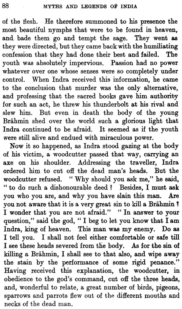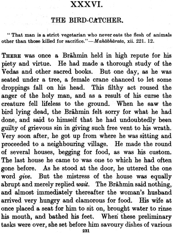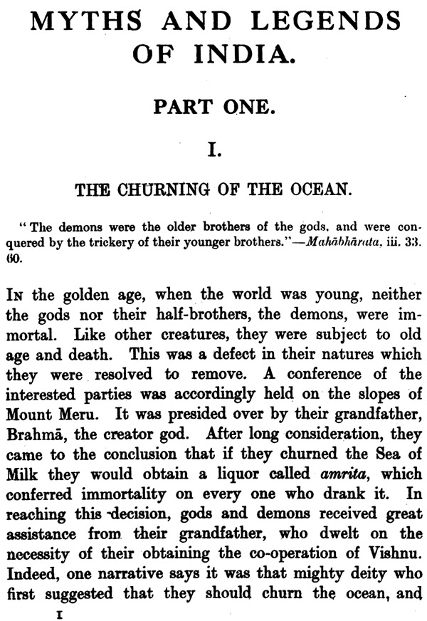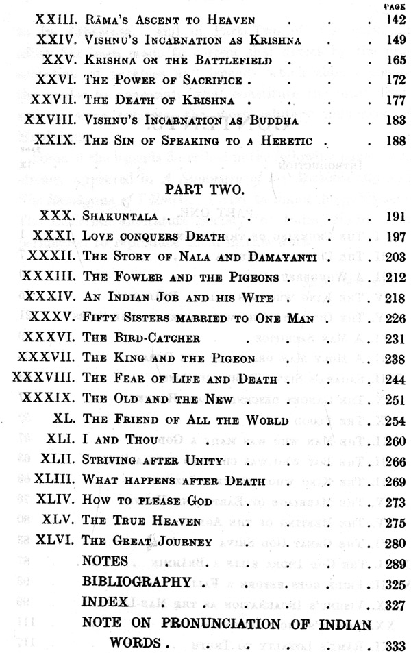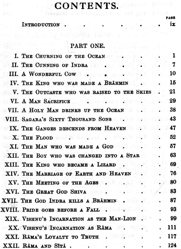 The most valuable heritage of Hindu society lie in the myriad parables and legends that constitute the most vital and salutary influence on its life. A large number of myths and legends narrated here deal with the gods and rishis. It is with these gods and rishis that the sources from which stories are drawn chiefly deal. ° There are tales of another kind that primarily deal with men and women. They tell us their thoughts and fears, their joys and sorrows, their speculations about this life and the here after. They dwell on the dangers of anger and pride, on the beauty of truth and purity; and their sense and sensibilities. India has heard God speaking to her soul, with the result that there has been expressed for her in living parables, and legends that wonderful variety of moral teaching which has helped to make her people what they are.