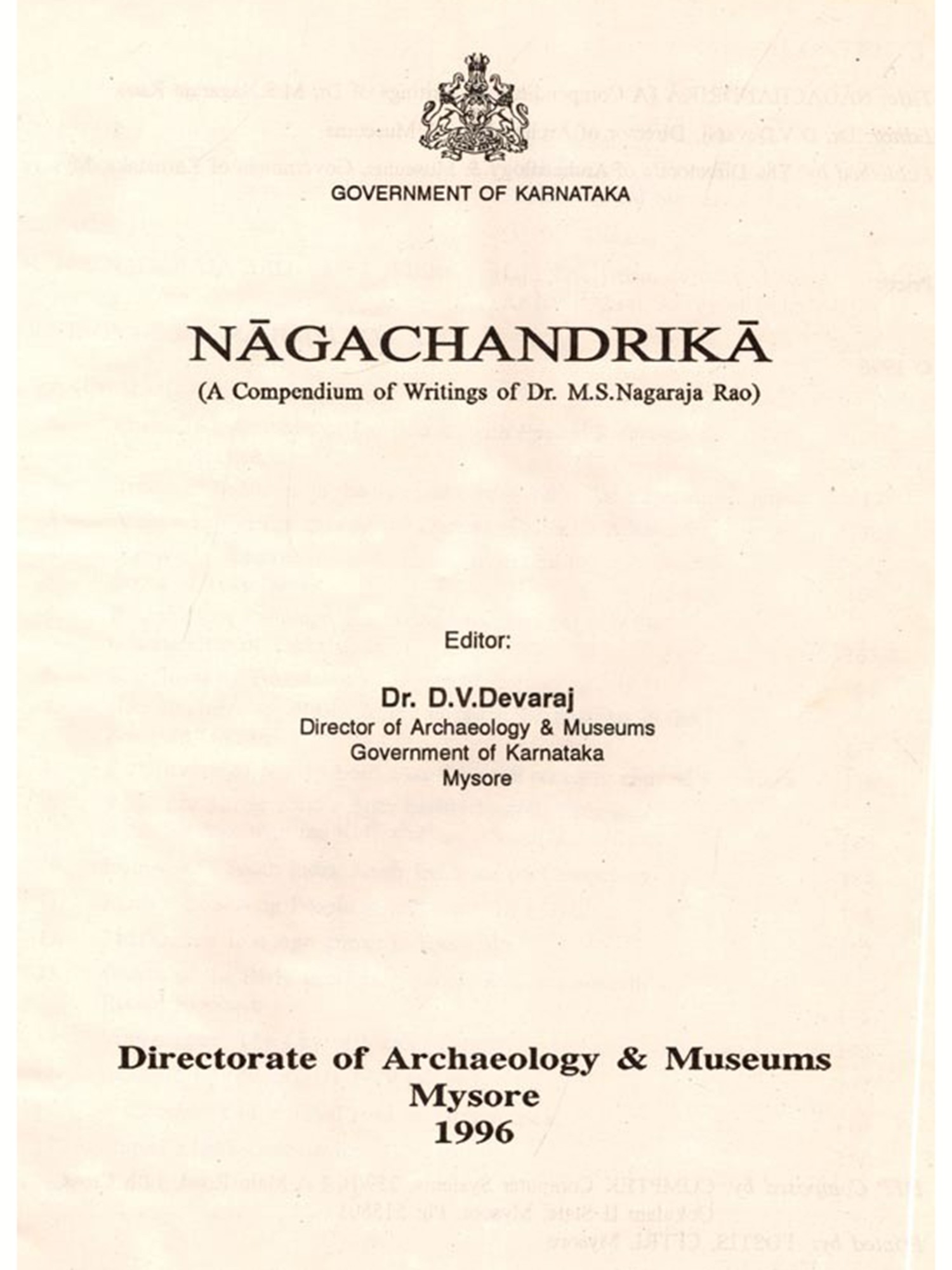 The Directorate of Archacology & Museums has taken a decision to publish research writings of eminent scholars of Karnataka under the 'Chandrika' series, and has already published the writings of Dr. Seshadri, 'Seshachandrika. We are happy to present this second volume in the series to the scholarly world, containing the writings of Dr. Nagaraja Rao, so that his research contributions are available in one place. We are grateful to Dr. Rao for making available copies of his writings.
