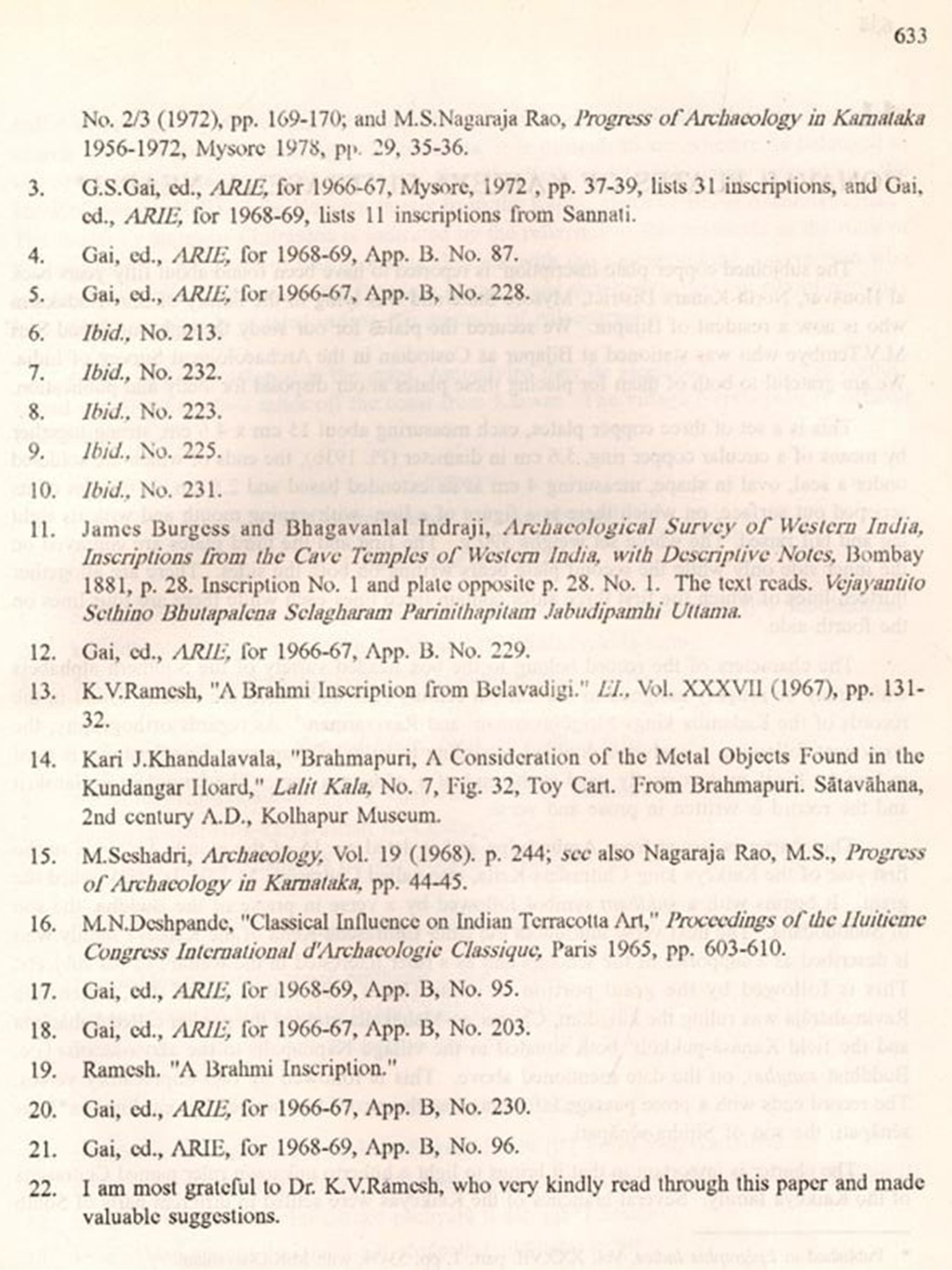 In all the four decades of my close contacts with specialists in archaeology-oriented subjects, I have often felt, and continue to feel to this day, that we have in Dr. Nagaraja Rao the very epitome of the "complete archaeologist' such completeness surpassing the bounds of his native state of Karnataka and of India. We find in him, as reflected in his impressive and, on many fronts, unequalled record as an administrator of archaeological & cultural matters and in his writings included in the present volume, a remarkably lucid blend of the explorer (e.g. Tungabhadra valley, Dharwar District, Tekkalakota), the excavator (c.g. Sanganakallu, Tekkalakota, Hallur, Komaranahalli, Vijayanagar), the conservator (e.g. Angkor Wat in Cambodia), the museologist (c.g. District Museums in Karnataka, the Mysore Palace as a museum, etc.), the expert on art and architecture (e.g. on the Ashtamātrikas, the Saptänägas, the sculptured panels from Tambur, Kirātārjuniyam in Indian art, Rashtrakūta temples at Sirivāļa, etc.) and the epigraphist and numismatist (c.g. Jamalagama grant, Honnavar Plates, etc. and Roman and Byzantine gold coins). His constant concern for the proper preservation of archaeological remains of all descriptions is reflected not only by his practical approach to that problem during the periods when he held the highest positions available for an archaeologist both at the State and national levels, but also in his writings on the subject, which are but the direct results of his field-experiences.