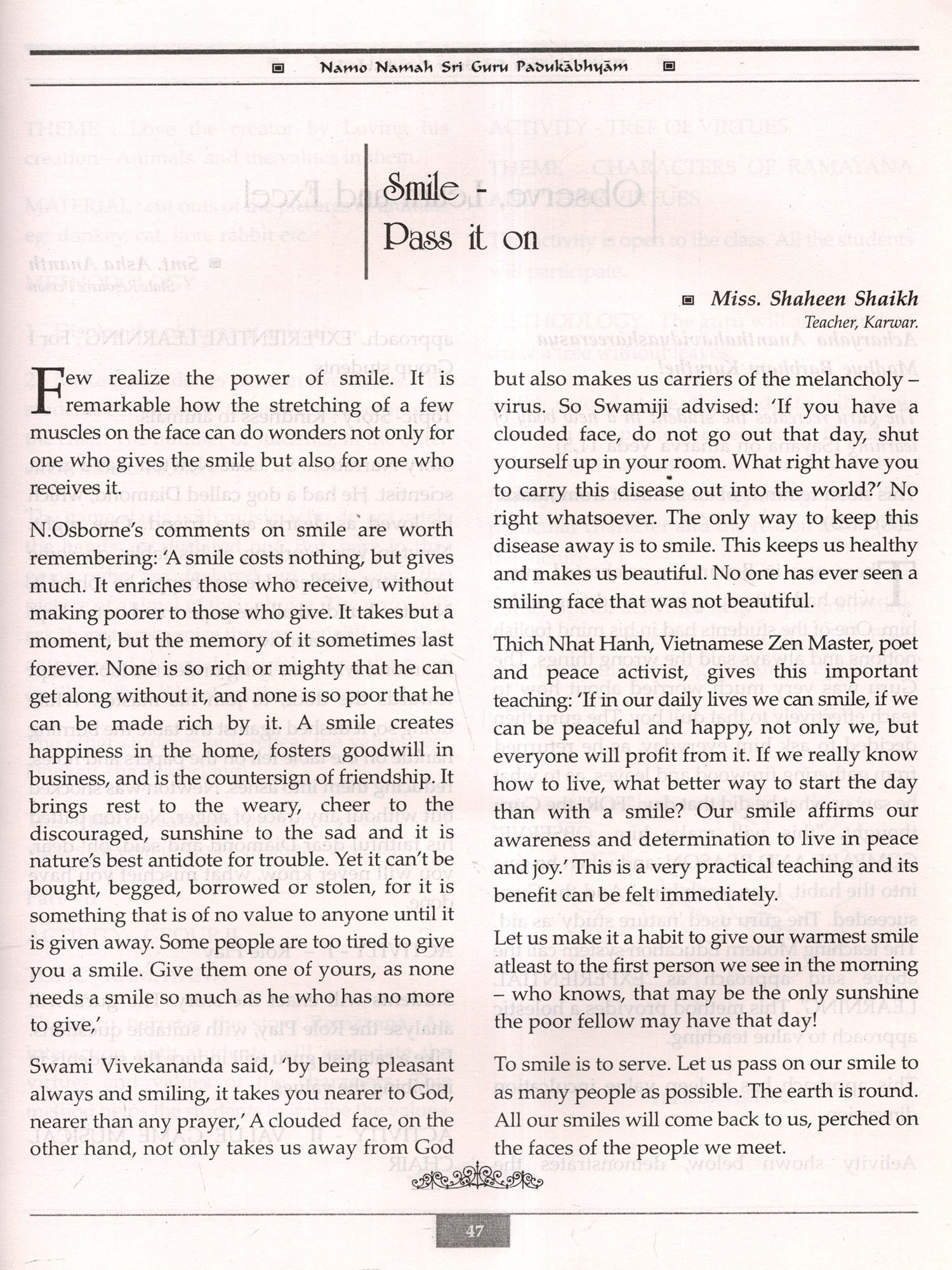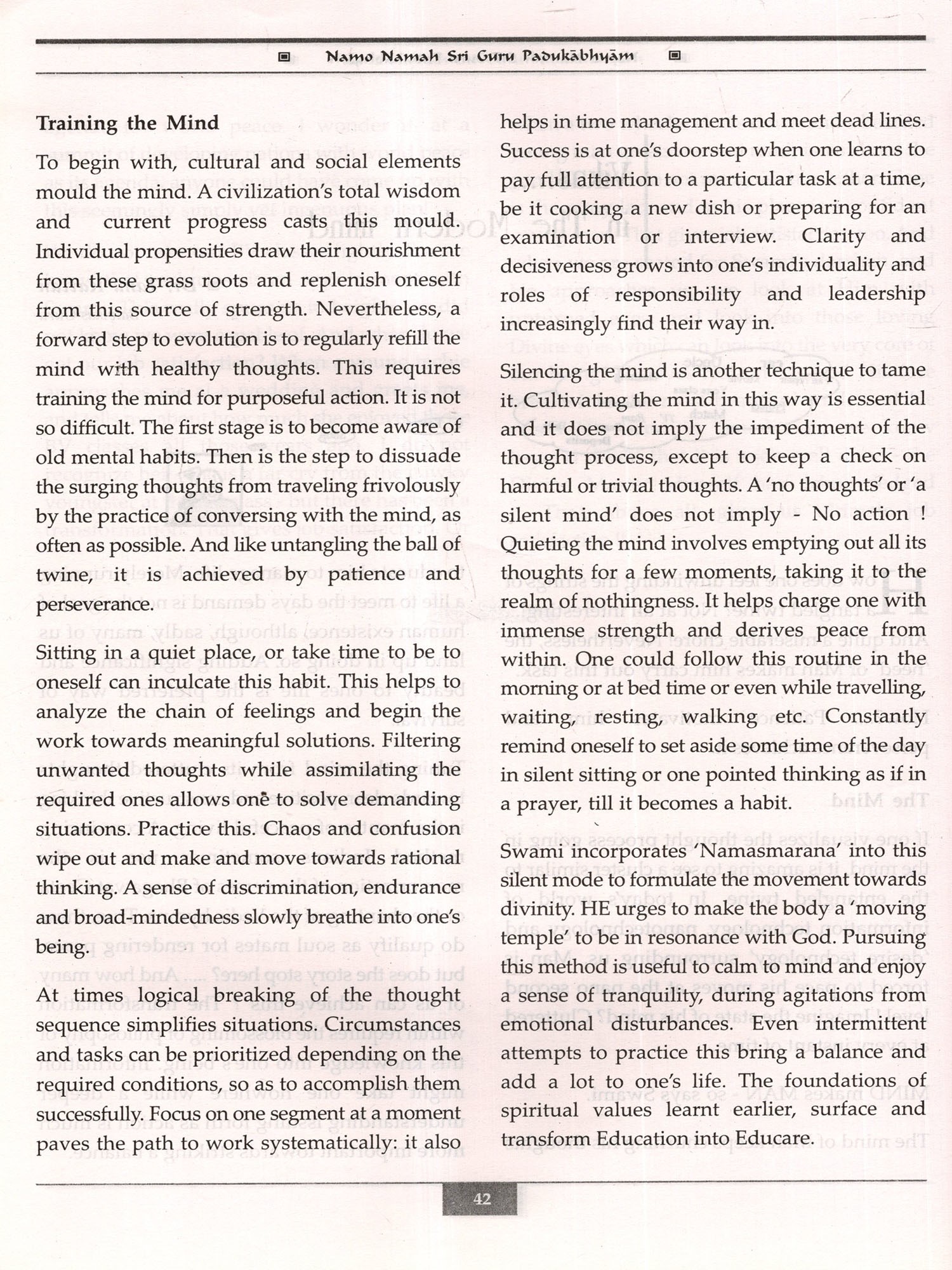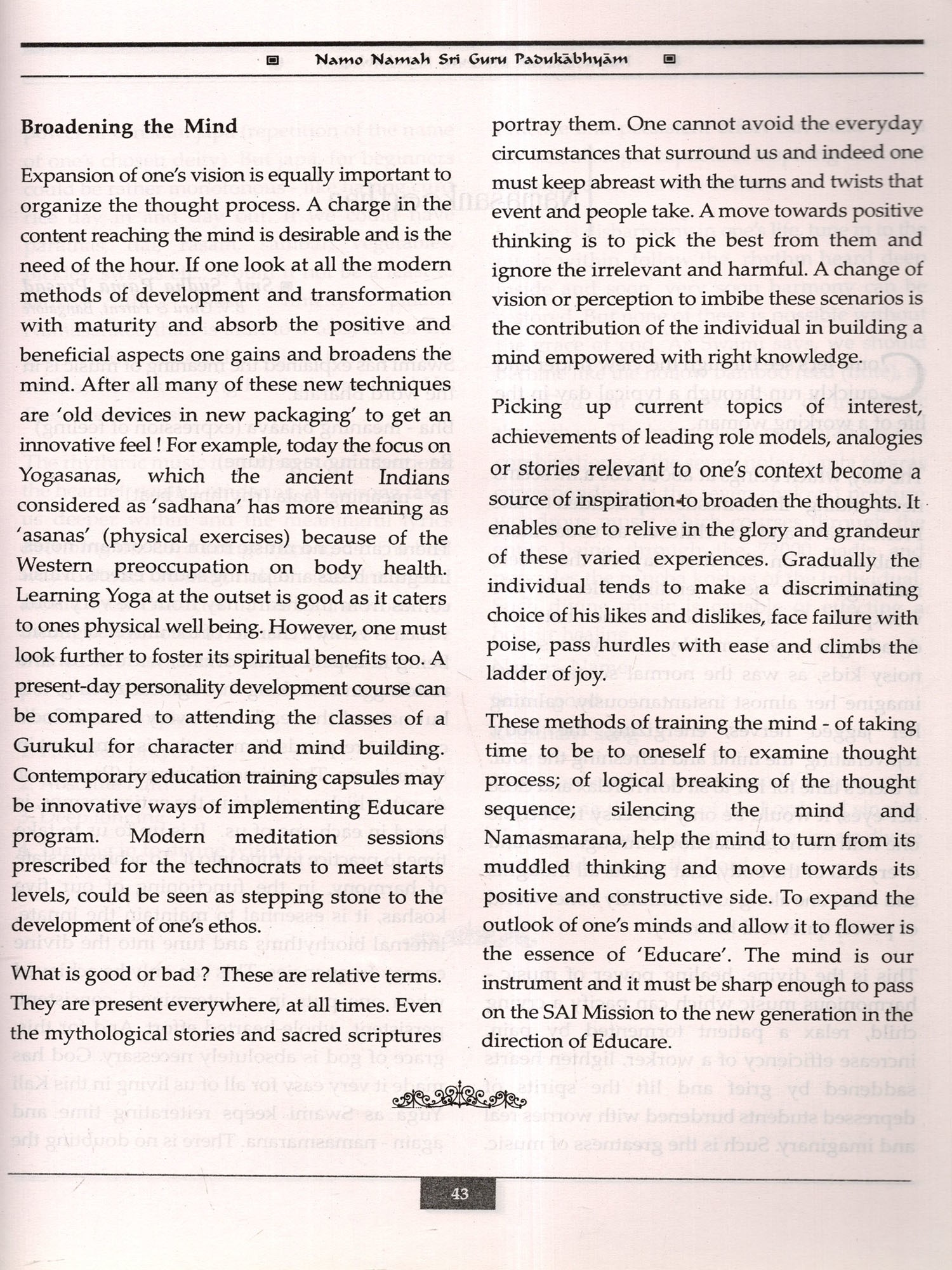 I am sure that this souvenir will urge every guru to become a worthy instrument of the Divine.