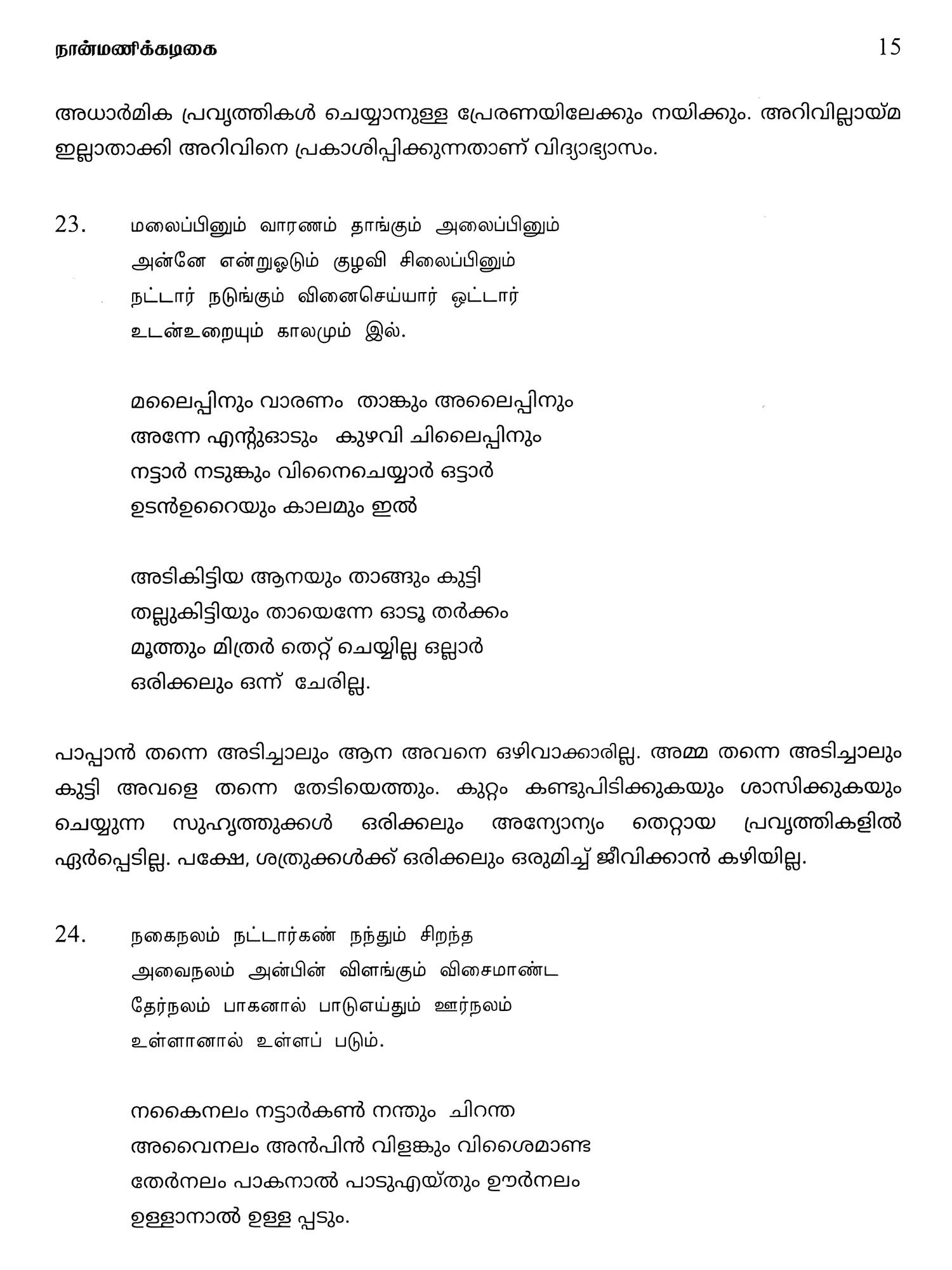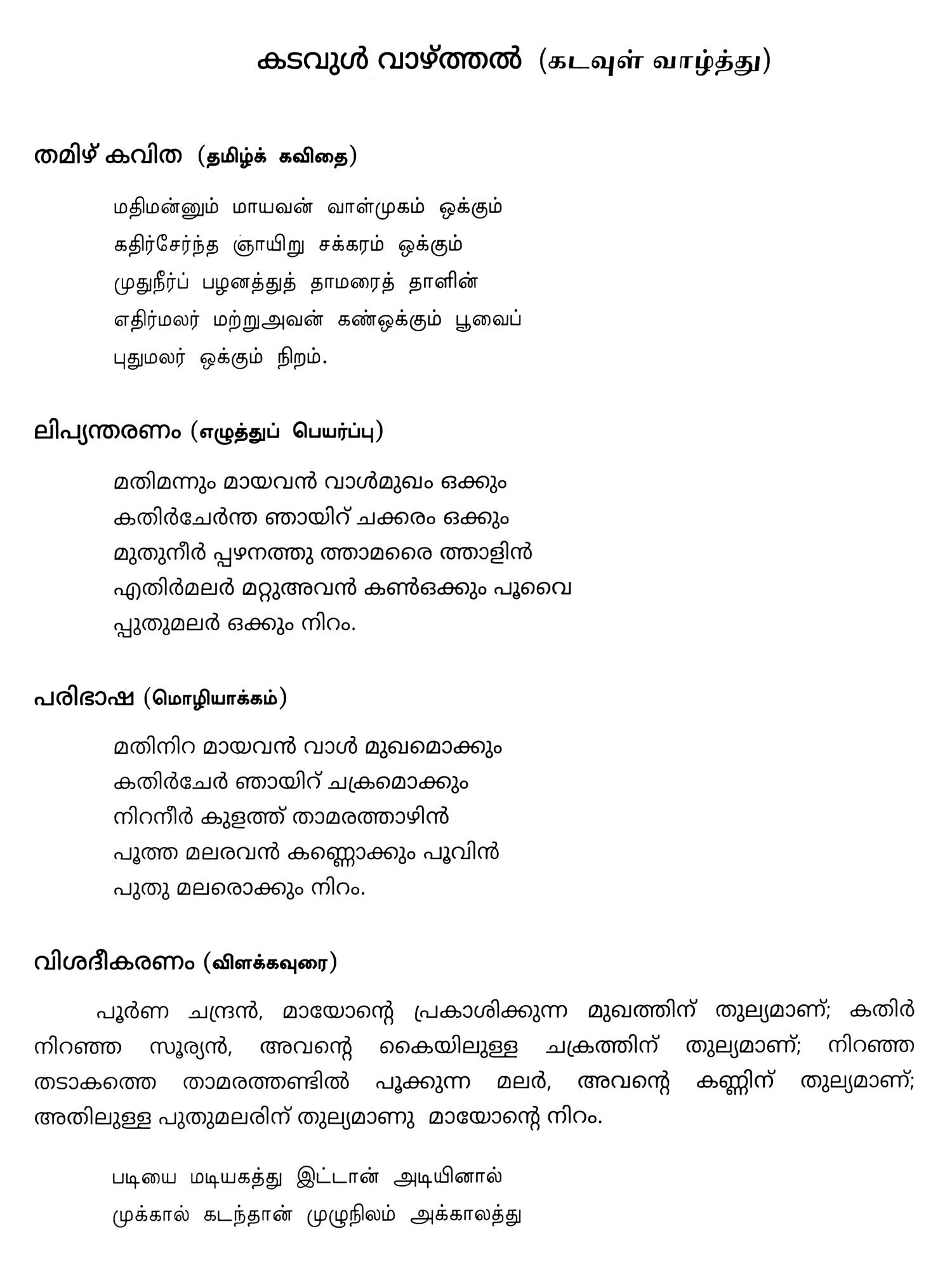 Language: Tamil Text, Malayalam Transliteration and Translation