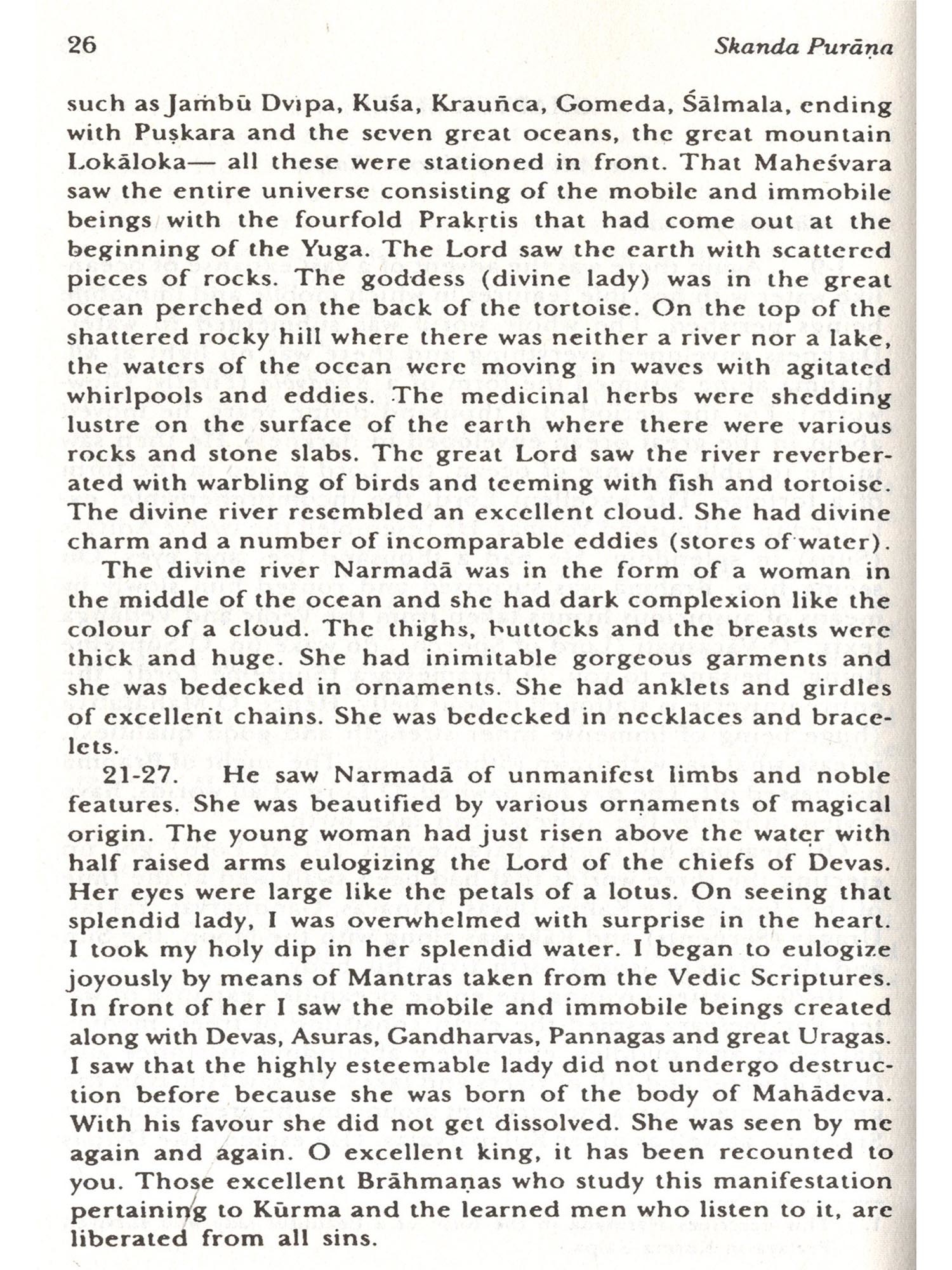 The Narmada puran narrates the greatness of that River, who is more a Goddess than a stream, full of beauty and Grace, bestowing all types of Blessings to the World.