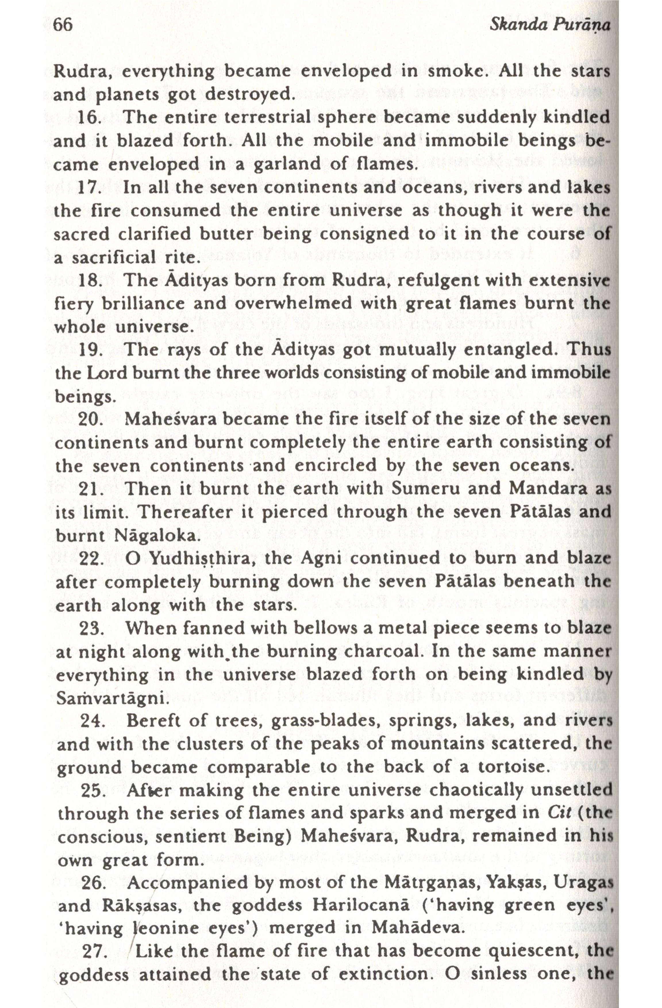 Markendeya Rishi recalls the annihilation of the Universe during 7 kalpas (cycles).