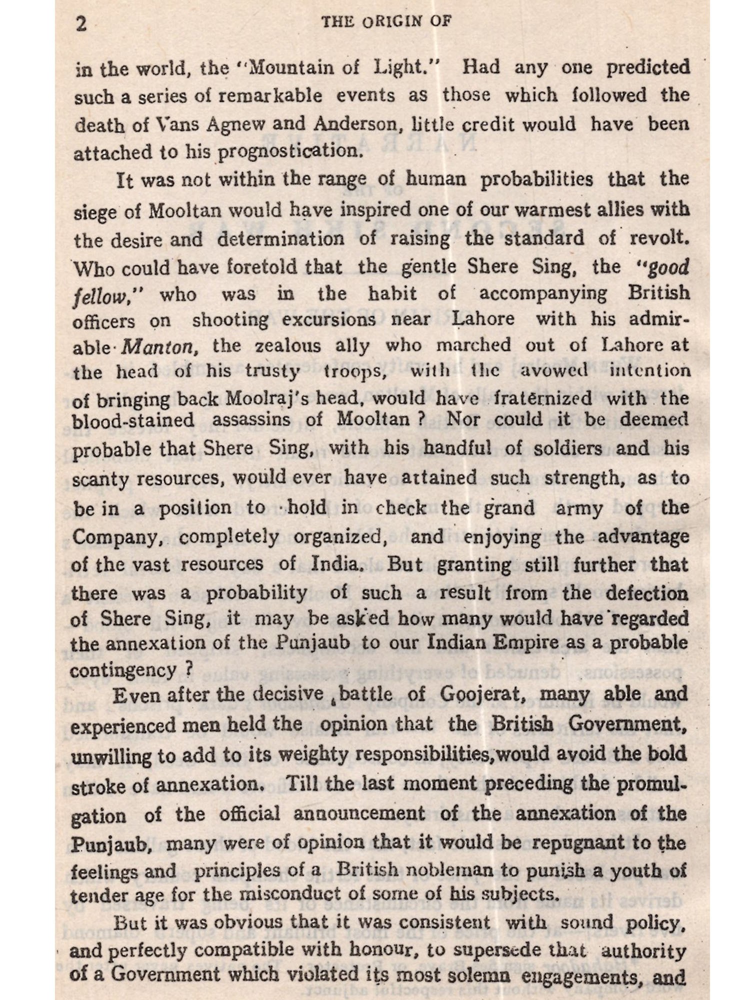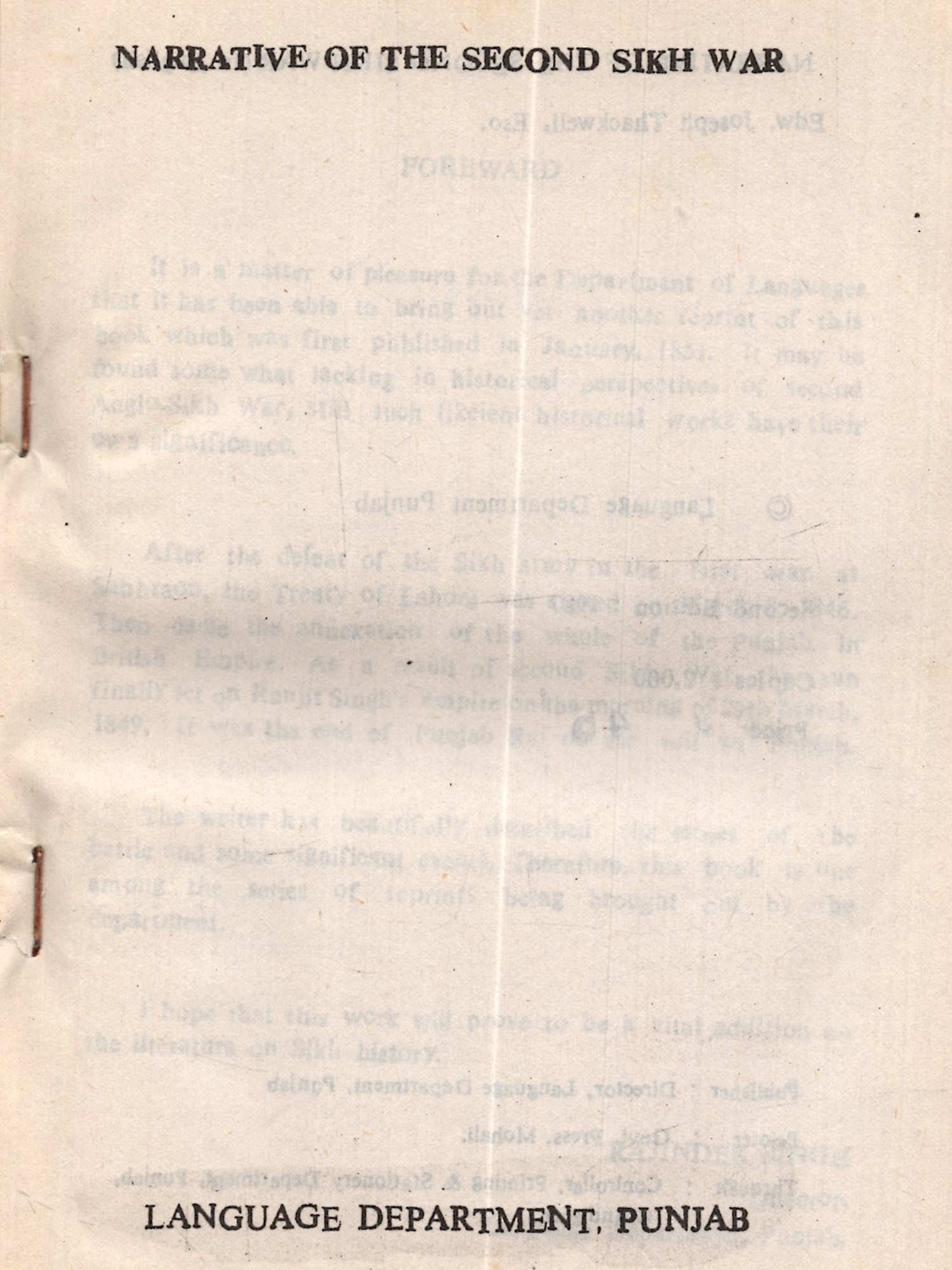 Narrative of the Second Sikh War (An Old and Rare Book)