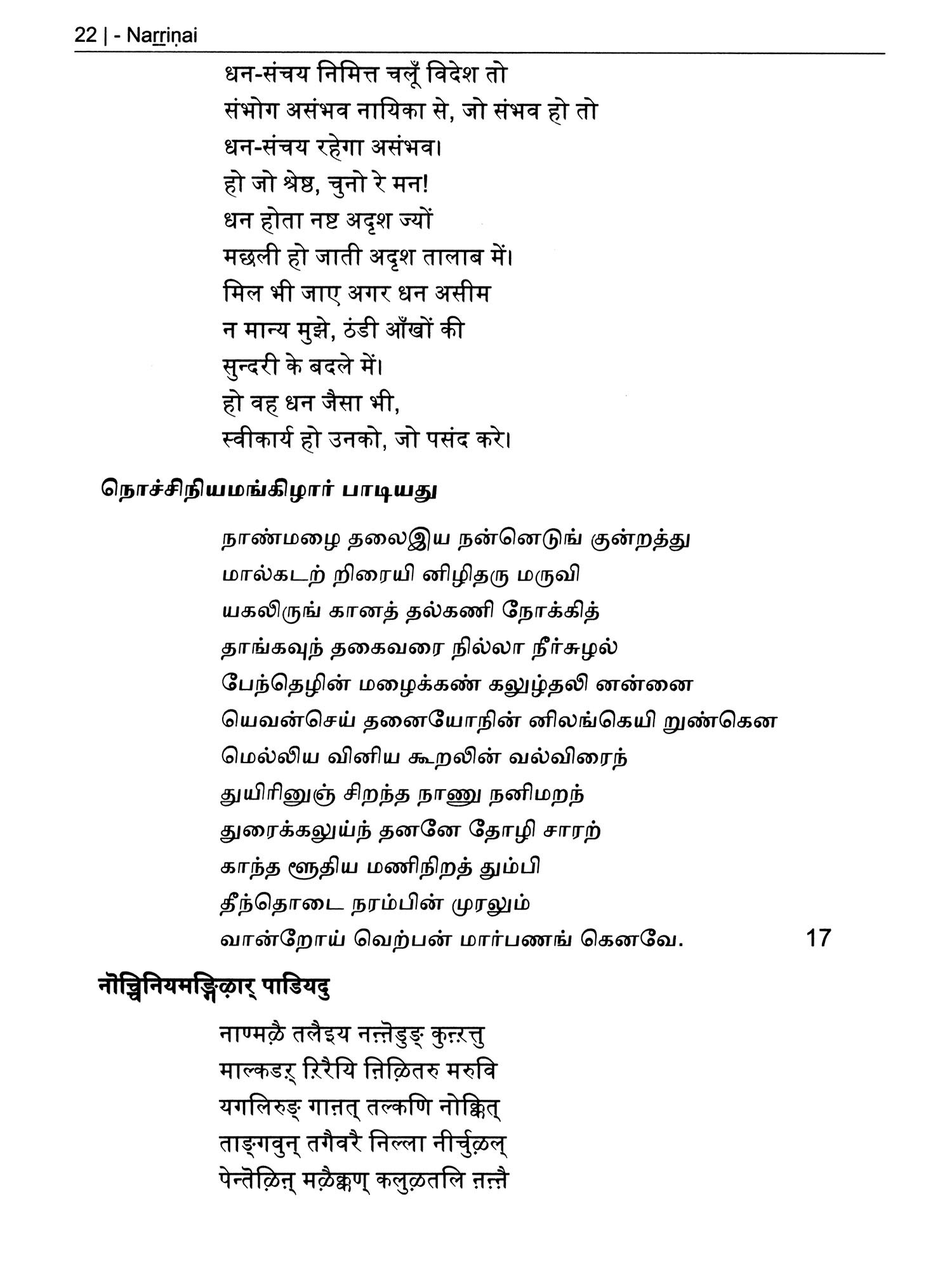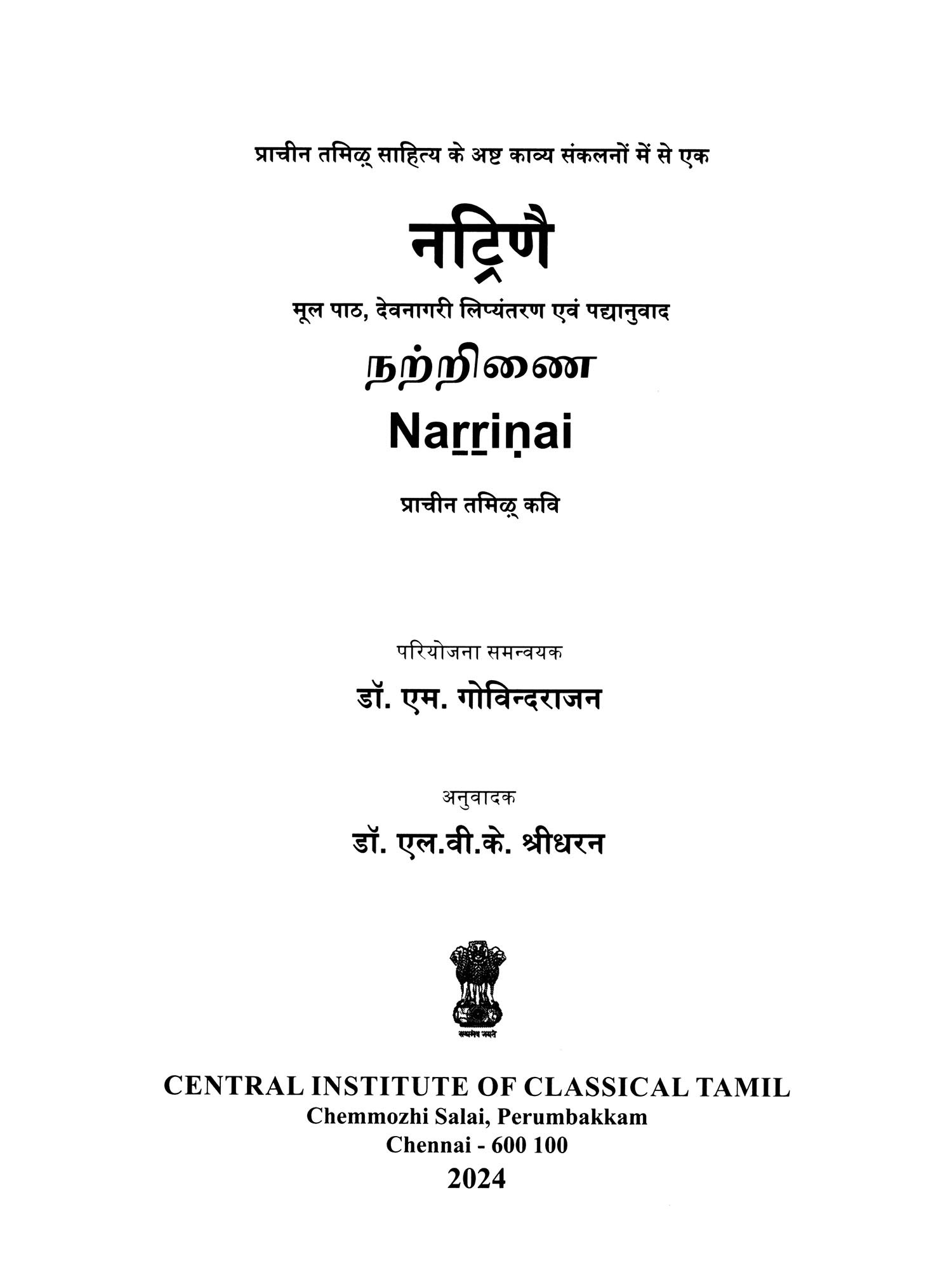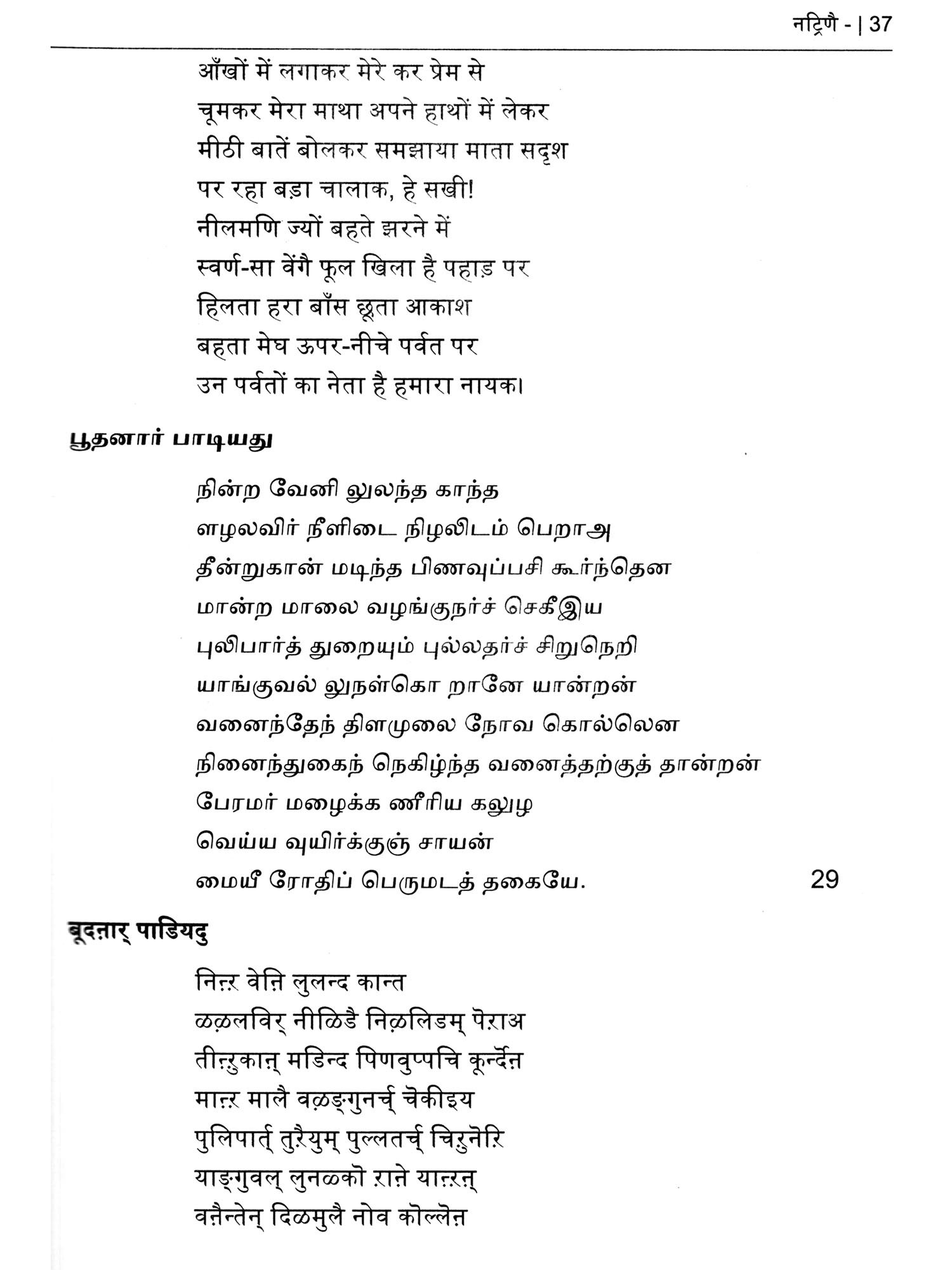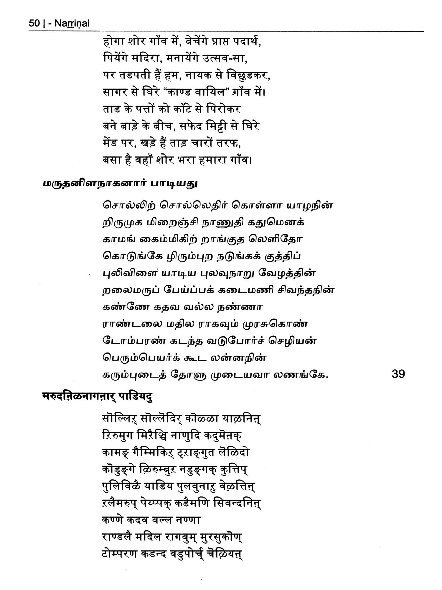 नट्रिणै (நற்றிணை)- Narrinai: Ancient Tamil Poet (Original Text, Devanagari Transliteration and Verse Translation)