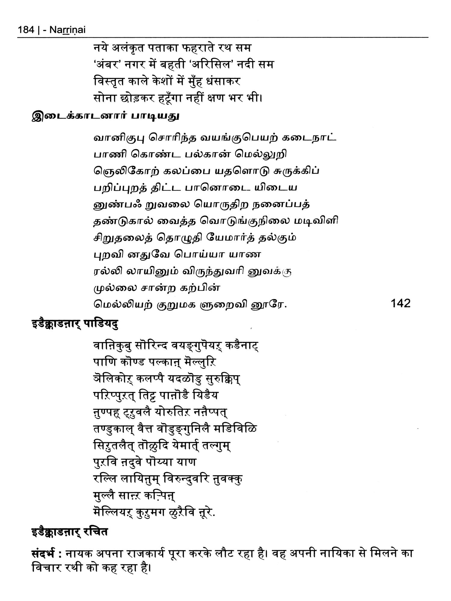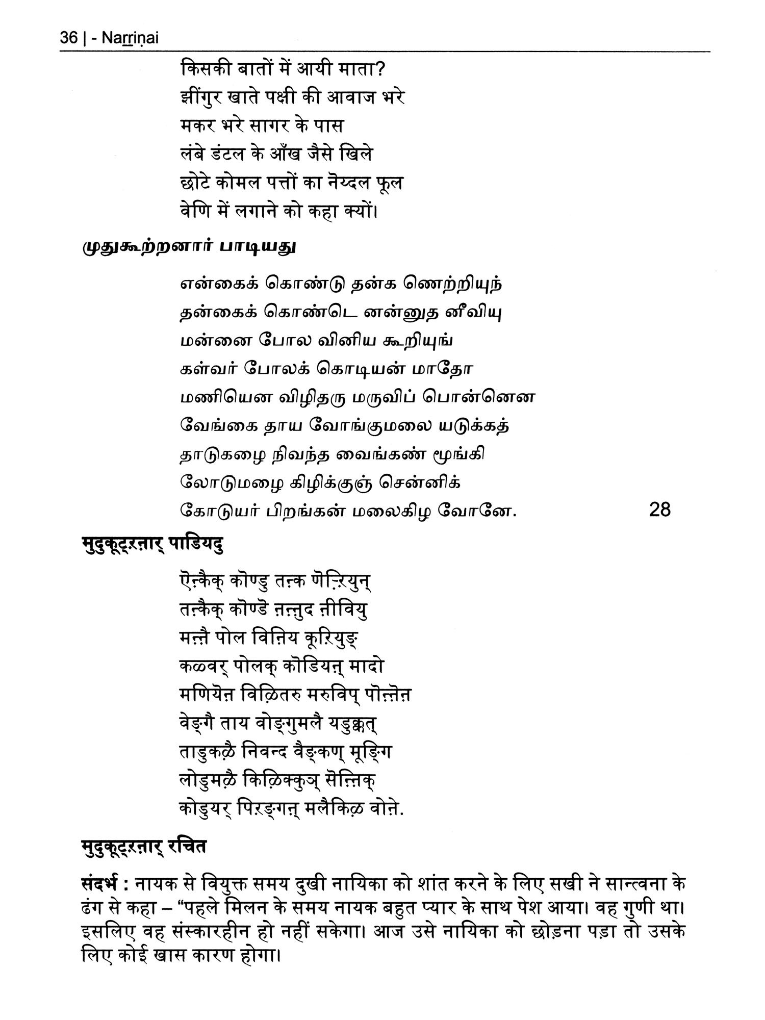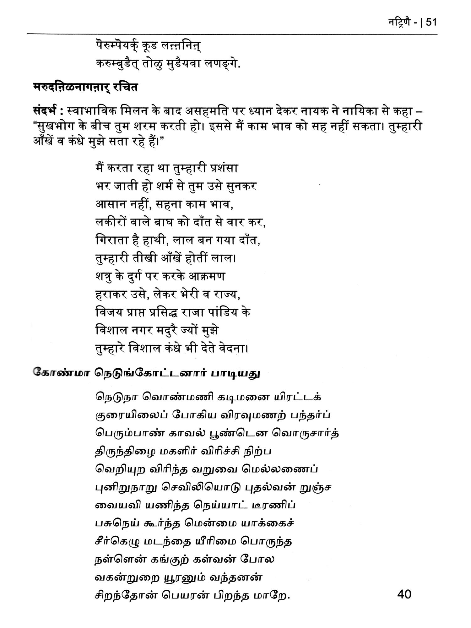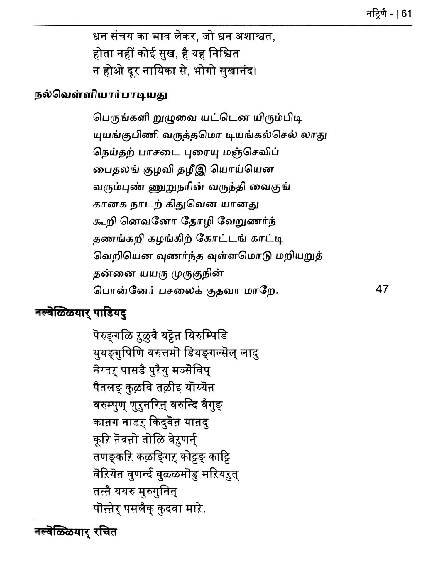 नट्रिणै (நற்றிணை)- Narrinai: Ancient Tamil Poet (Original Text, Devanagari Transliteration and Verse Translation)