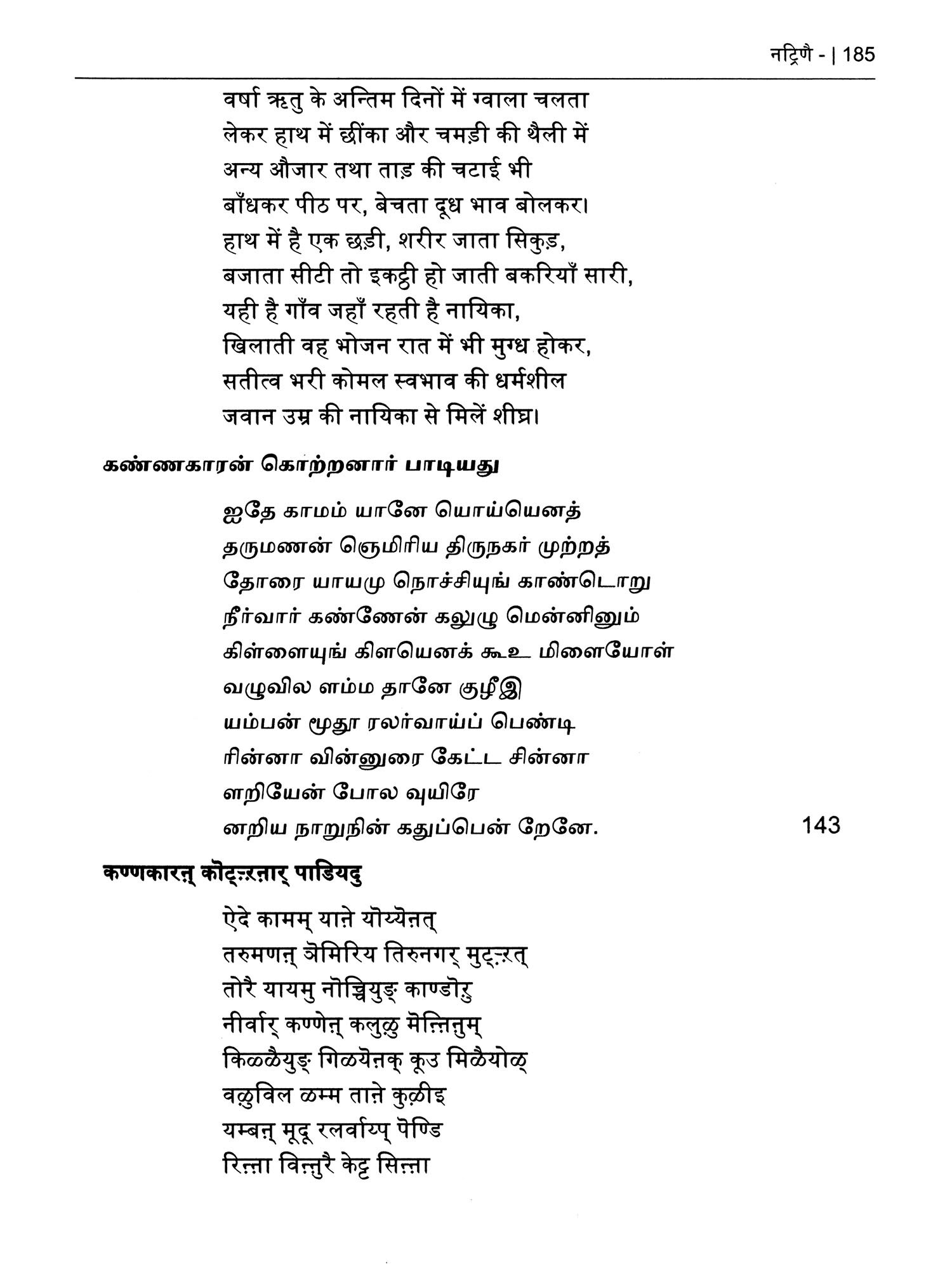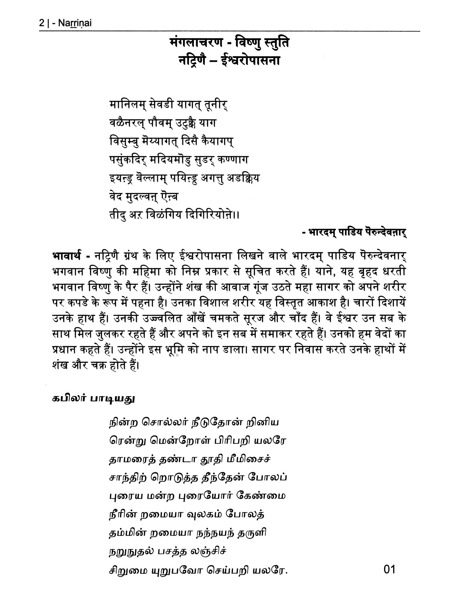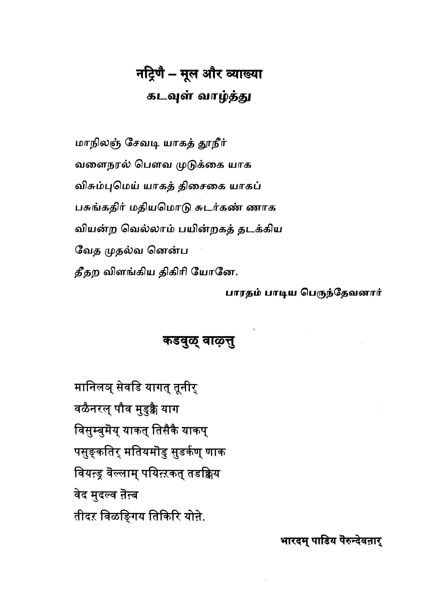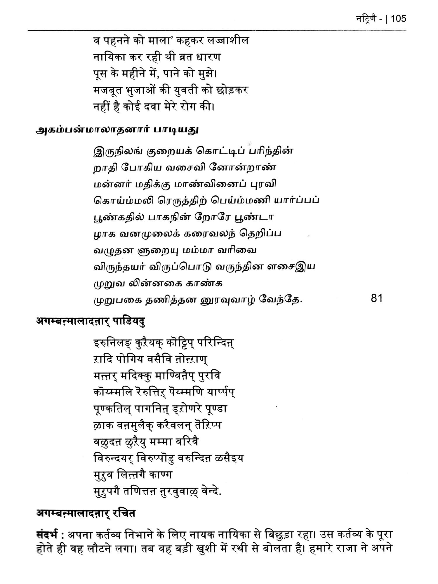नट्रिणै (நற்றிணை)- Narrinai: Ancient Tamil Poet (Original Text, Devanagari Transliteration and Verse Translation)