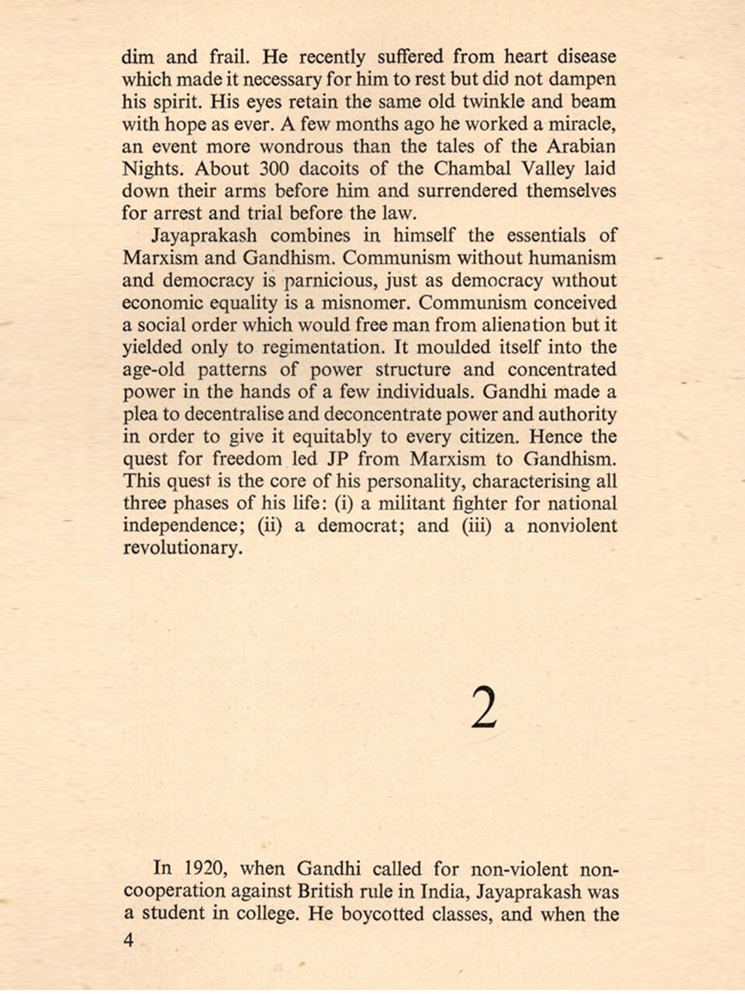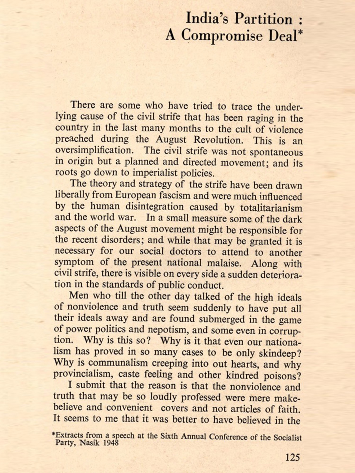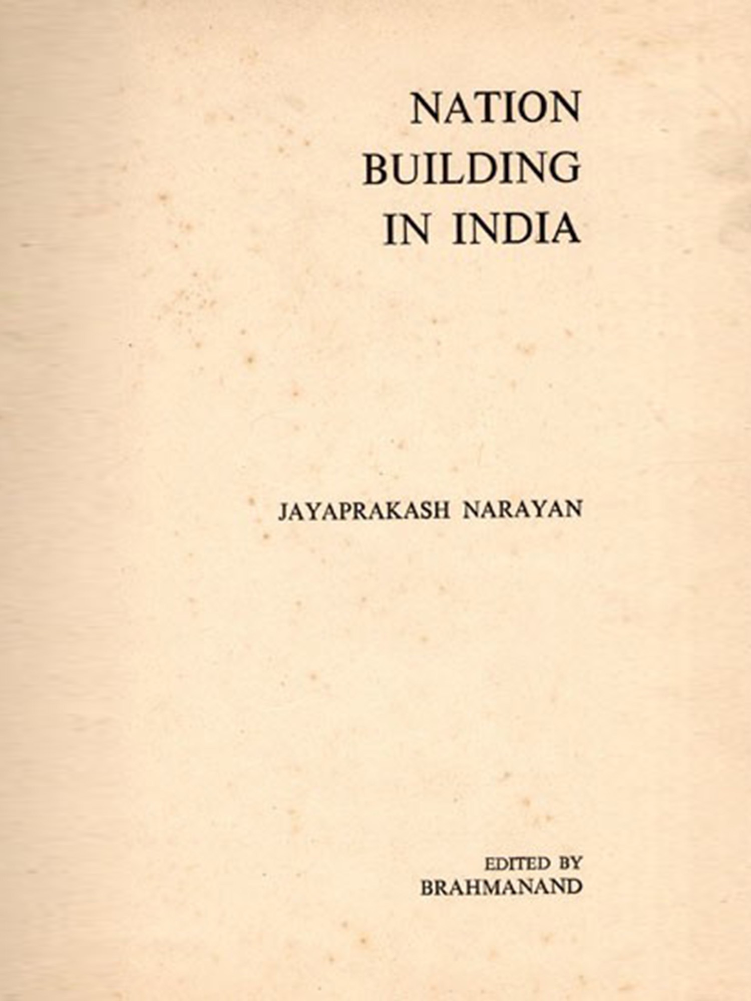 The book entitled "Nation Building in India" is a collection of articles, speeches and press statements by Jayaprakash Narayan. Their main focus is on the problem of nation-building in India. The compilation is the third in the series of the programme under-taken by the Navachetna Prakashan. The Prakashan has decided to publish the writings of Acharya Narendra Deva and Jayaprakash Narayan in different volumes. Two volumes of JP's articles have already appeared-one entitled "Socialism, Sarvodaya and Democracy" and the other "Communitarian Society and Panchayati Raj." A book entitled "Socialism, Marxism and Democracy" by Acharya Narendra Deva is also, under print. We have tried our best to bring together all the scattered material containing JP's thought on nation-building and weave them in a coherent and scientific study on this most important and burning problem. The problem is important; for the country has still to go a long way to become a nation. There are many hurdles. Being an eminent thinker and one of the architects of India's freedom, JP's views on this problem are of particular significance. He is one of those foremost Indian leaders who were deeply involved in the nation-building process. India was never a nation; nor is it a nation today. The most important ingredient in the process of nation-building is the element of "national consciousness", and this is woefully lacking even today. Two historical revolutions-the French Revolution and the Industrial Revolution-and the subsequent emergence of new values have totally changed the old concept of power and sovereignty. India is at the threshold of yet an-other revolution. The people have been brought directly into the vortex of politics.