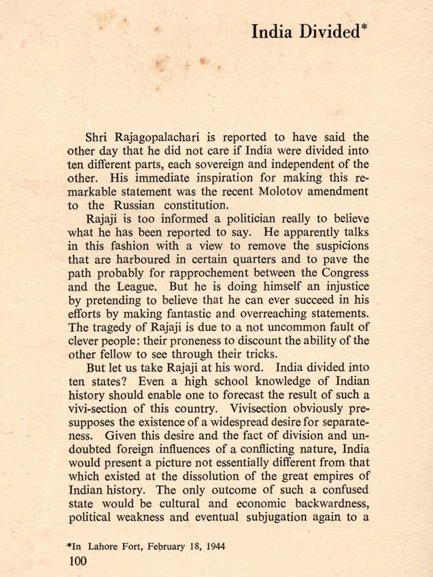 The Fundamental Unity of India