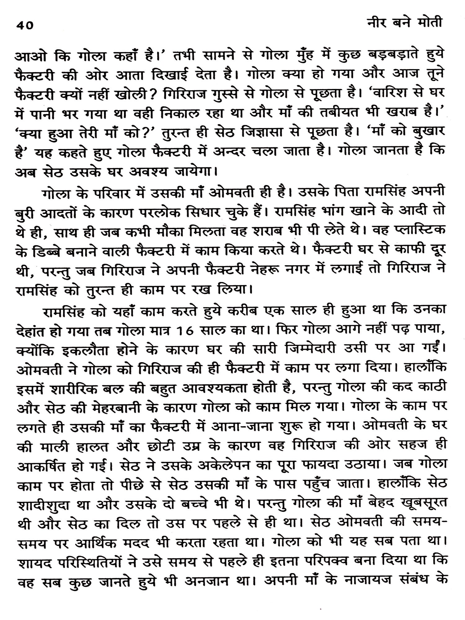 कहानी 'नीर बने मोती' और 'फर्ज' में उन्होंने प्रेम का एक अलग ही रूप एवं विस्तार प्रस्तुत किया है। दोनों ही कहानियों में पवित्रता एवं त्याग की कितनी पराकाष्ठा हो सकती है यह कहानियाँ पढ़कर ही पता चल सकता है। उनकी कहानियों को पढ़ते हुये हमें यह अहसास भी होता है कि शहर में होने के बावजूद भी कई जगहें आज भी ऐसी हैं जहाँ सुविधाओं का बहुत अभाव है और रोजमर्रा की आवश्यकताओं तथा जीवनयापन के लिए लोगों को बहुत संघर्ष करना पड़ता है। एक-दो कहानियाँ उनकी बहुत पुरानी लिखी हुई हैं जिन्हें उन्होंने इस संग्रह में शामिल किया है, परन्तु आज भी उतनी ही सार्थक प्रतीत होती हैं।