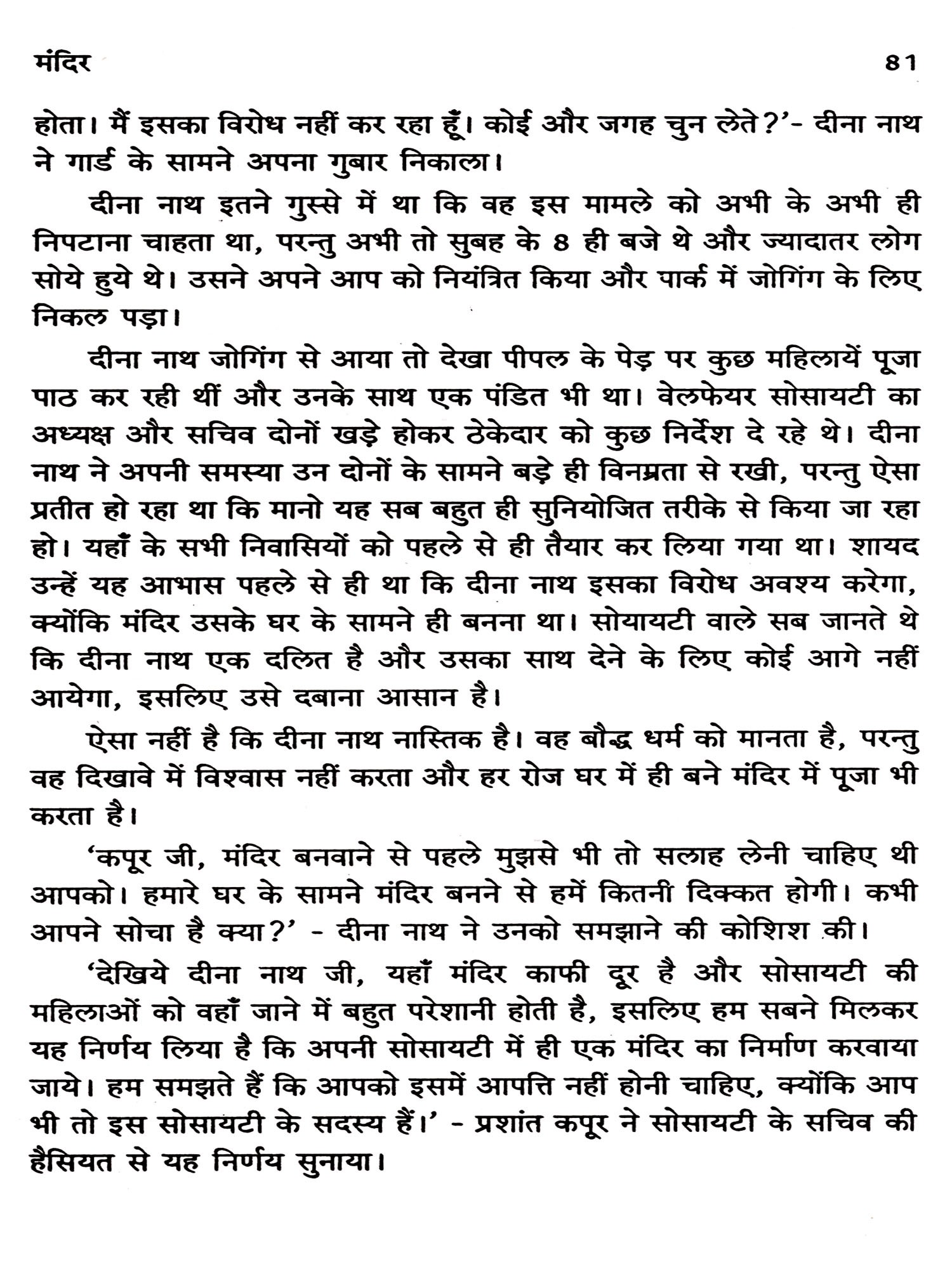कहानी 'मन्दिर' में दबंगों द्वारा एक दलित का दमन और एक मुसलमान द्वारा उसकी मदद को आ जाना, देश के वर्तमान परिदृश्य को रेखांकित करता है। '