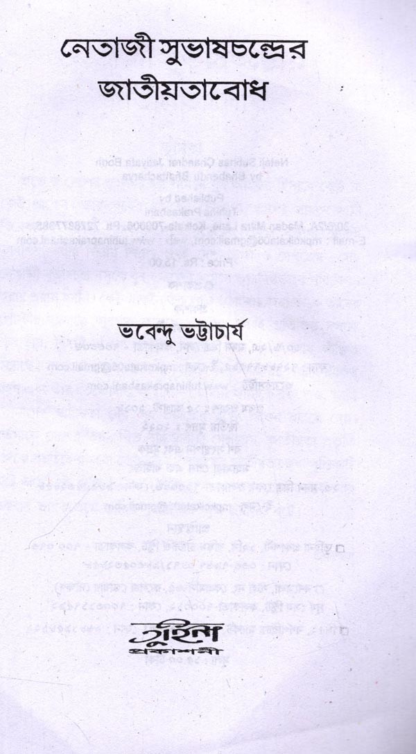 Prasanga: Subhashchandra Bose (An Old and Rare Book in Bengali)